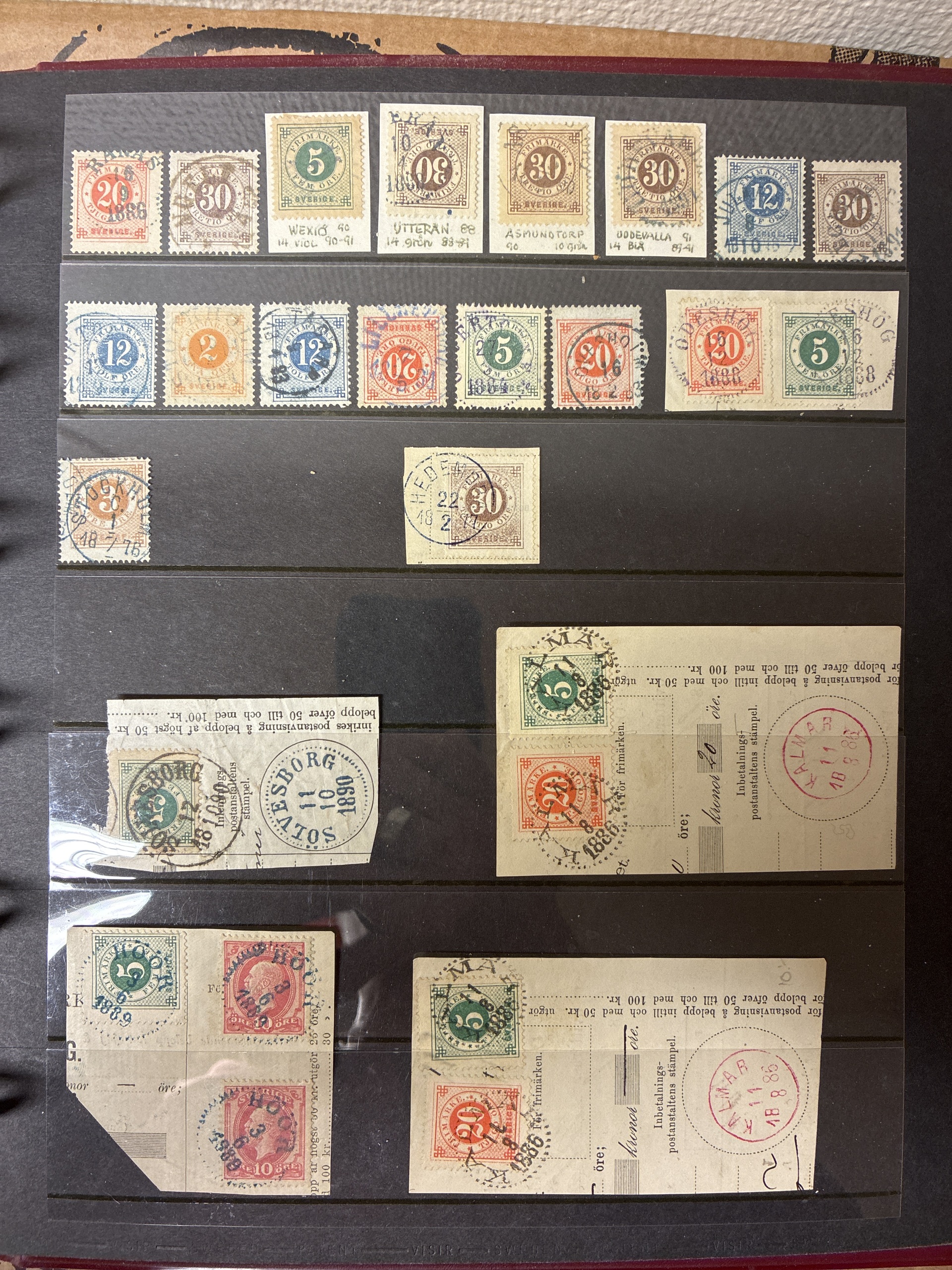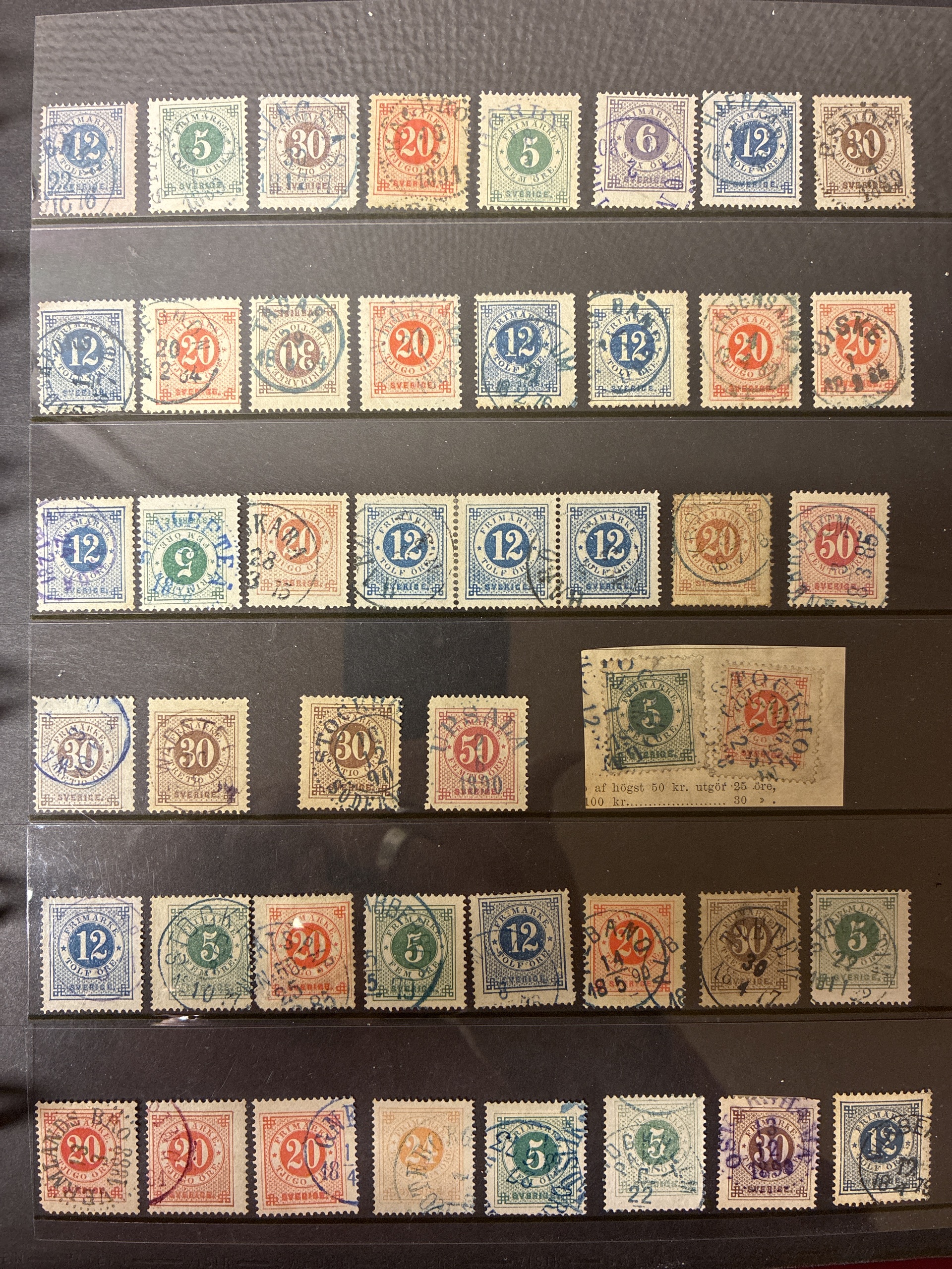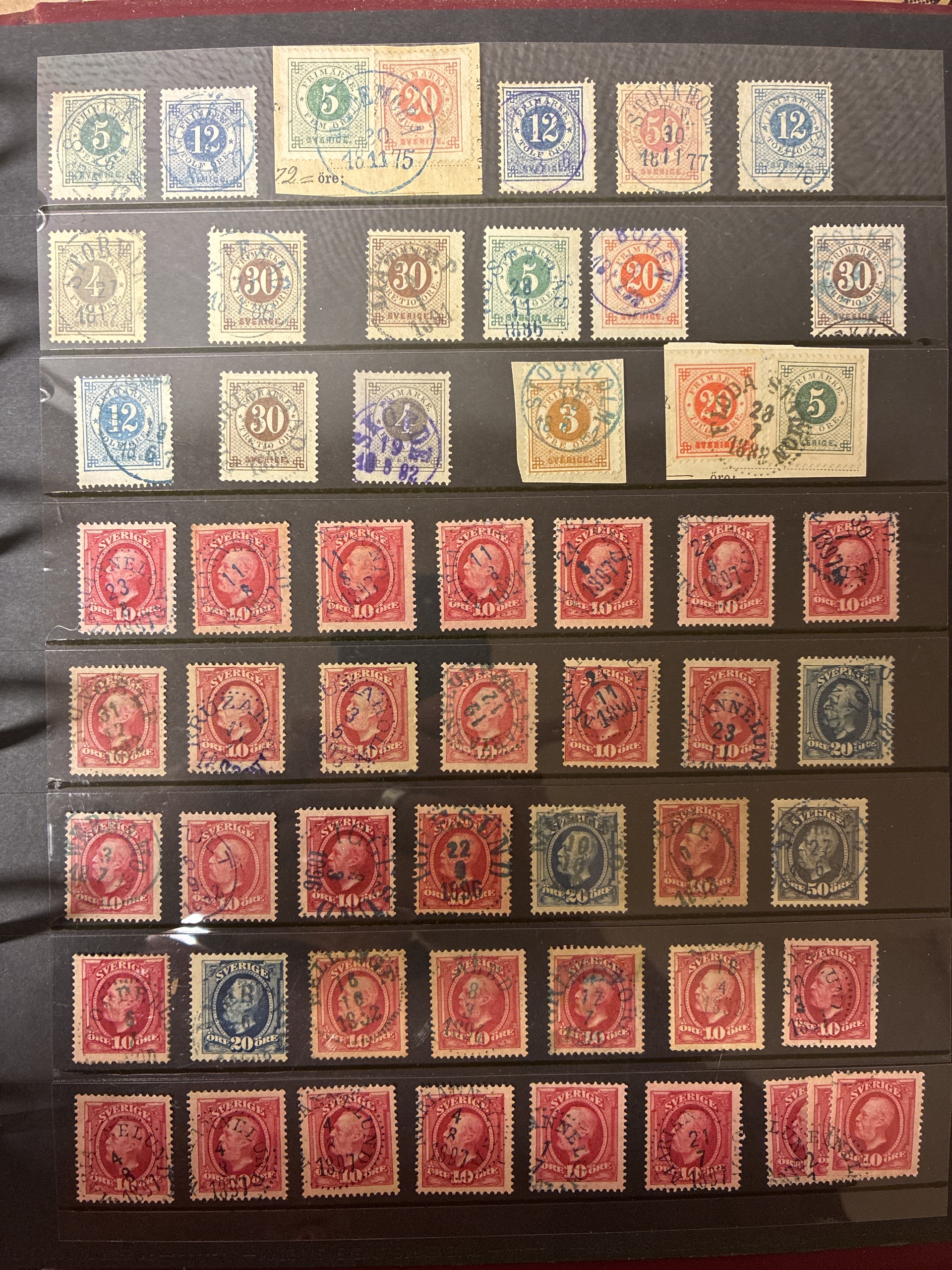 Sweden. Sweden Used accumulation 1876–1900 in visir album. Coloured cancellations mostly on Circle type. Mostly good quality (>200). The entire lot is presented at www.philea.se.