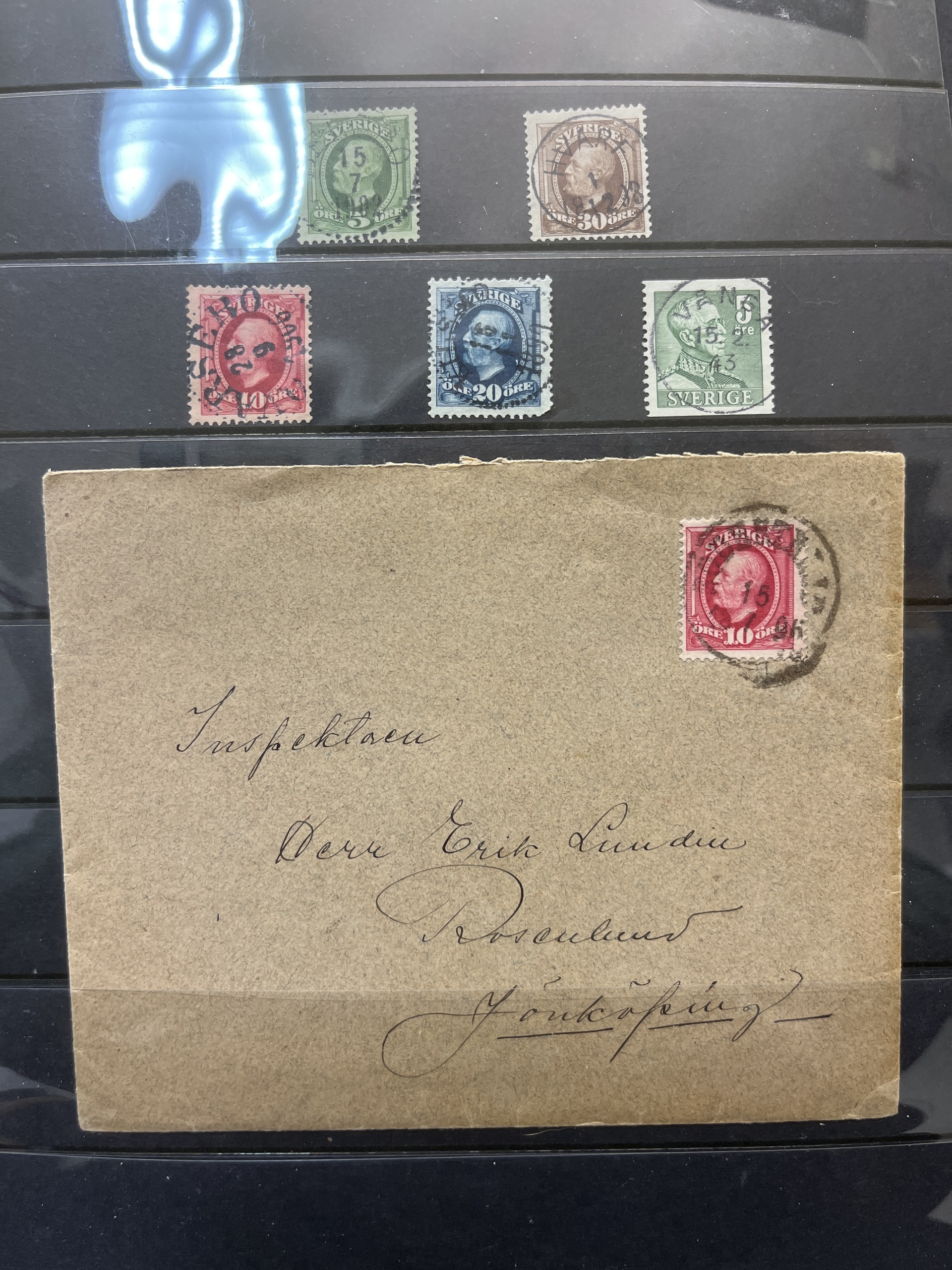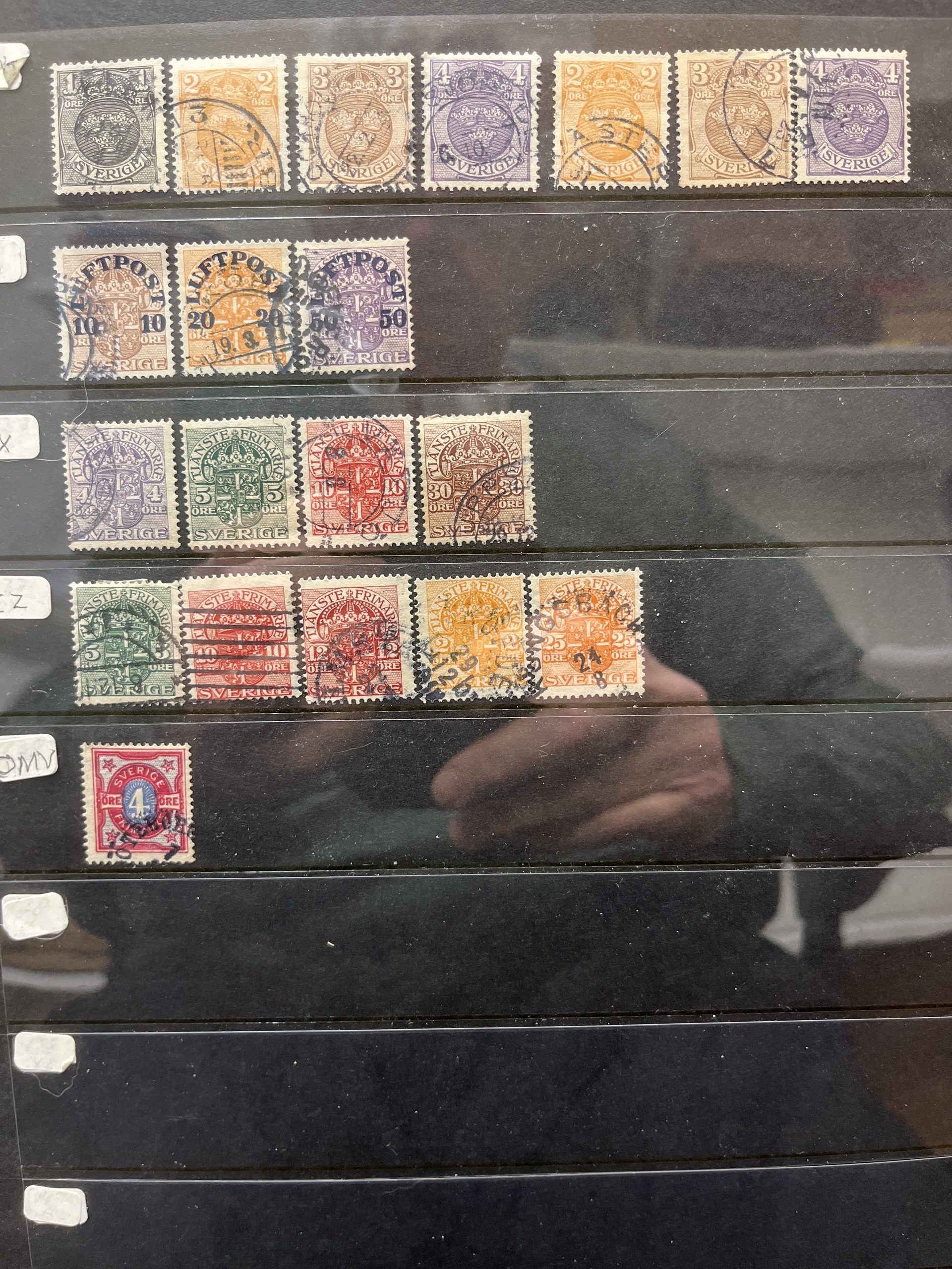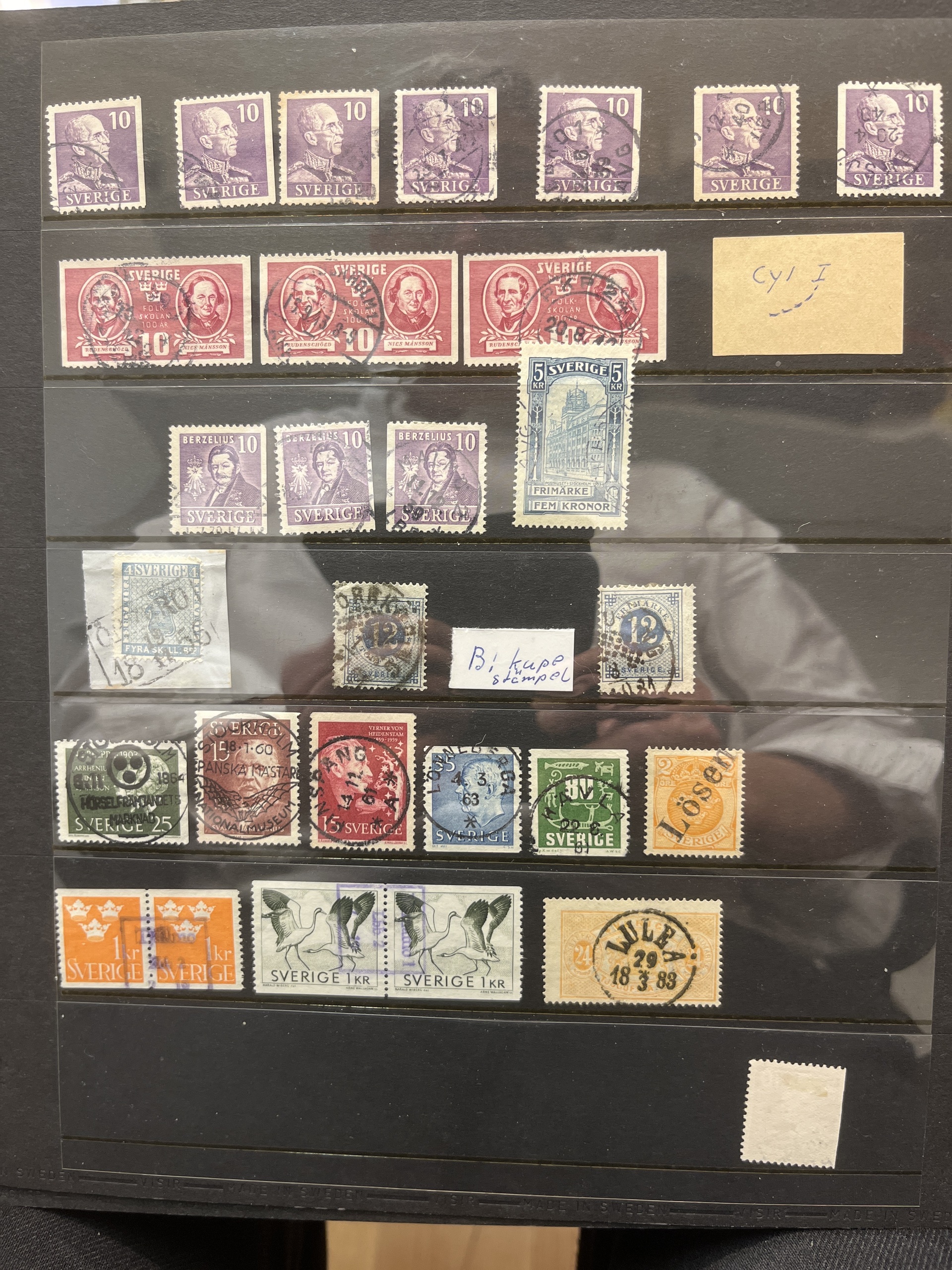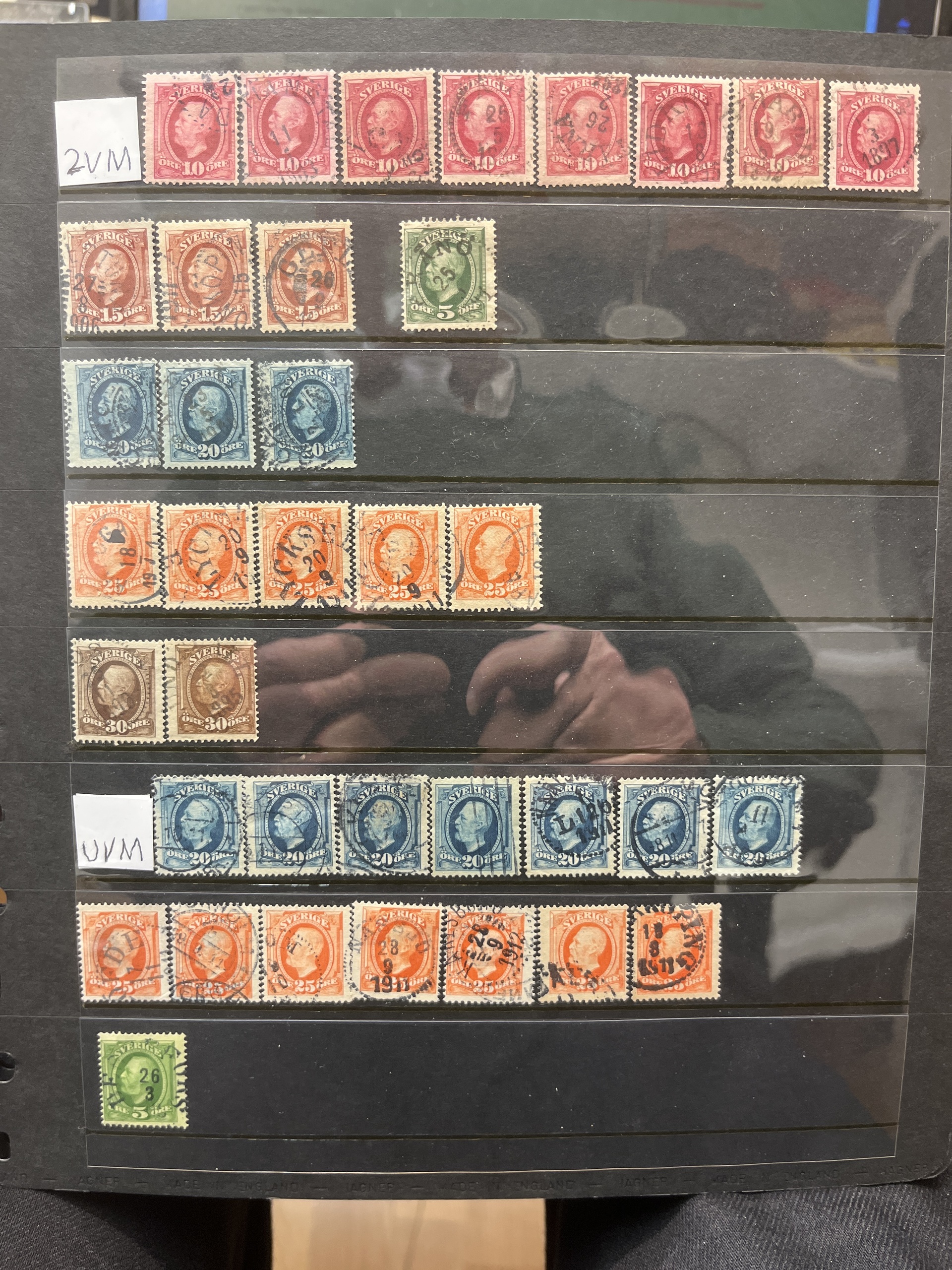 Sweden. Lot used on five visir leaves. with e.g. inverted wm and cancels.
