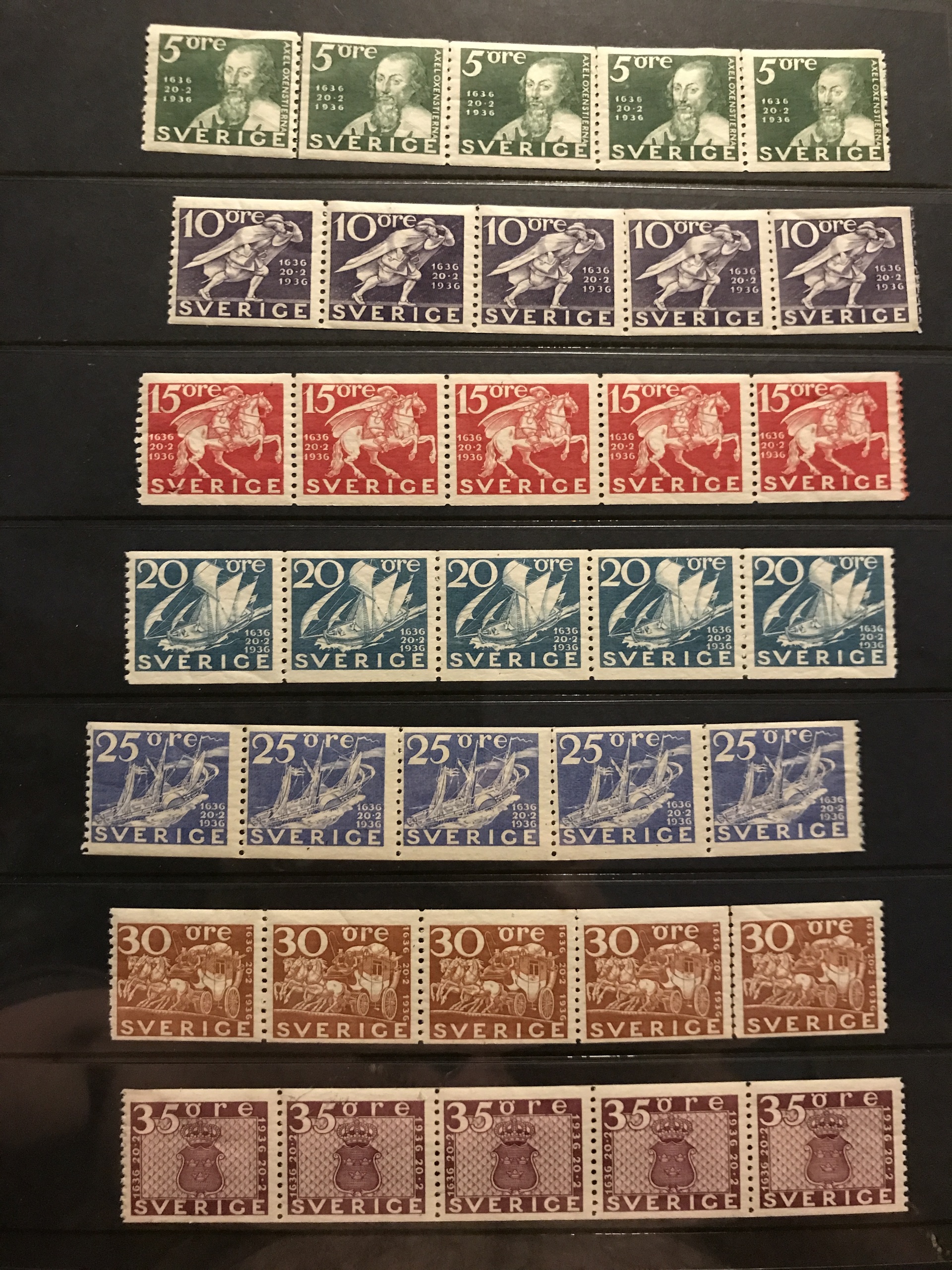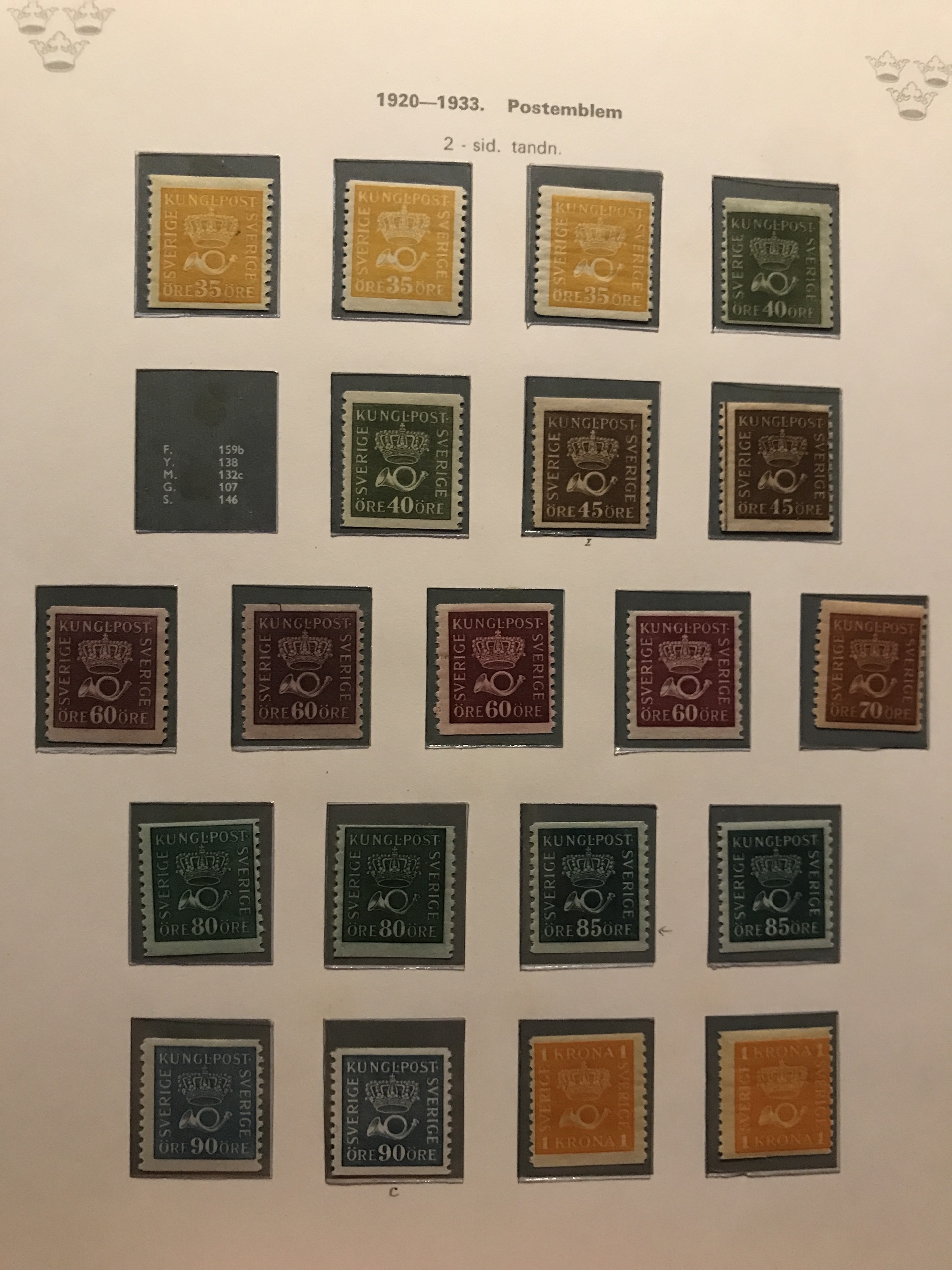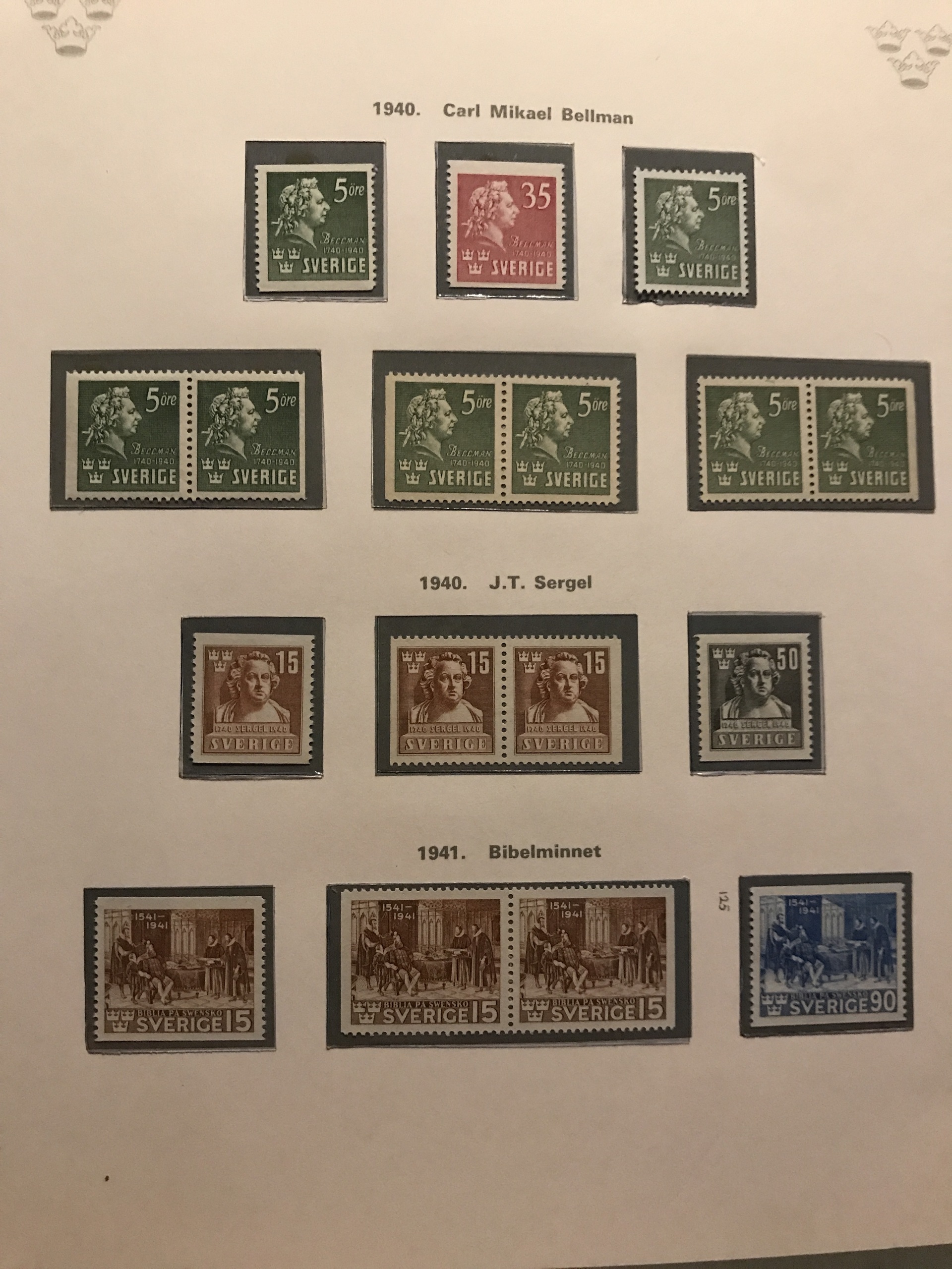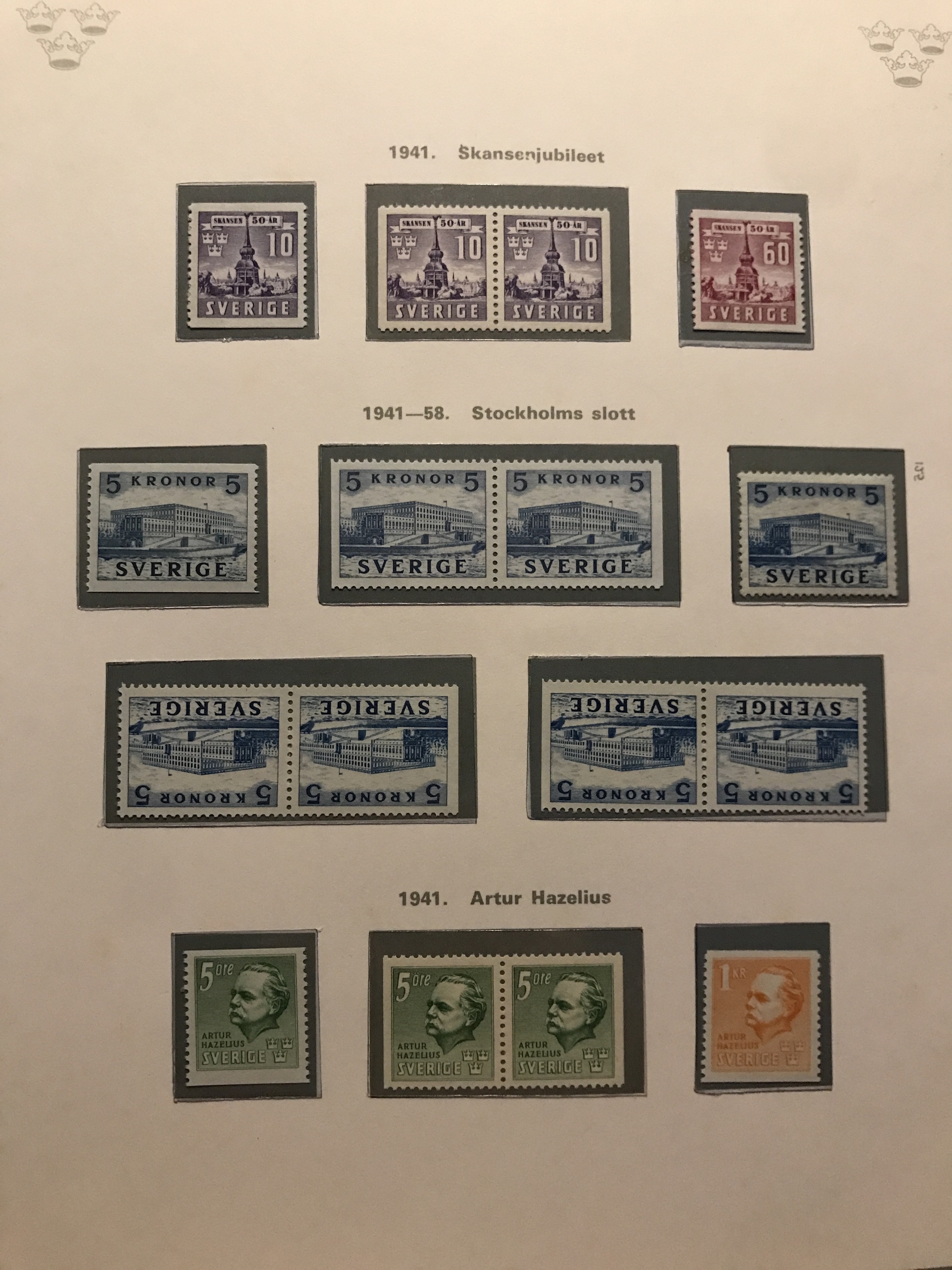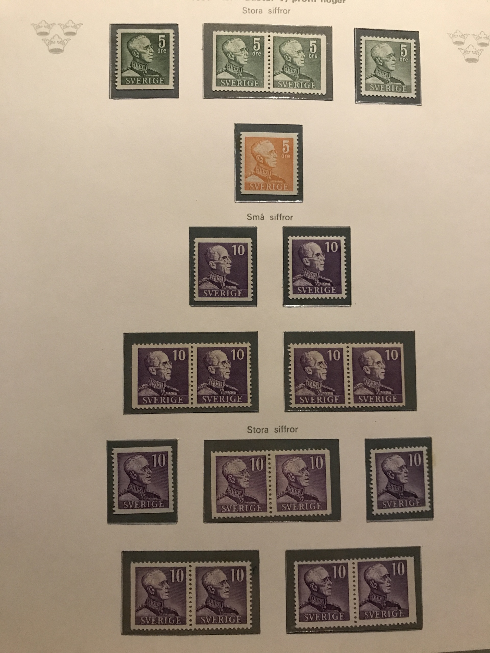 Sweden. ★★/★/⊙. Collection 1855–1977 in two Verbis albums incl. four 4-skill, 6+8-skill (small def.), 24-skill and two black local stamps, over complete Coat-of-Arms and Lion types incl. 50 öre *, nice Circle types incl. many. Everything */** from 1887 incl. cpl Oscar, F65 *, an expensive section Coil stamps, cpl. 1924-years incl. e.g. UPU 5–80 öre and 2+5 kr **, 233a in ** pair, six sets F246–57 incl. ** stripes-of-five and blocks-of-four, all BC/CB-pairs mainly **, etc. Mostly fine quality, some early (*). Please see a selection of scans at www.philea.se.