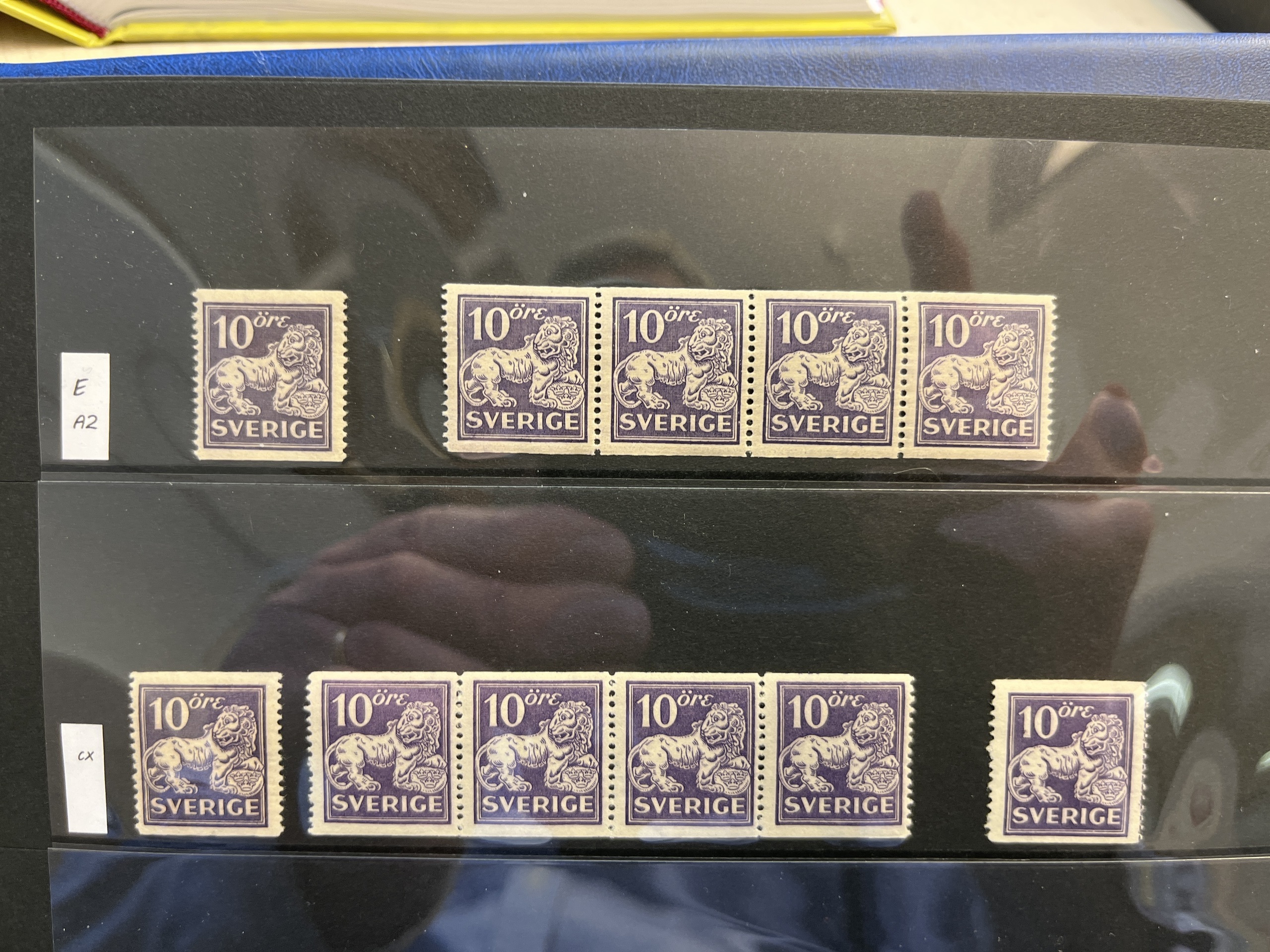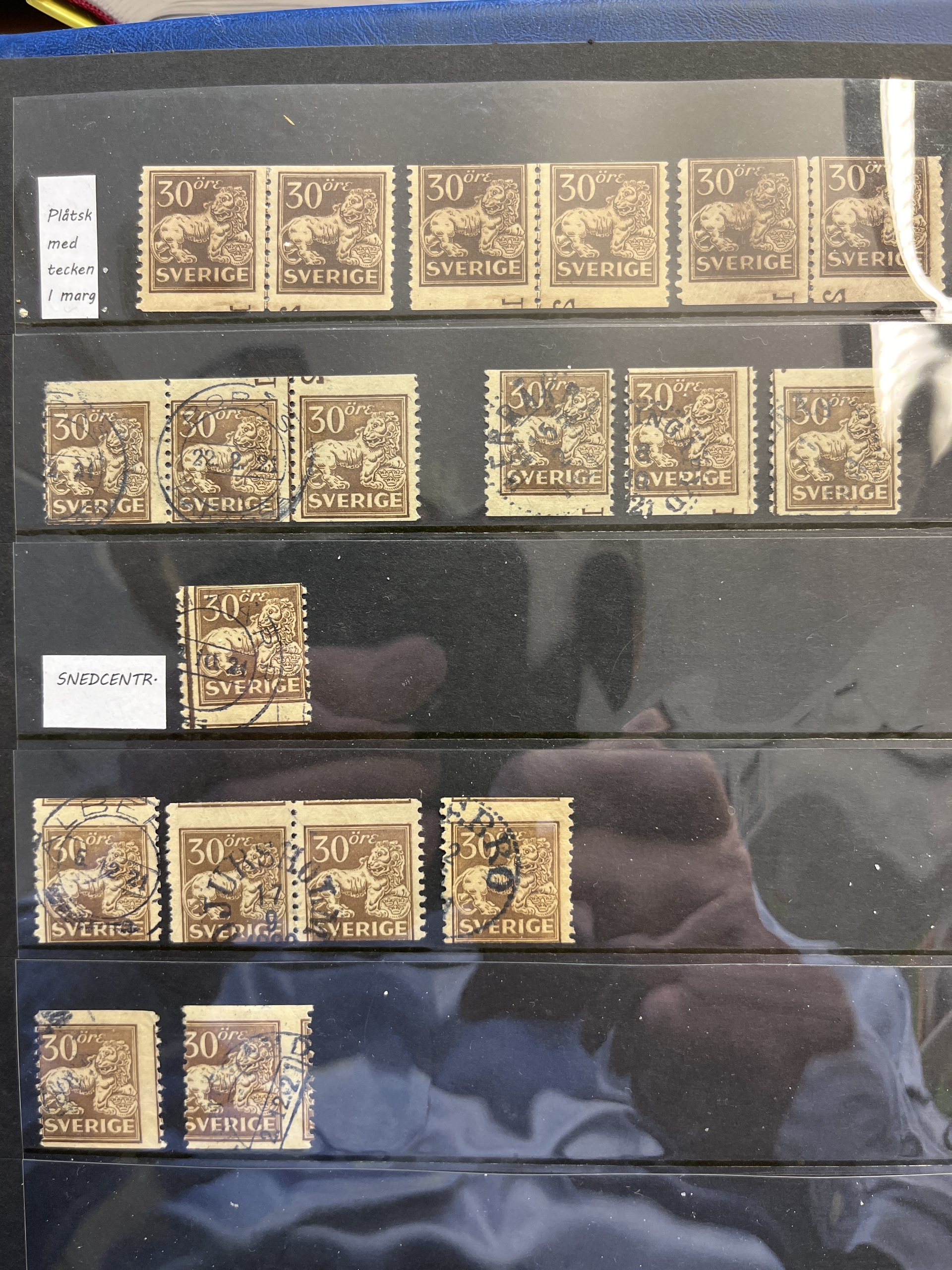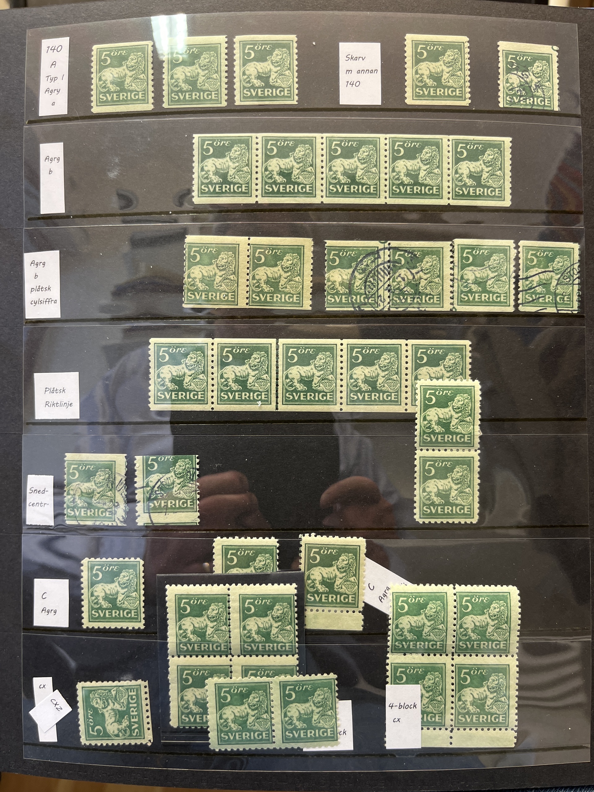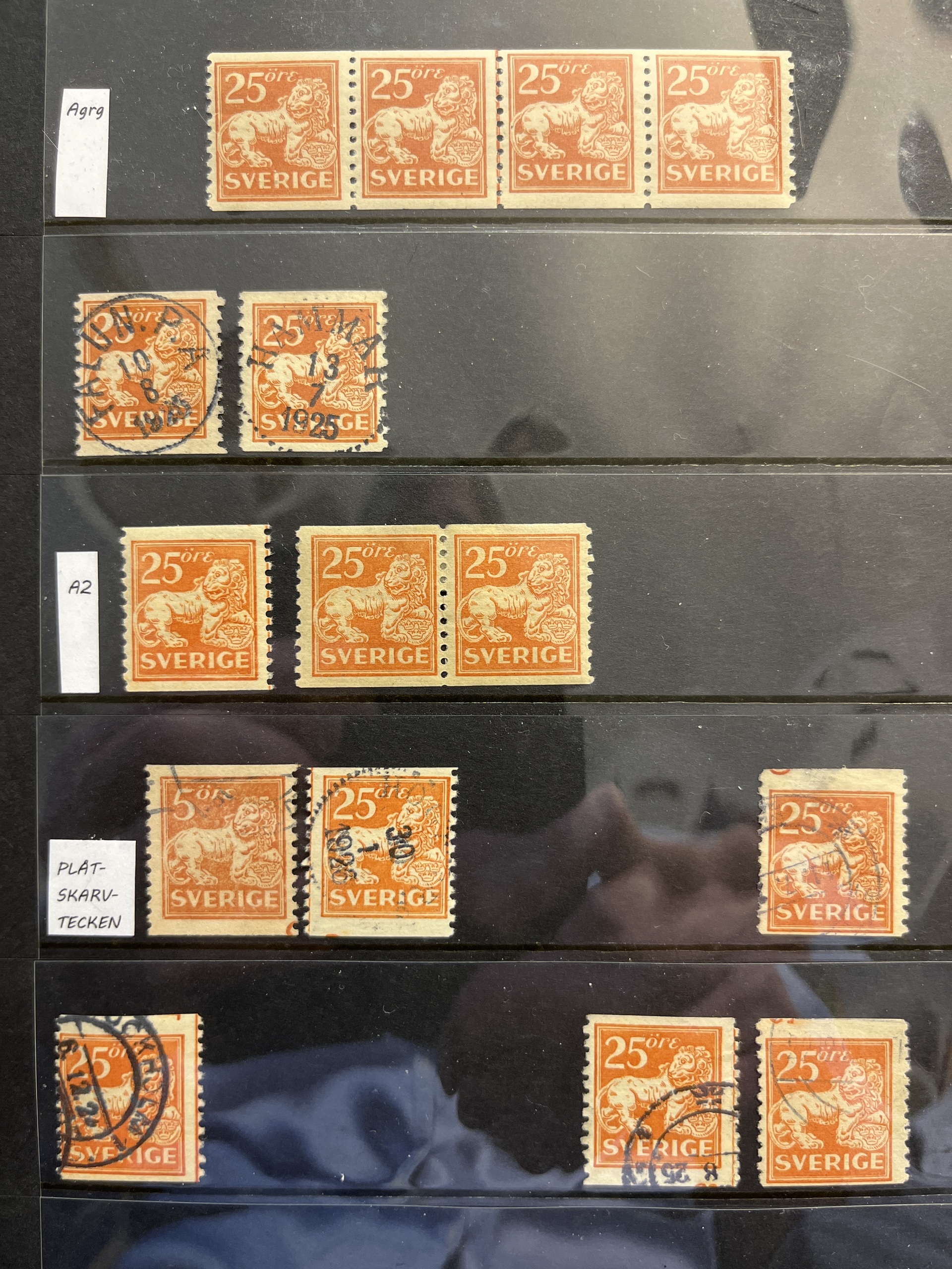 Sweden. Collection ★★/★/⊙ 1920–1934 Standing lion in visir album. With e.g. blocks, strips and varieties. Please see a selection of scans at www.philea.se. Fine quality.