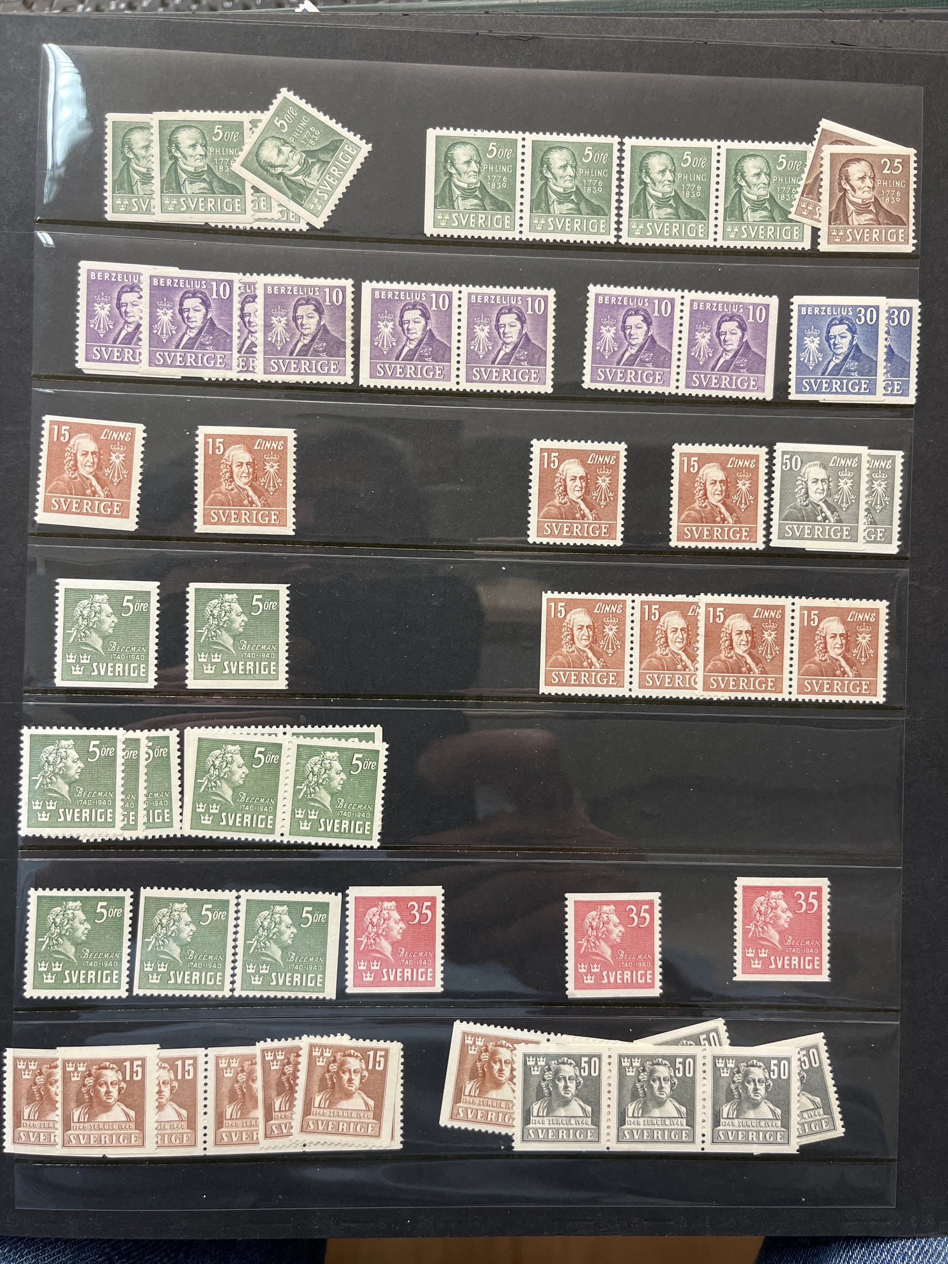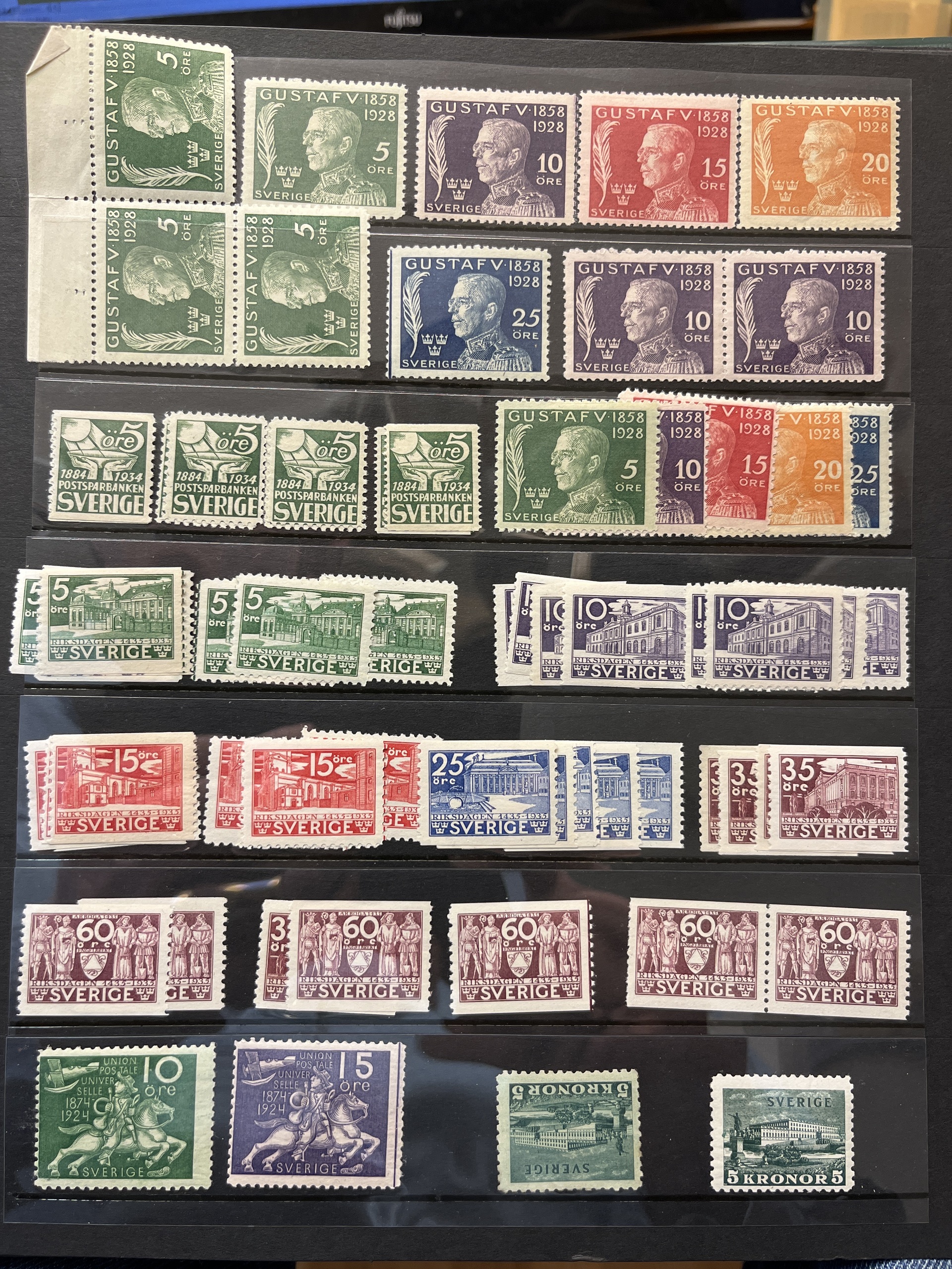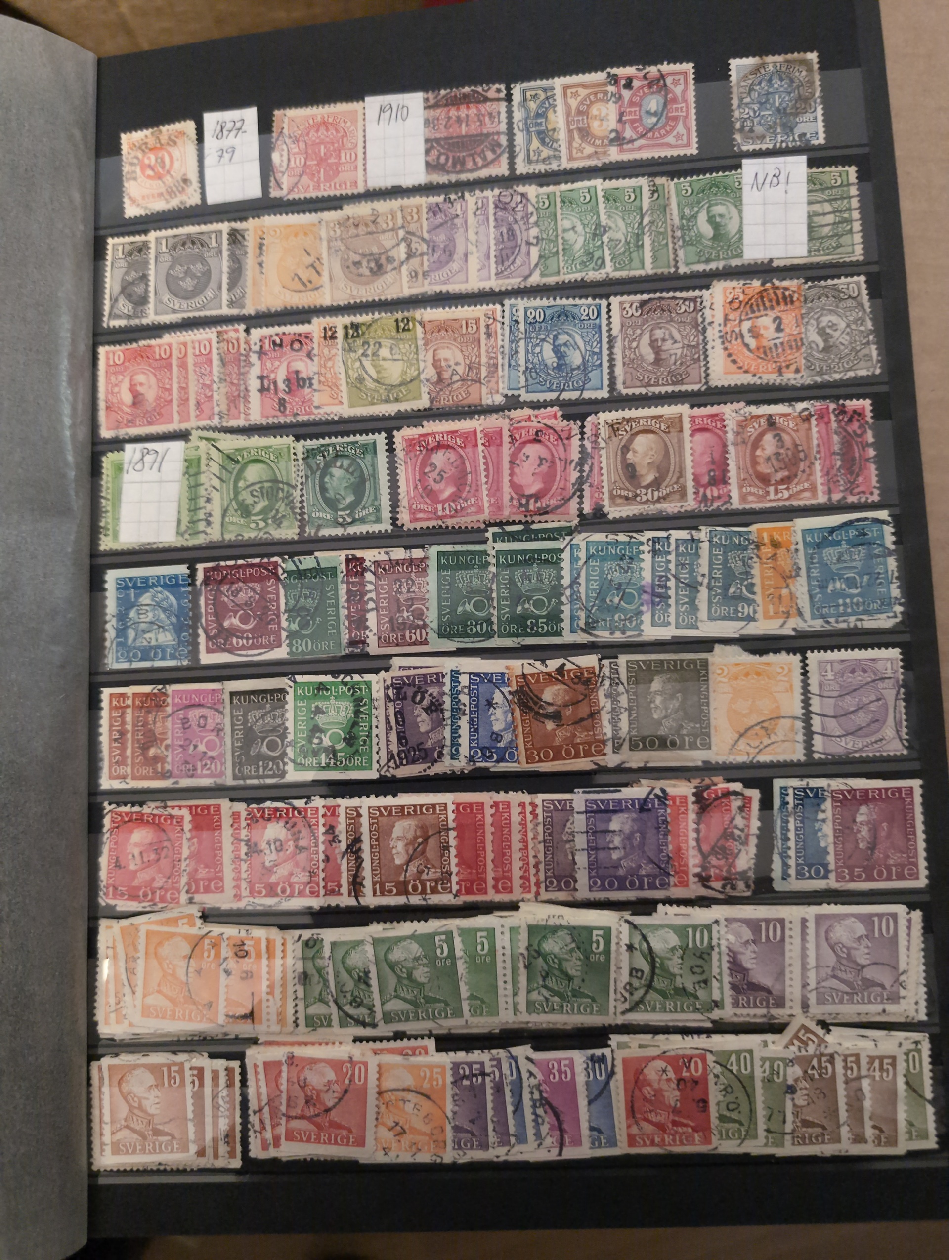 Sweden. Accumulation ★★/⊙ ca. 1900–1990 in box. Visir album ** 1886–1985 and three albums with Sweden used duplicates. Favourable reserve. Please see a selection of scans at www.philea.se. Approx. 9 kg.