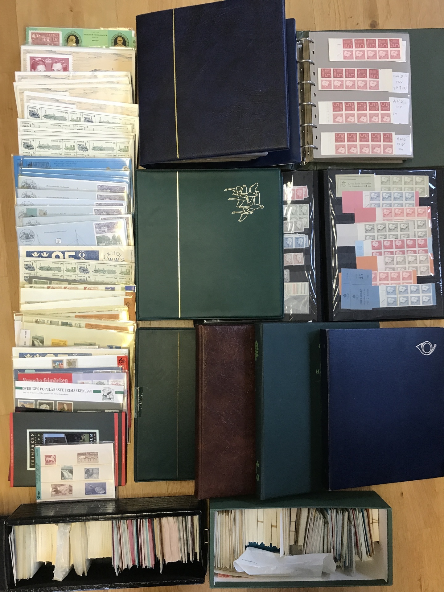 Sweden. ★★/★/⊙. Accumulation old–modern in e.g. eight albums/binders incl. collections in Facit- and Gripen albums, several booklets, year sets and present packs, etc. Approx. 19 kg.