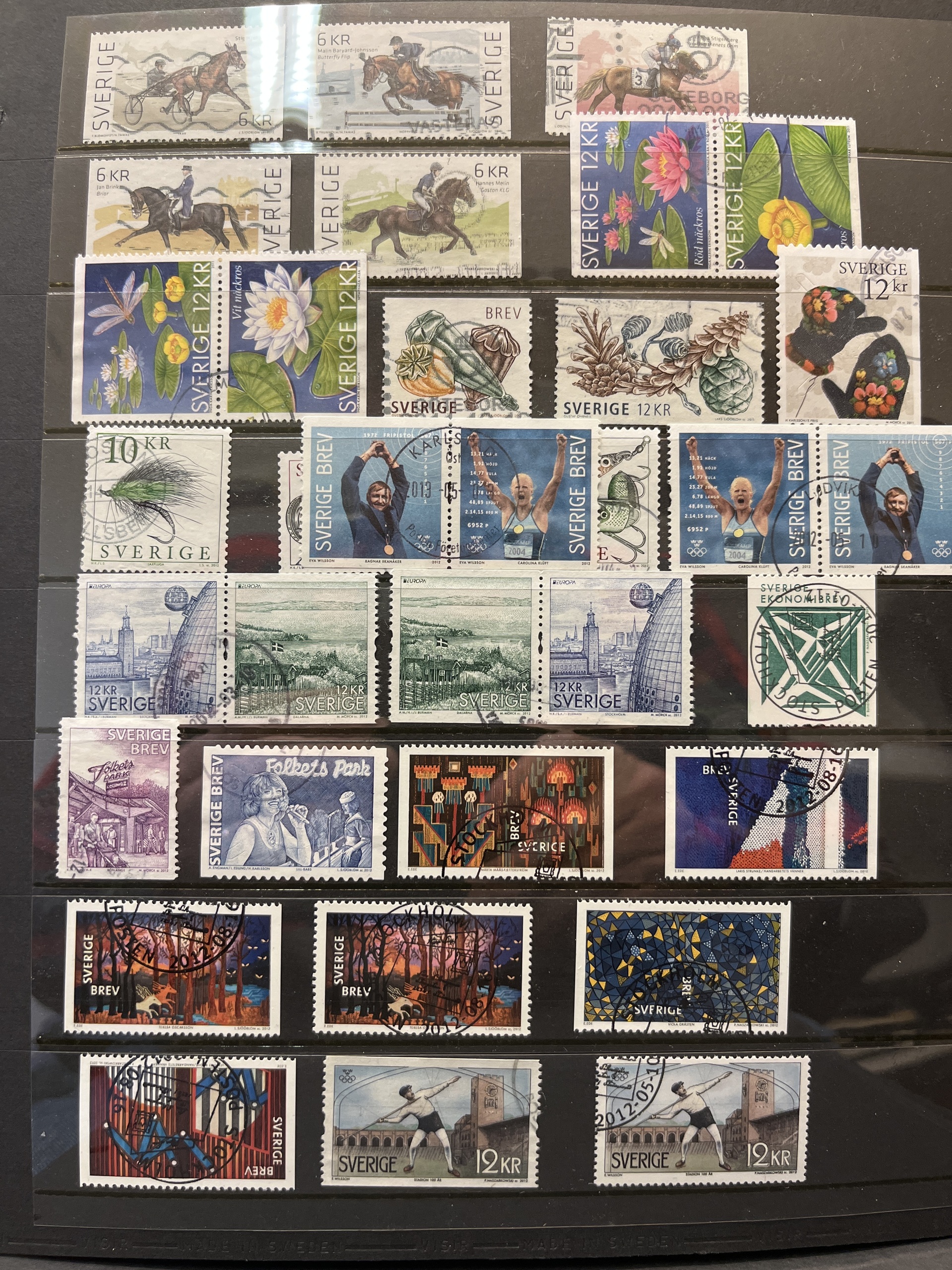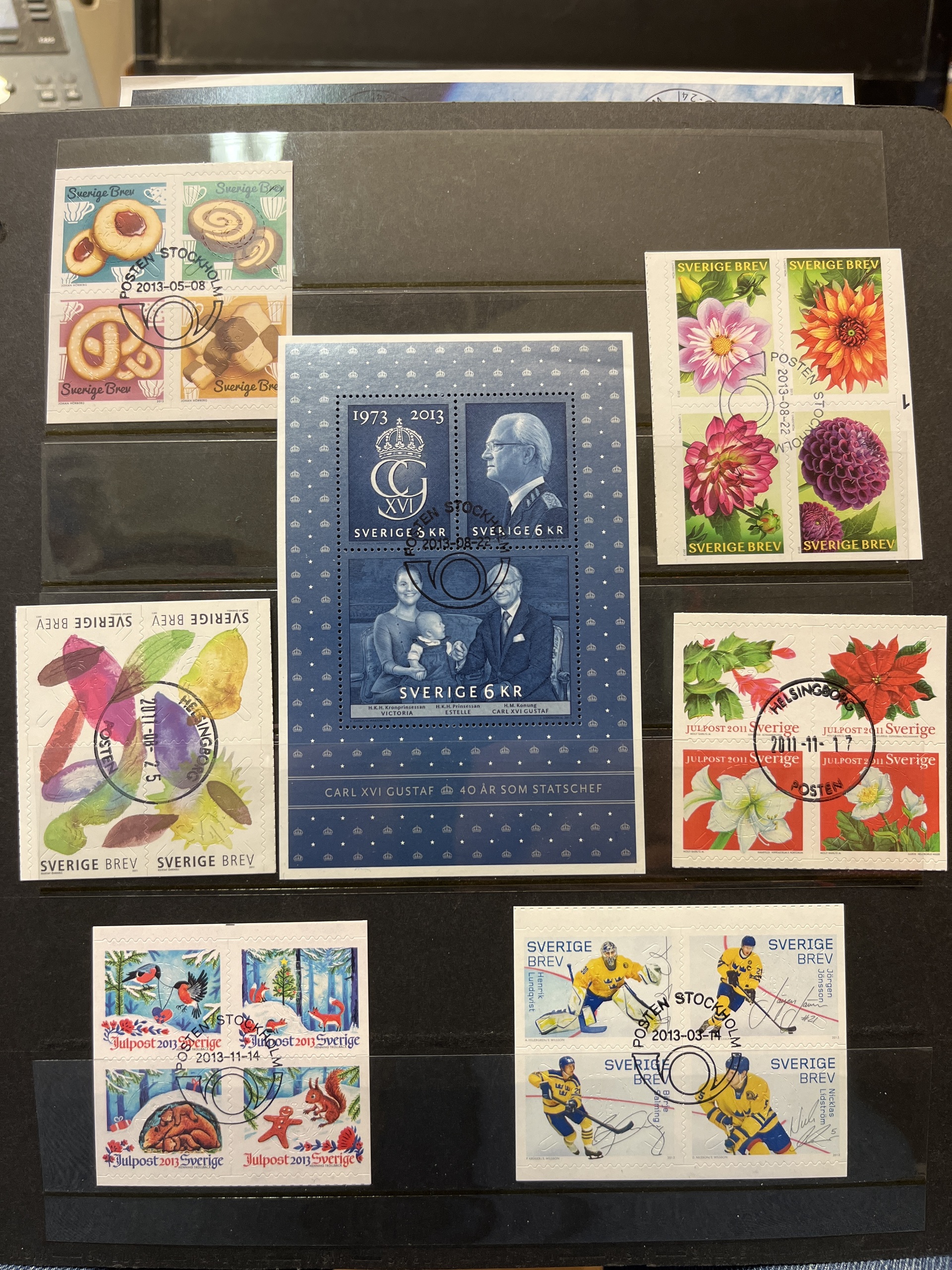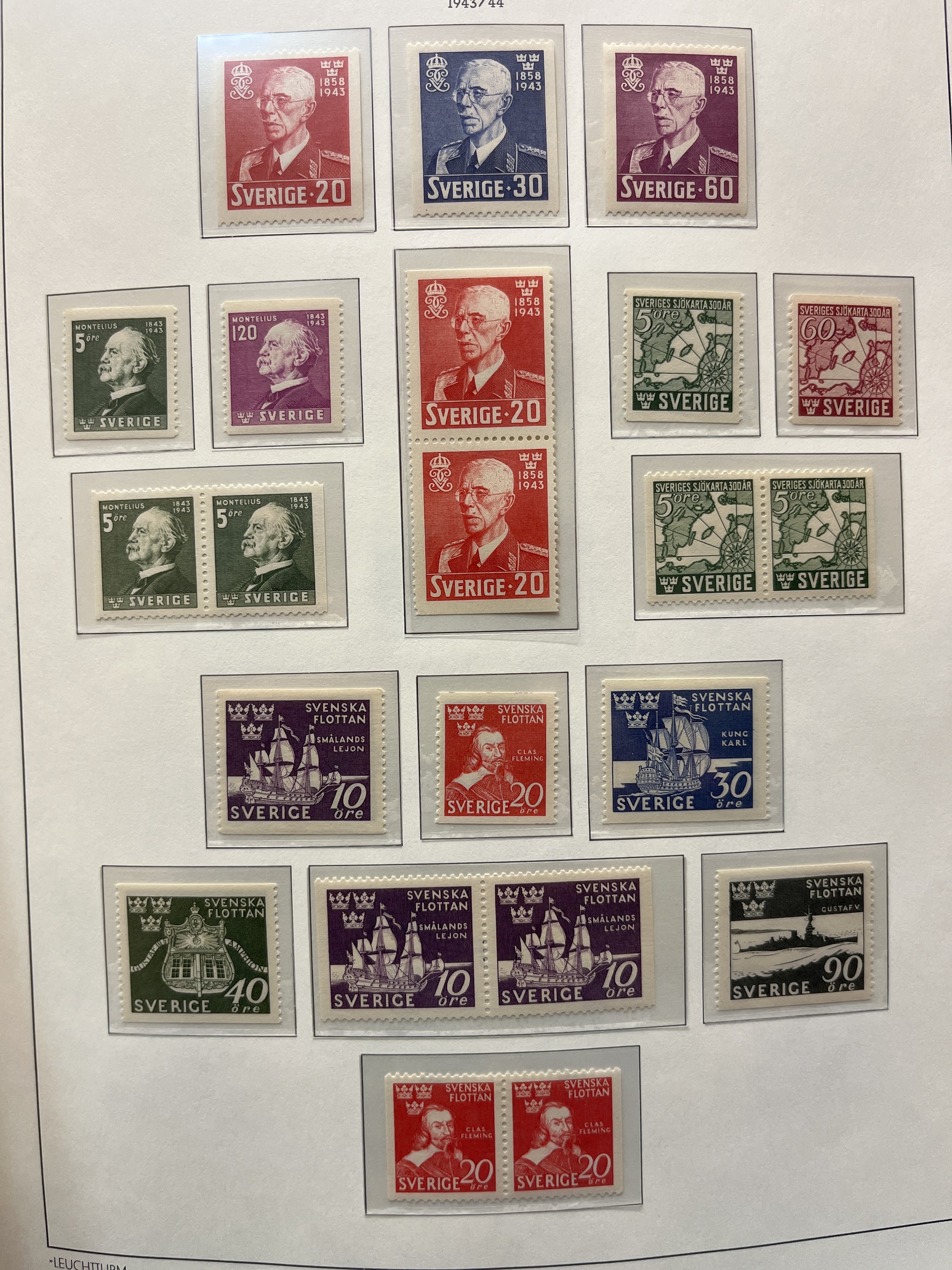 Sweden. Collections ★★/⊙ in box. unused 1936–1979 and used 1938–83, 1974–1997 in four Leuchtturm albums and used 1998–2013 (almost cpl.) with many blocks on visir leaves. Fine quality. Approx. 11 kg.