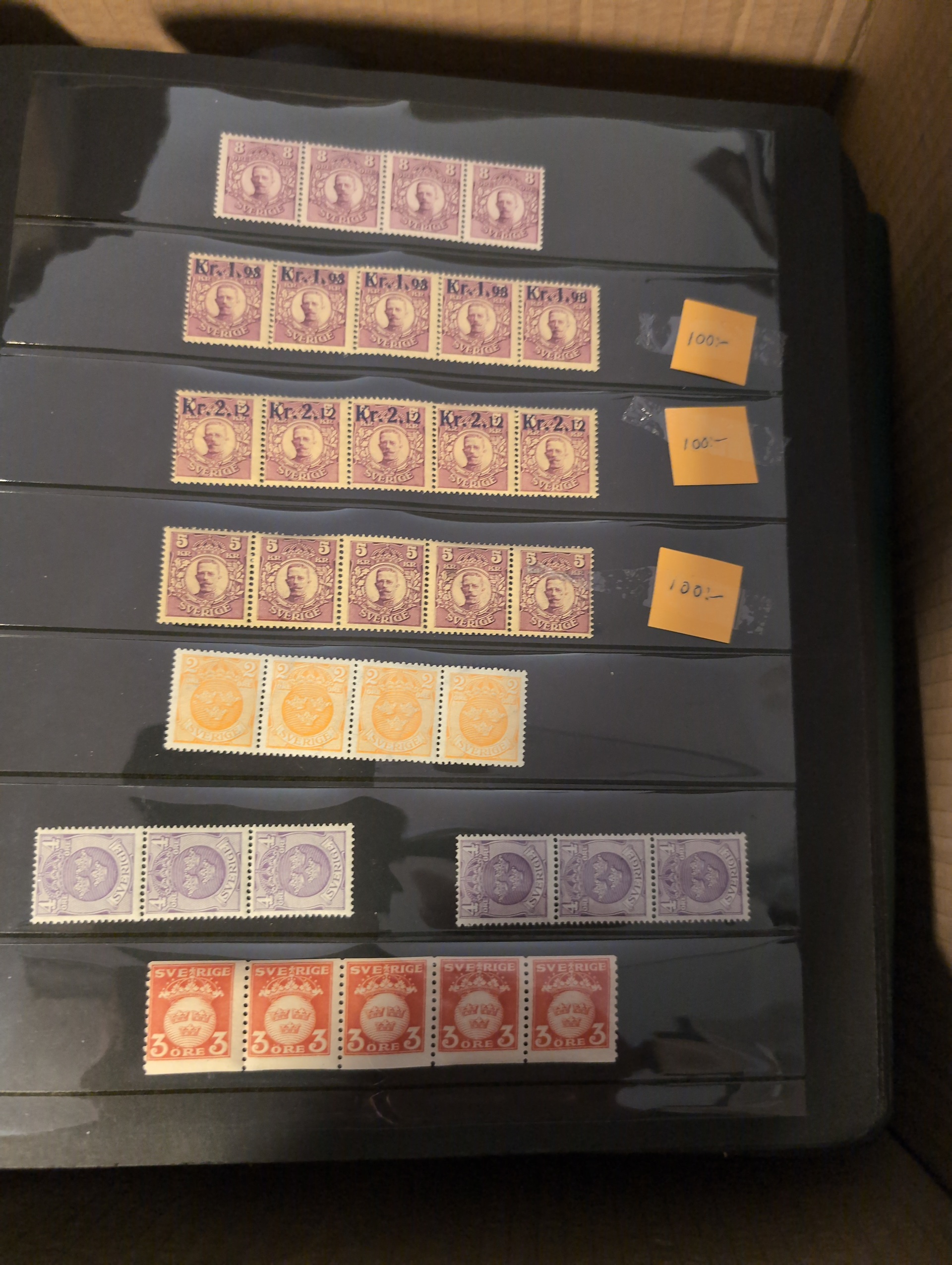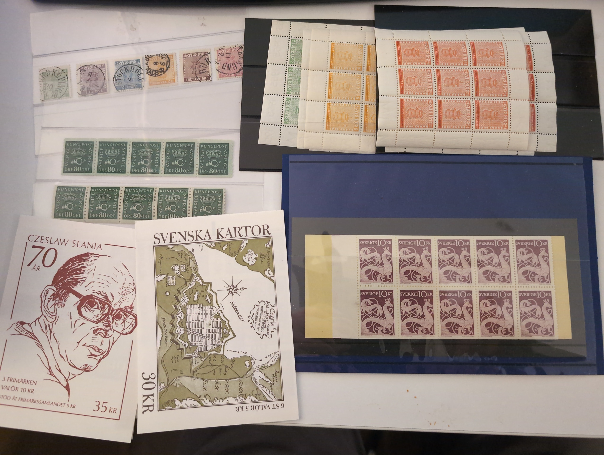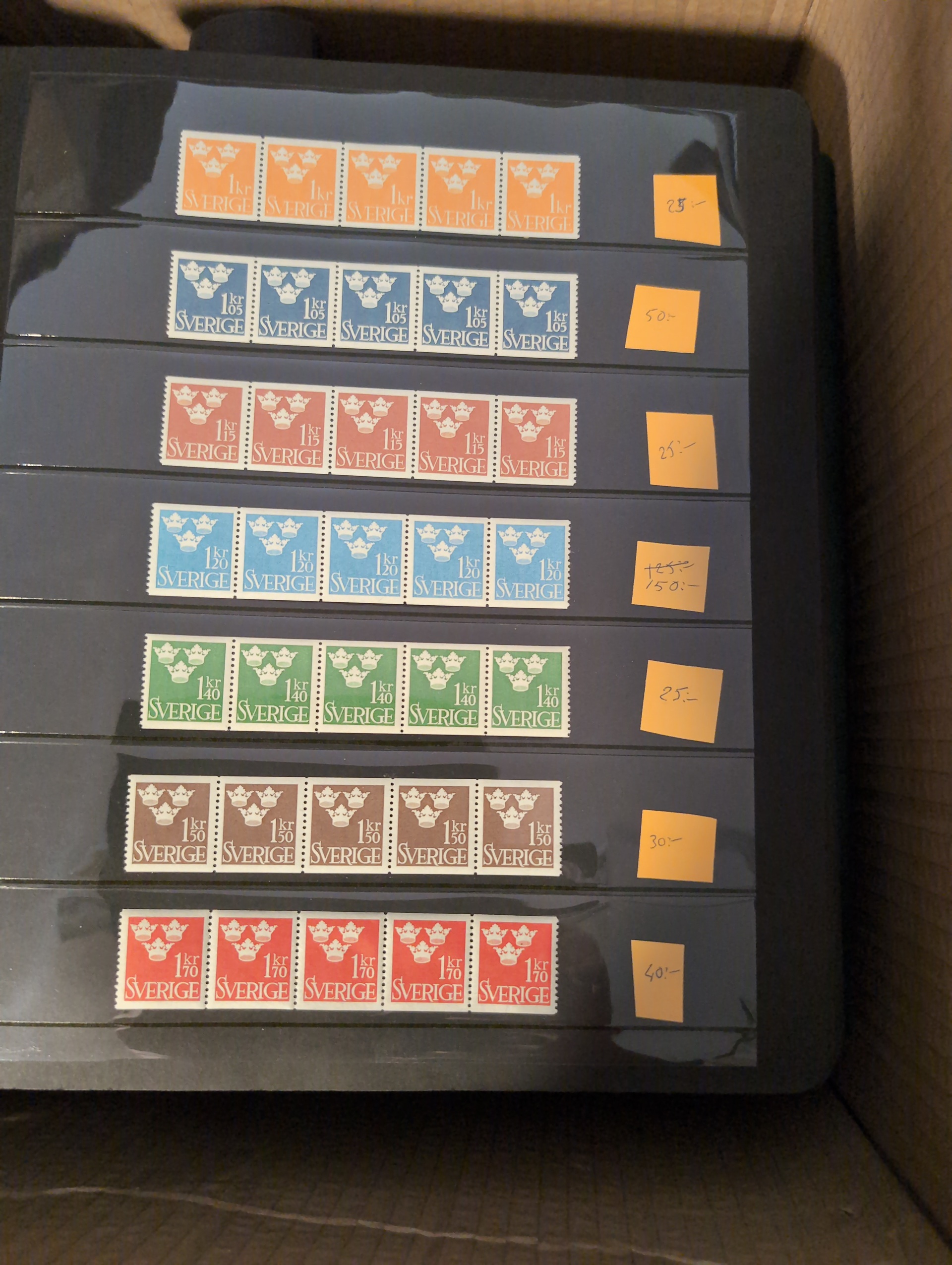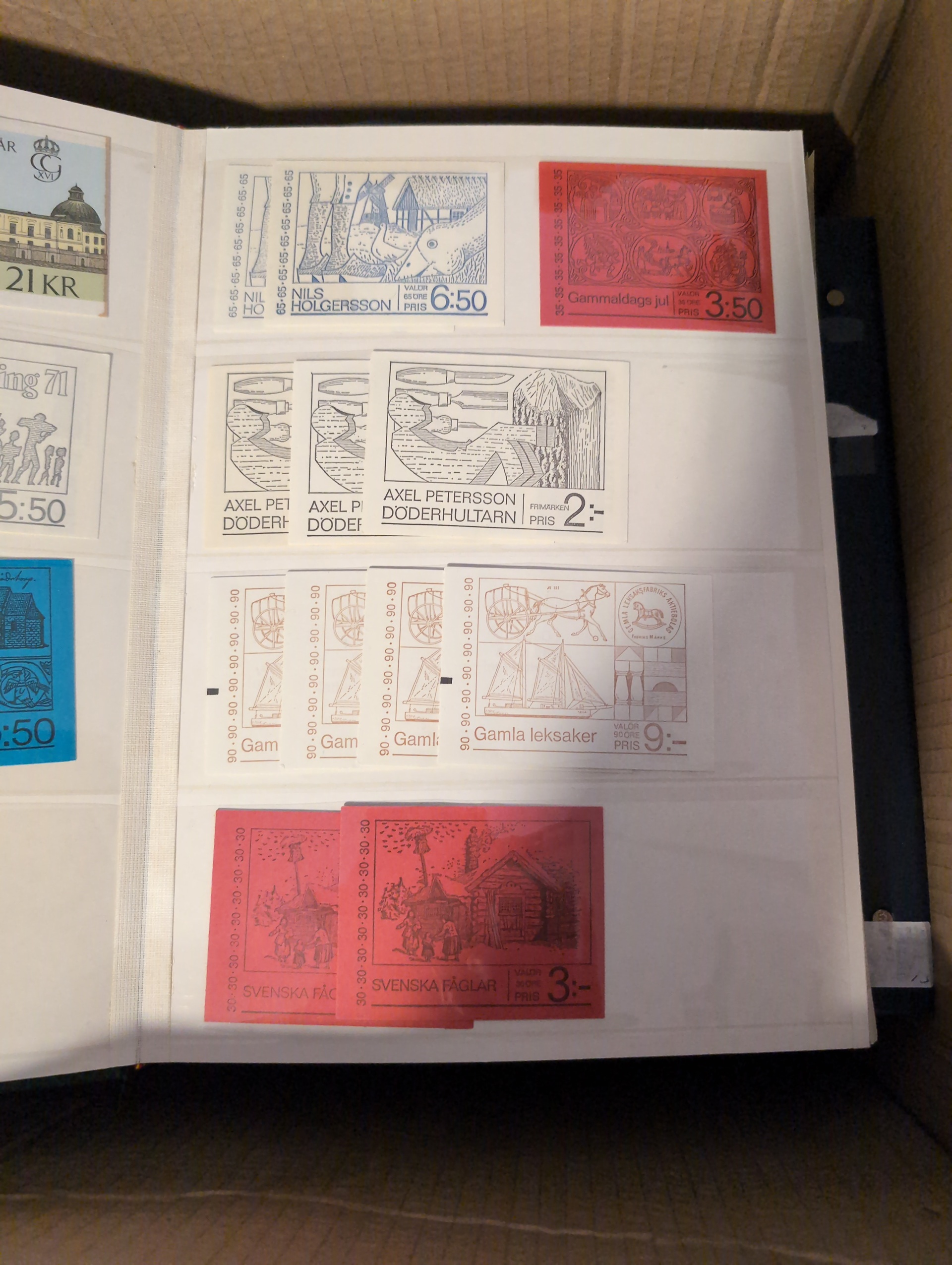 Sweden. Accumulation ★★/★/⊙ 1858–1990s in box. Eleven albums and a mystery box. Mostly mint NH with some better stamps and sets. incl. booklets and many smaller collections. Please see a selection of scans at www.philea.se. Somewhat mixed quality. Approx. 20 kg. (1000s)