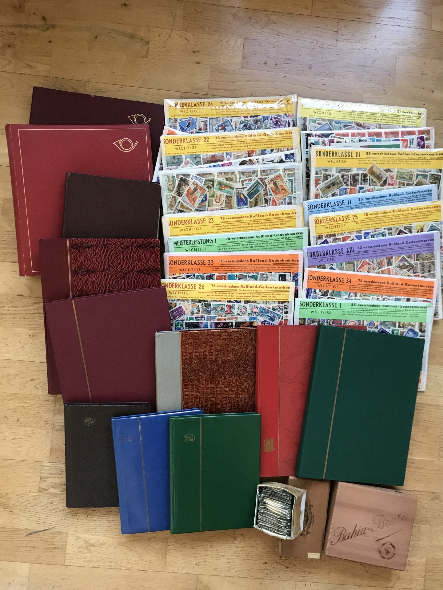 Sweden. ★★/★/⊙. Accumulation Coat-of-Arms–ca. 1970 in e.g. nine stockbooks and two binders + covers and FDCs, etc. Also some other countries incl. made-up packets, etc. Approx. 14 kg.