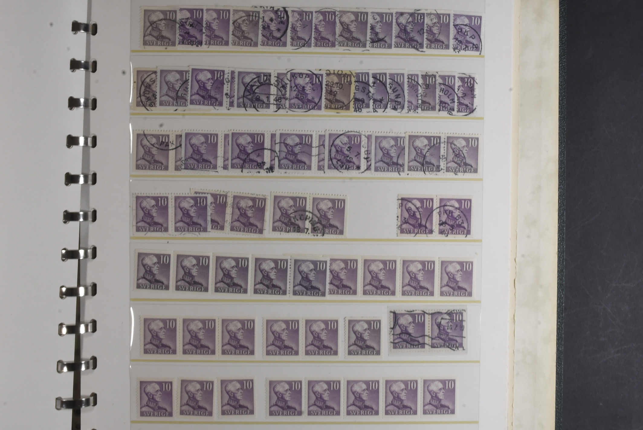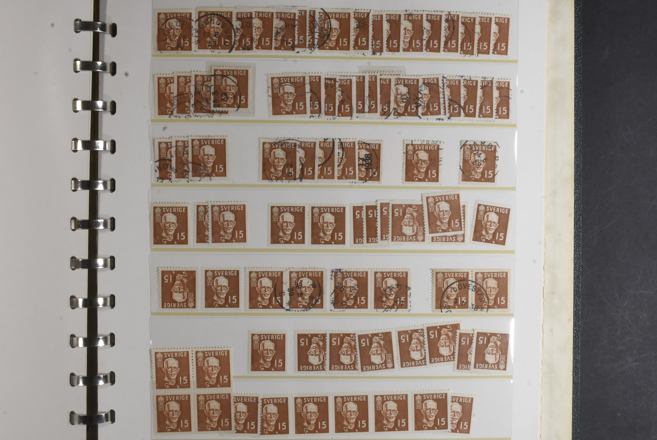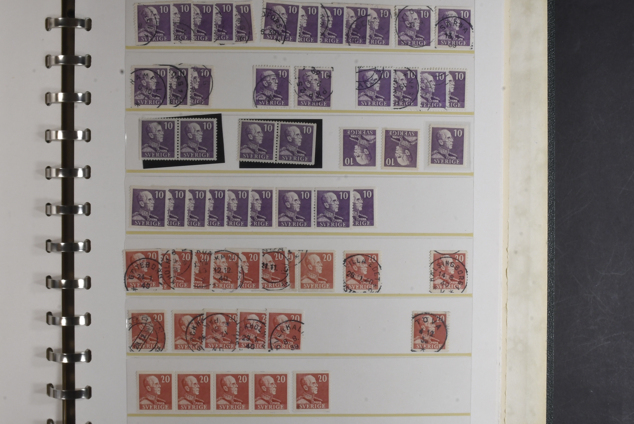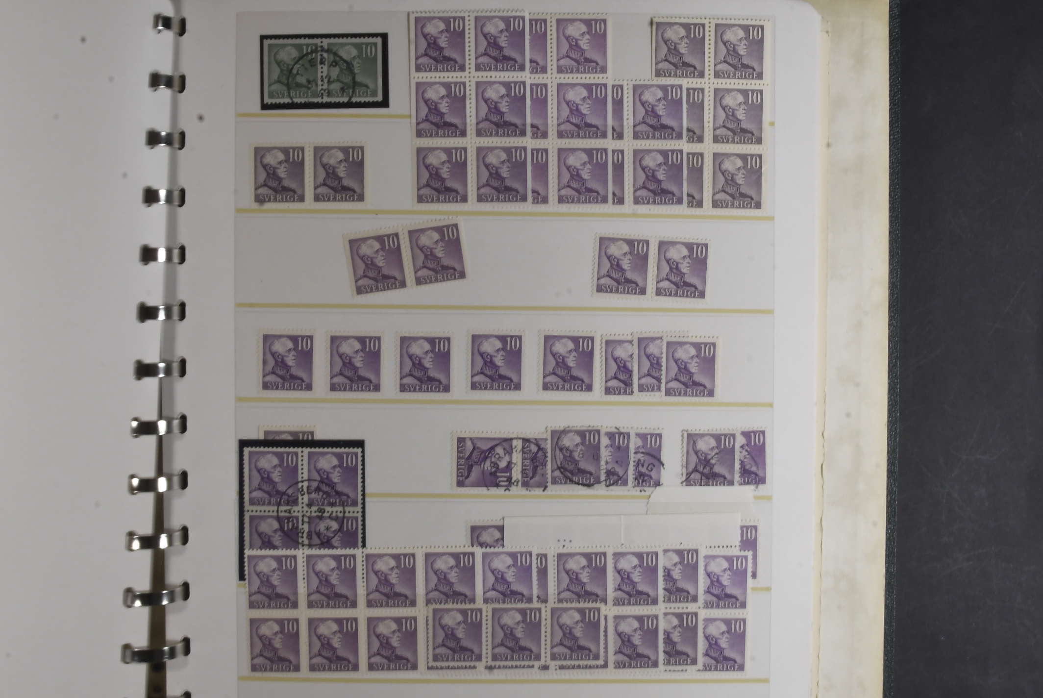 Sweden. Collection/accumulation ★★/★/⊙ 1938–1945 in visir album. King Gustaf V 80 years and King Gustaf V profile right (both small and large digits). Study material concerning shades, printing varieties, etc. Also incl some BC-/CB-pairs. Please see a selection of scans at www.philea.se. Fine quality. (>1000)