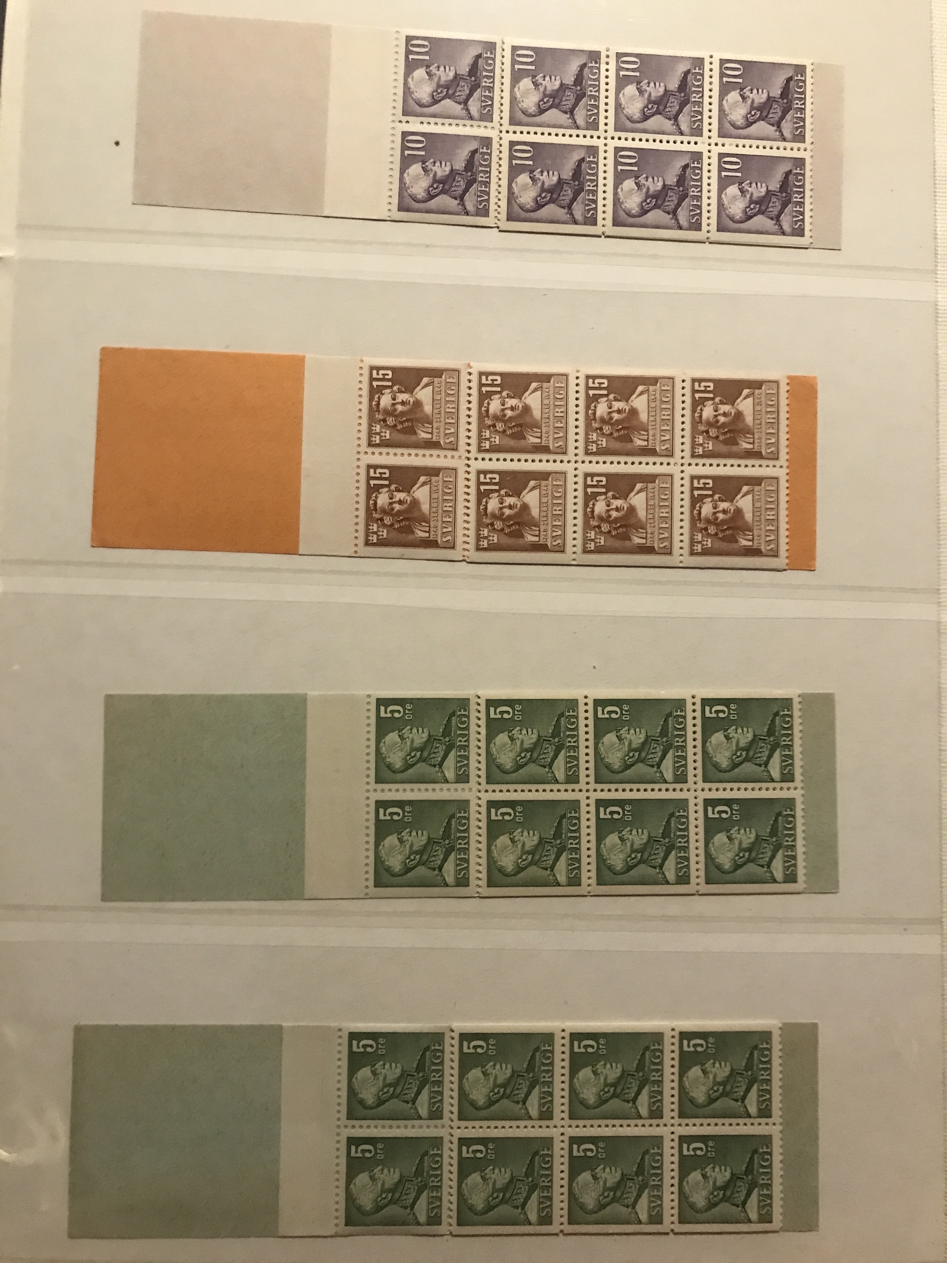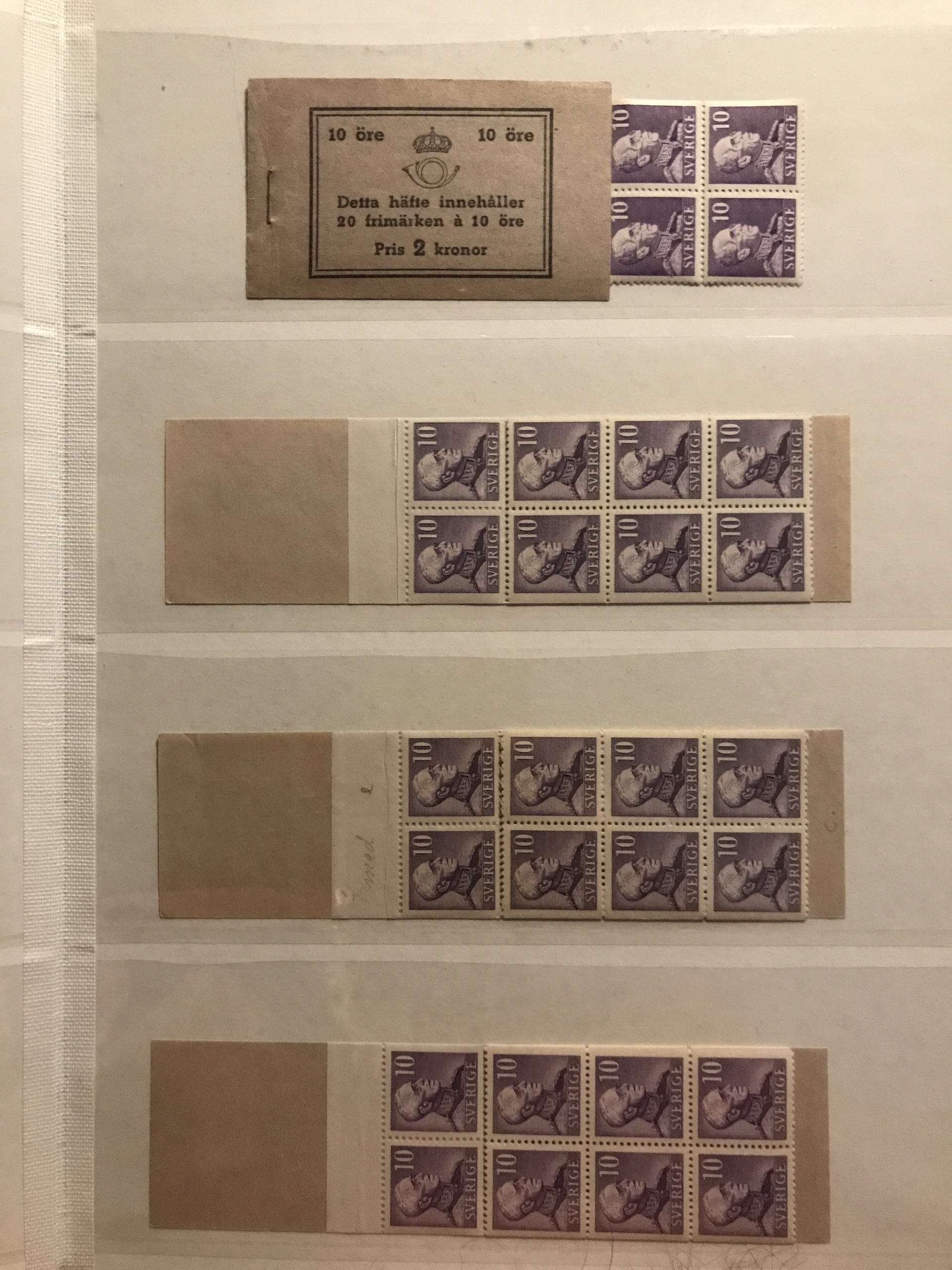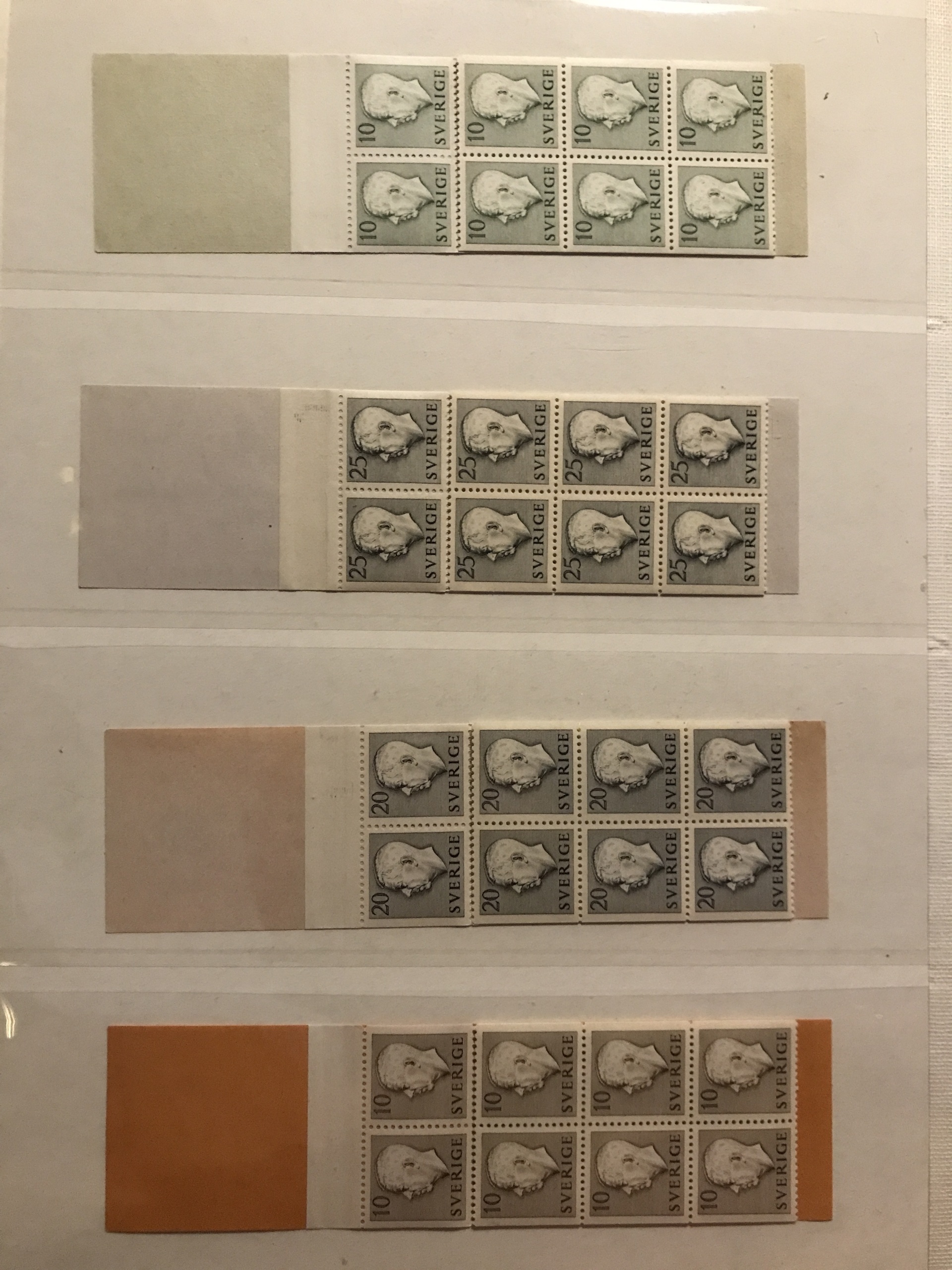 Sweden. Booklets. Collection 1921–1967 incl. 20 handmade booklets. Containing two H15, H18, 21, 25I, 27–30, 34- and 38–39CB, H55 and better GVI Adolf, etc. Please see a selection of scans at www.philea.se. Mostly fine quality. (49)