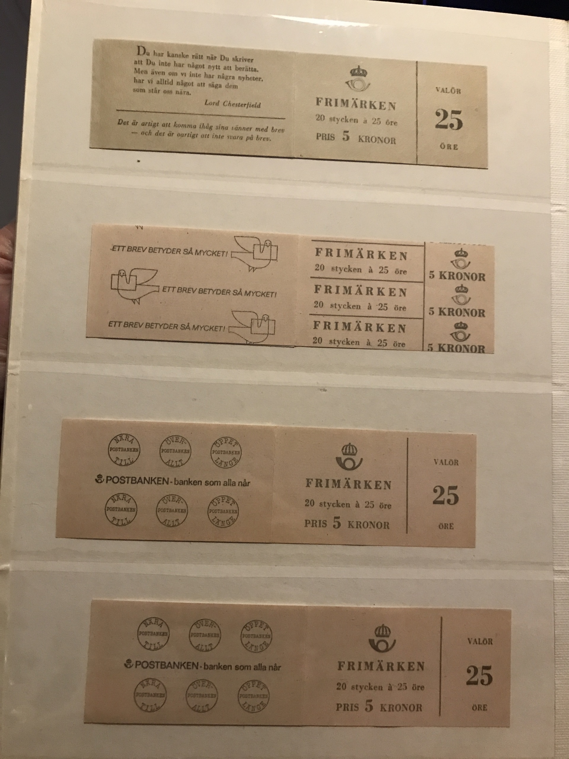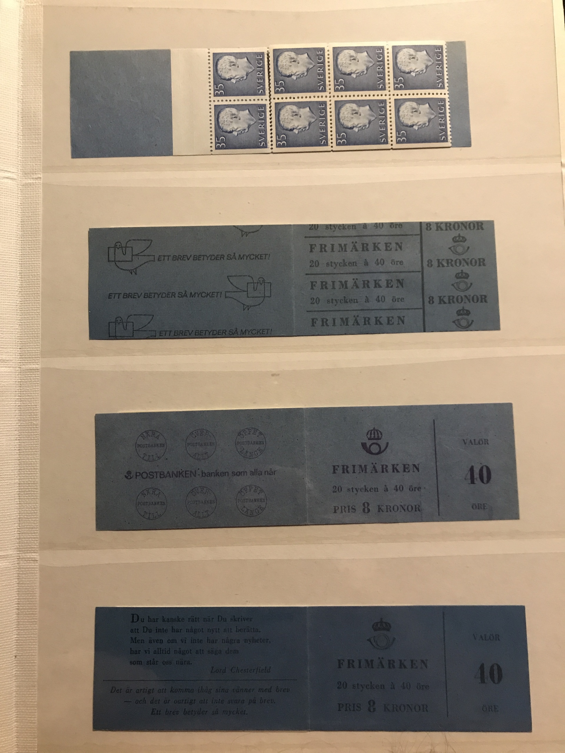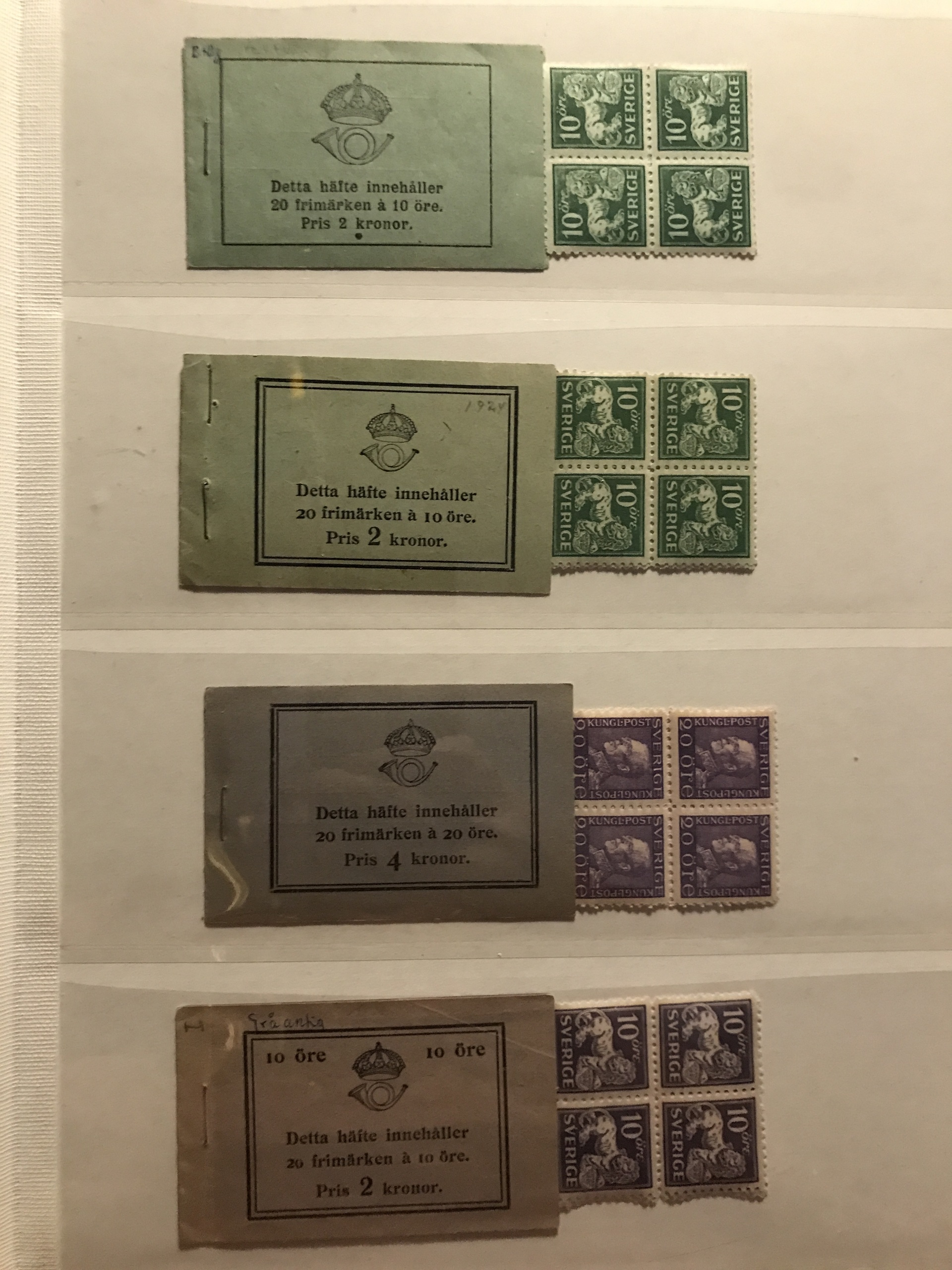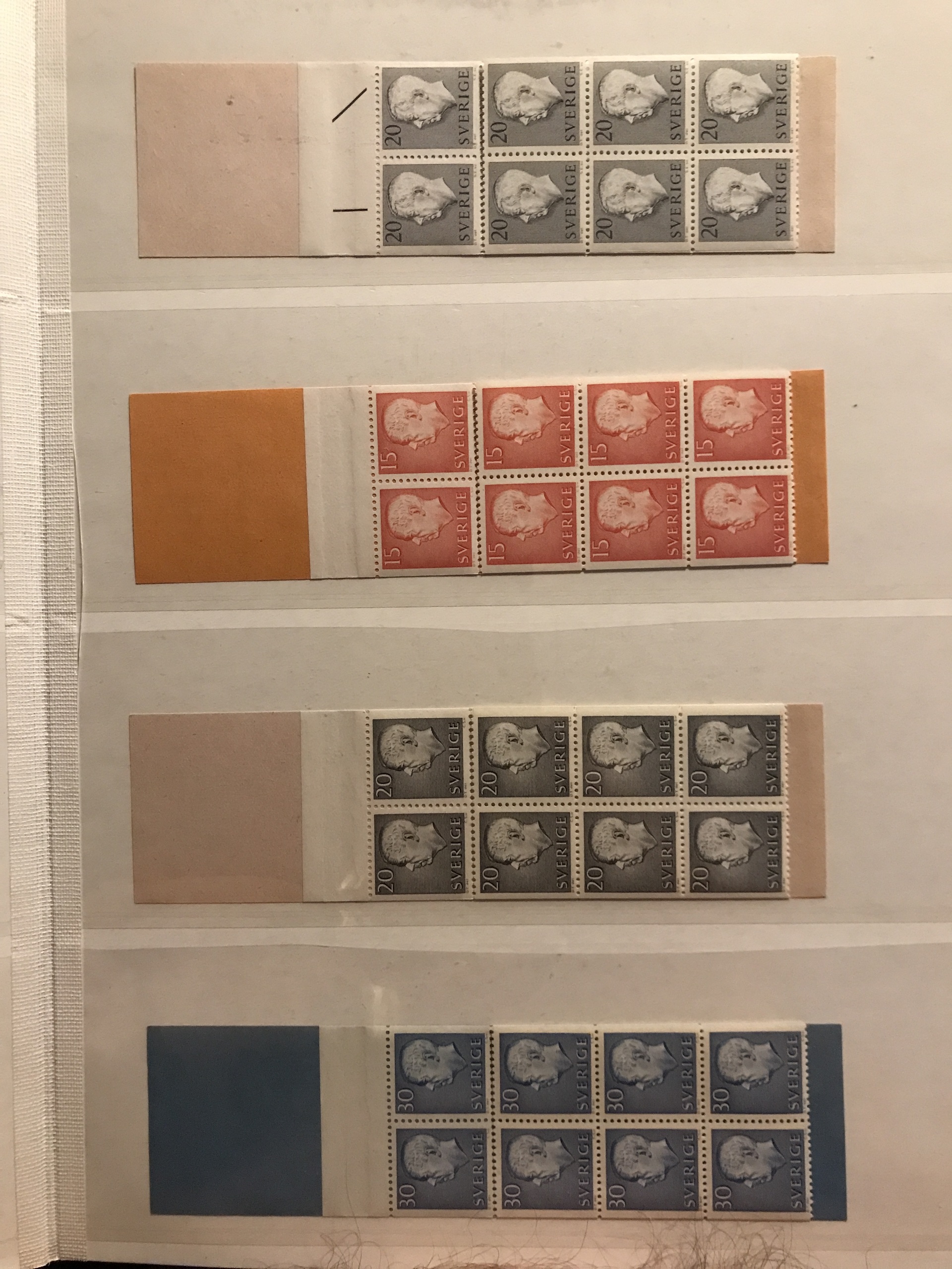 Sweden. Booklets. Collection 1921–1967 incl. 20 handmade booklets. Containing two H15, H18, 21, 25I, 27–30, 34- and 38–39CB, H55 and better GVI Adolf, etc. Please see a selection of scans at www.philea.se. Mostly fine quality. (49)