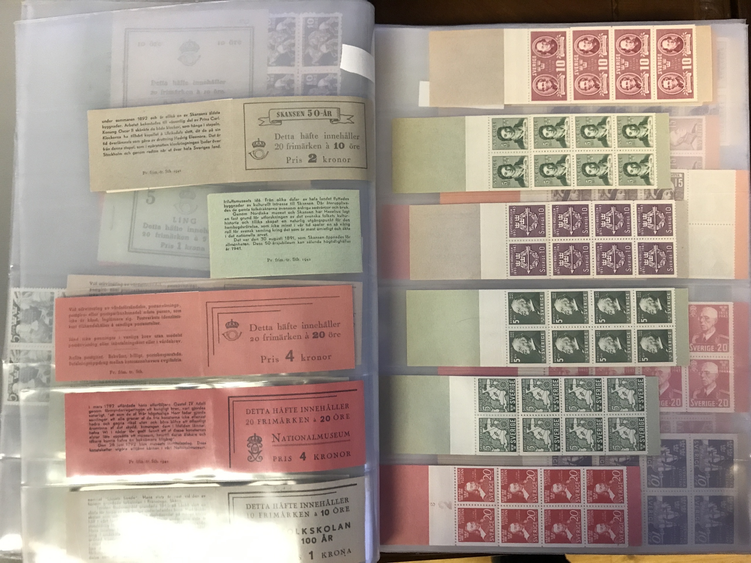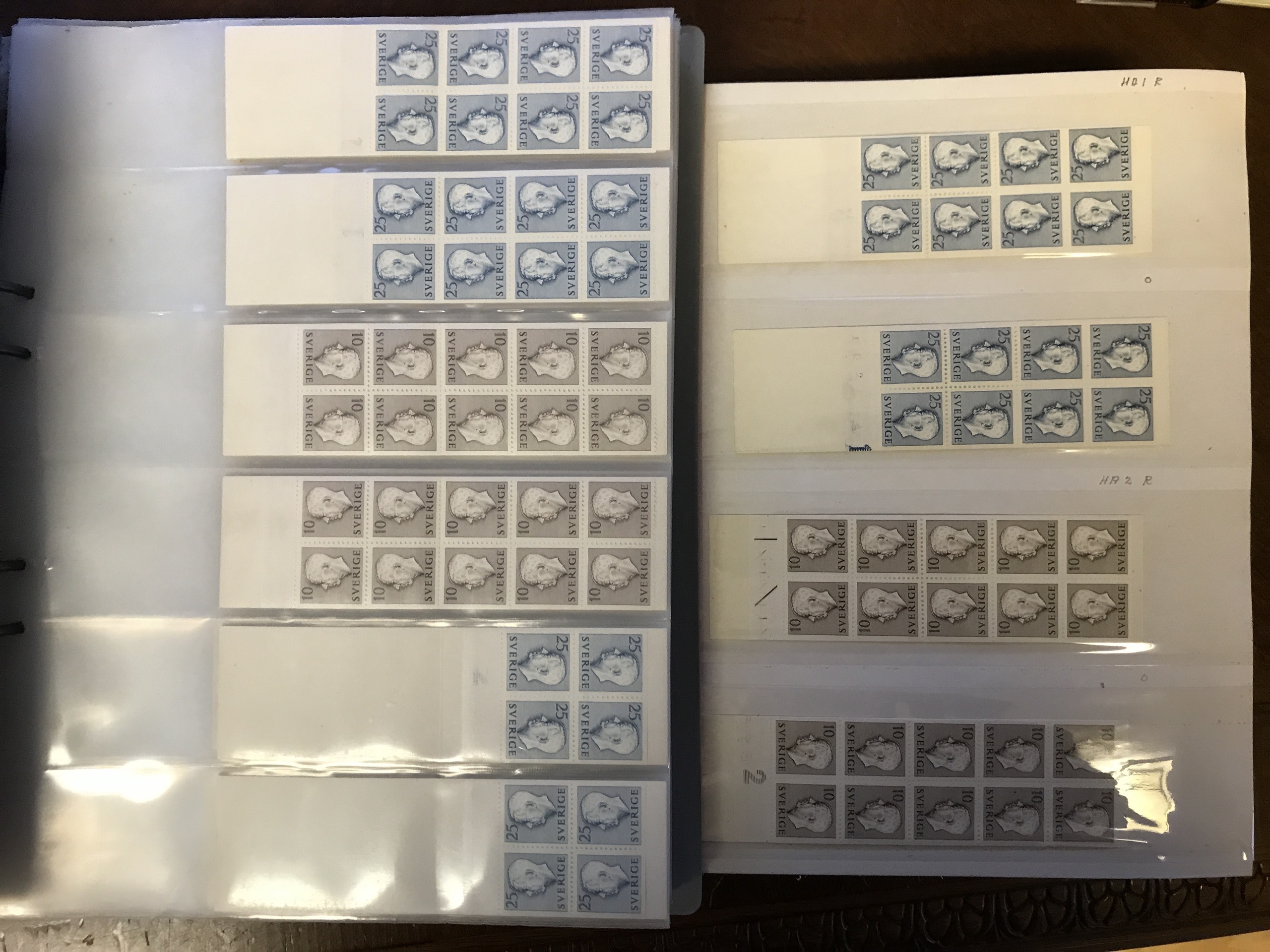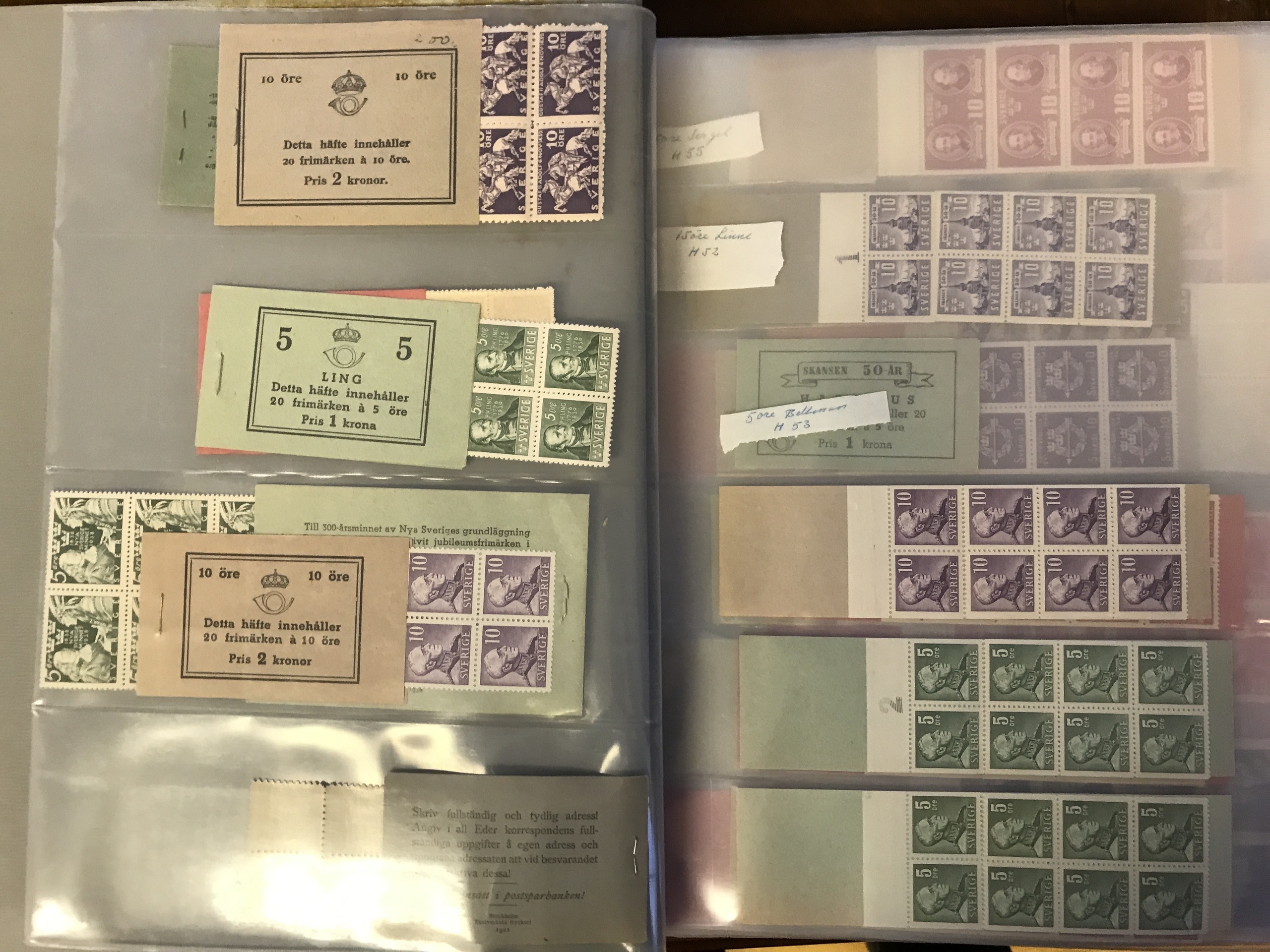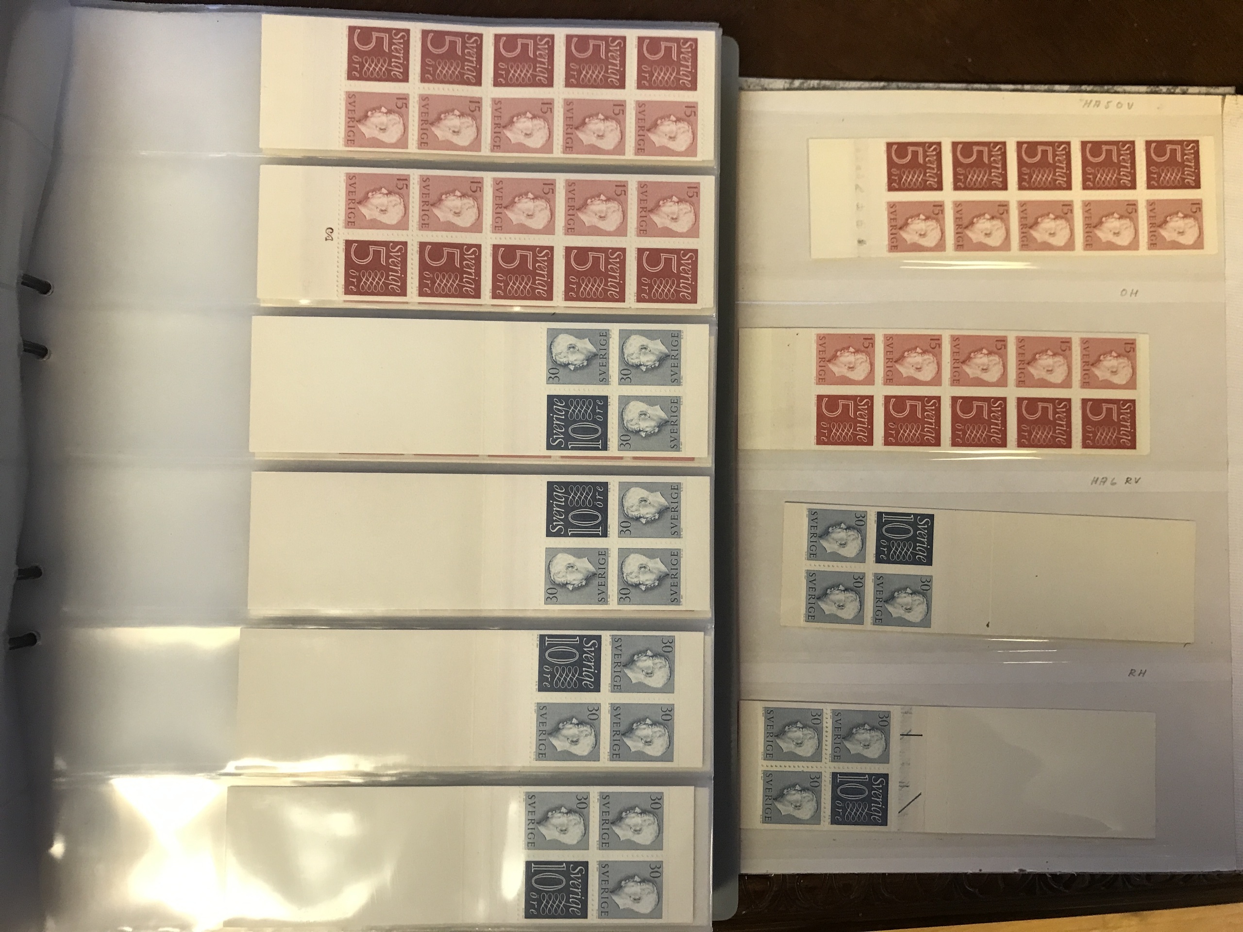 Sweden. Booklets. Three binders with booklets 1918–1980 incl. many better ones. E.g. two HA1R+=, two 4AR, two sets HA5 and 6, H211A+B and 212A+B, etc. Approx. 6 kg.