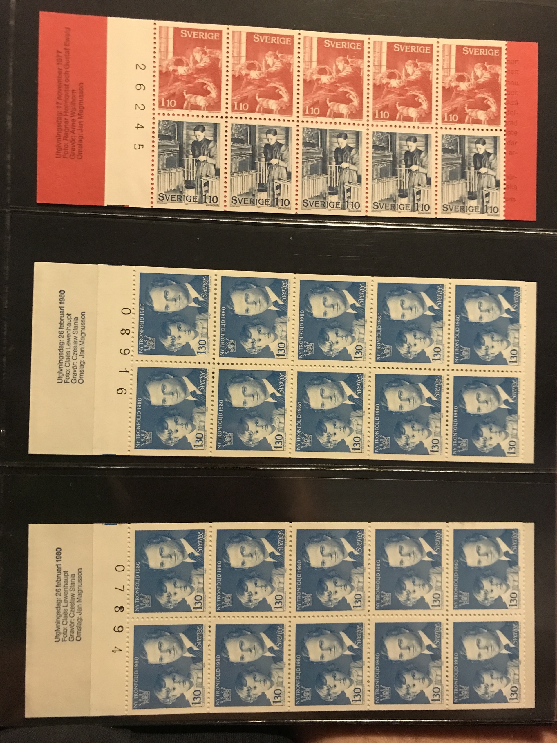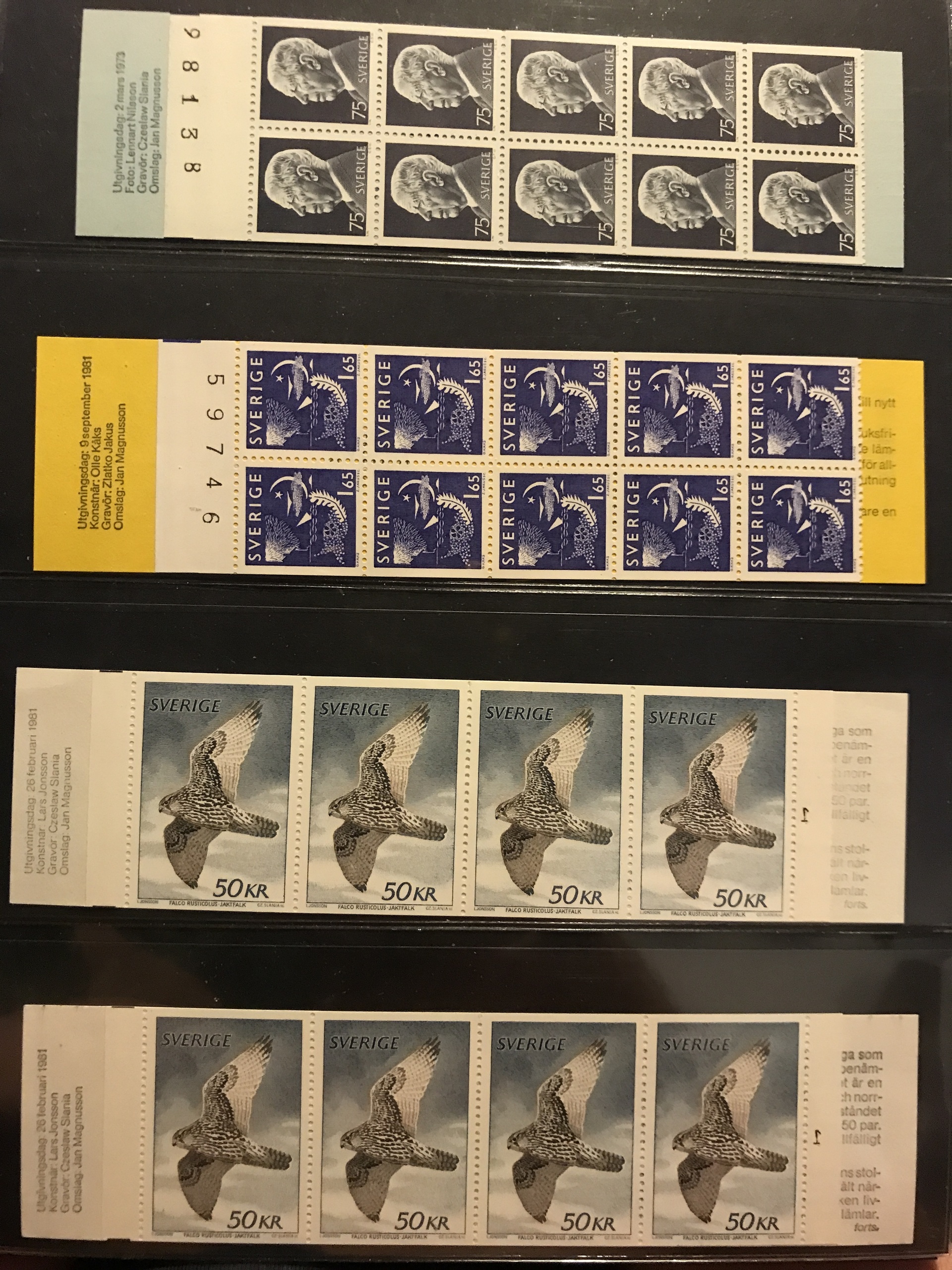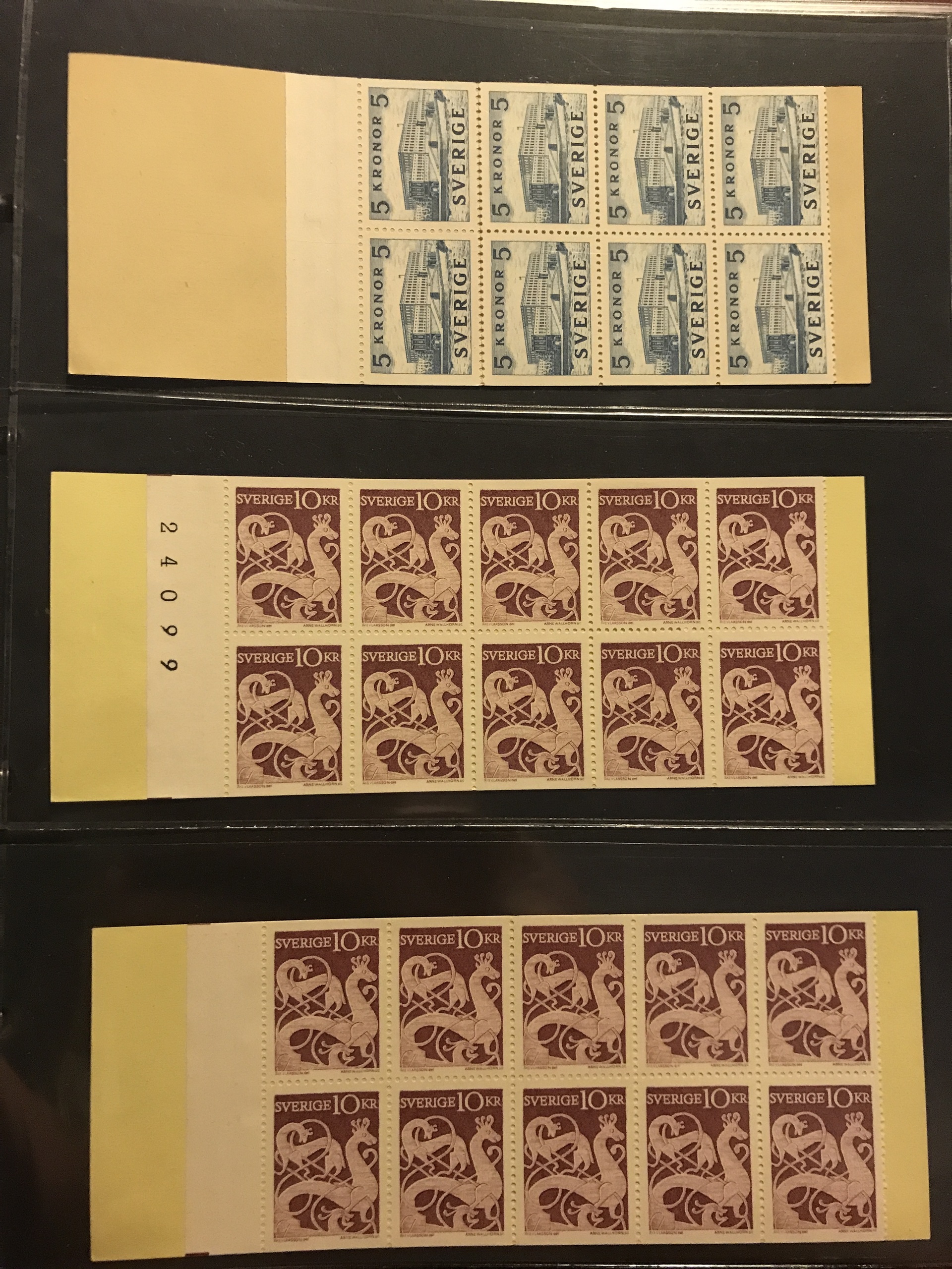 Sweden. Booklets. Seven binders with booklets mostly ca. 1960–1983 incl. e.g. two H211, 212A+B and many with margin digits and RT, etc. Face value approx. 4800. Please see a selection of scans at www.philea.se. Approx. 8 kg.