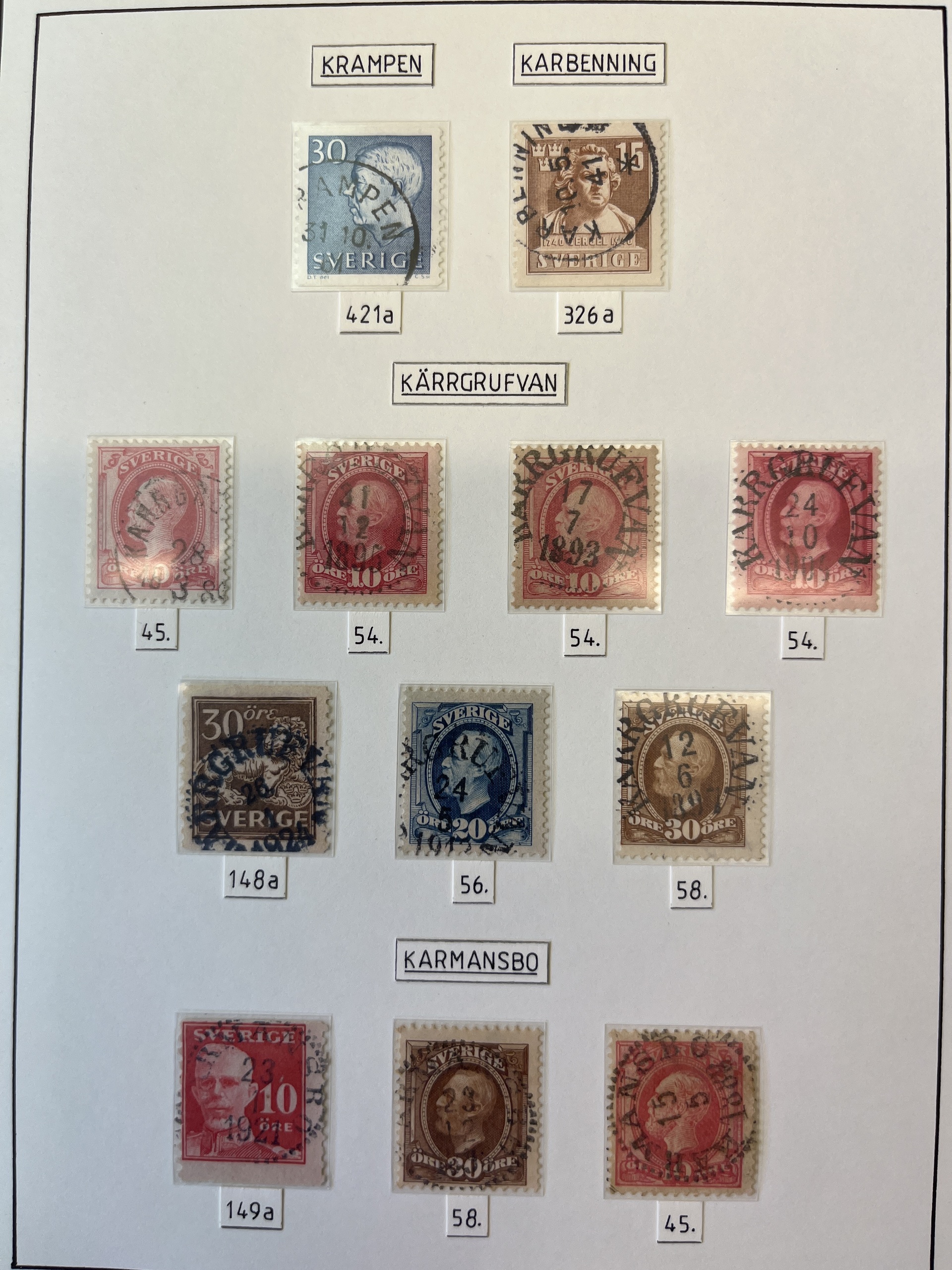 Sweden. Cancellations, collection in album. U-county. Ca. 290 stamps. Please see a selection of scans at www.philea.se. Fine quality.