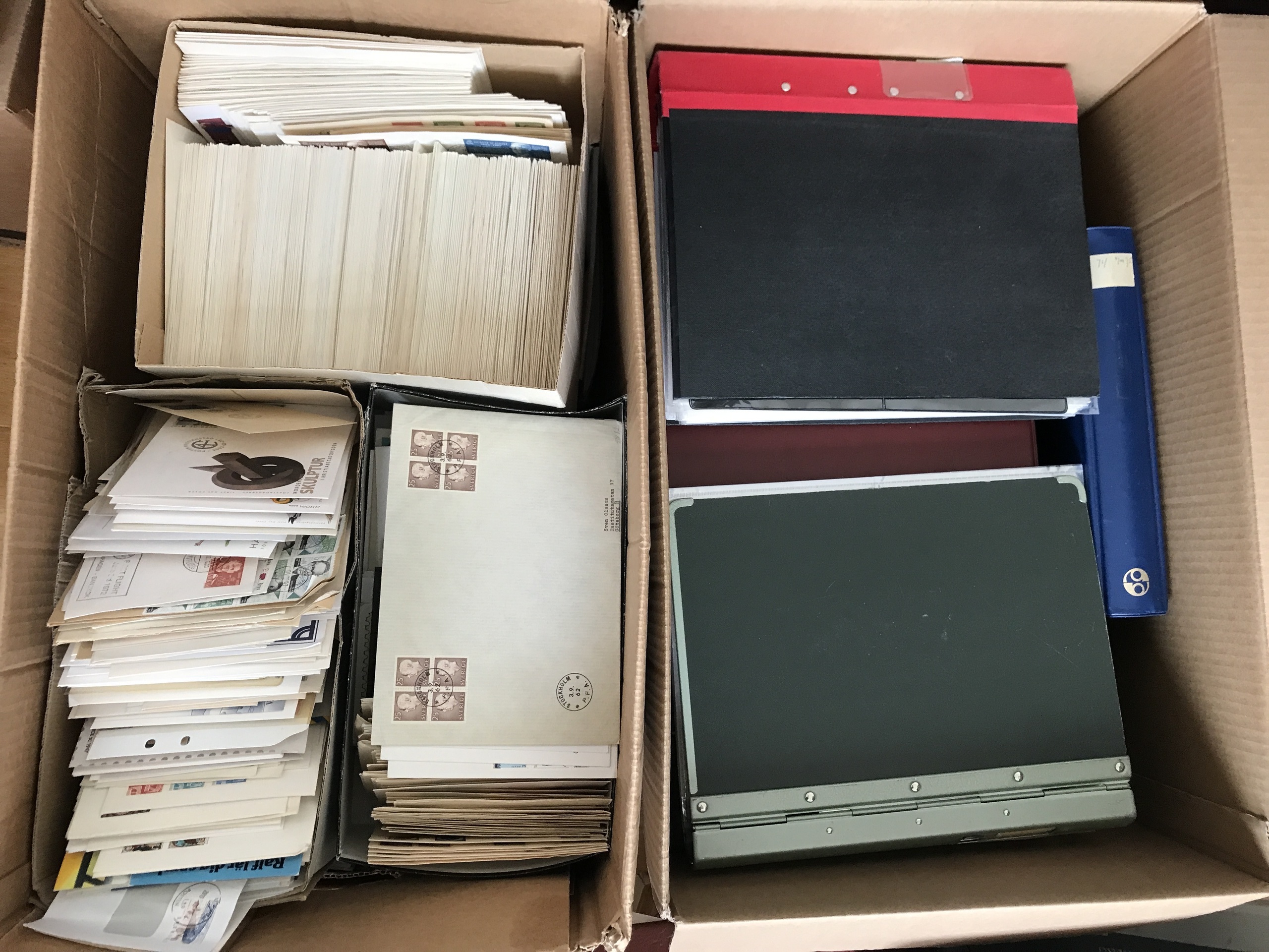 Sweden. FDCs. Two big boxes with 1000s of FDCs, Maximi cards, covers and cards, etc. incl. also some other countries. Approx. 49 kg.