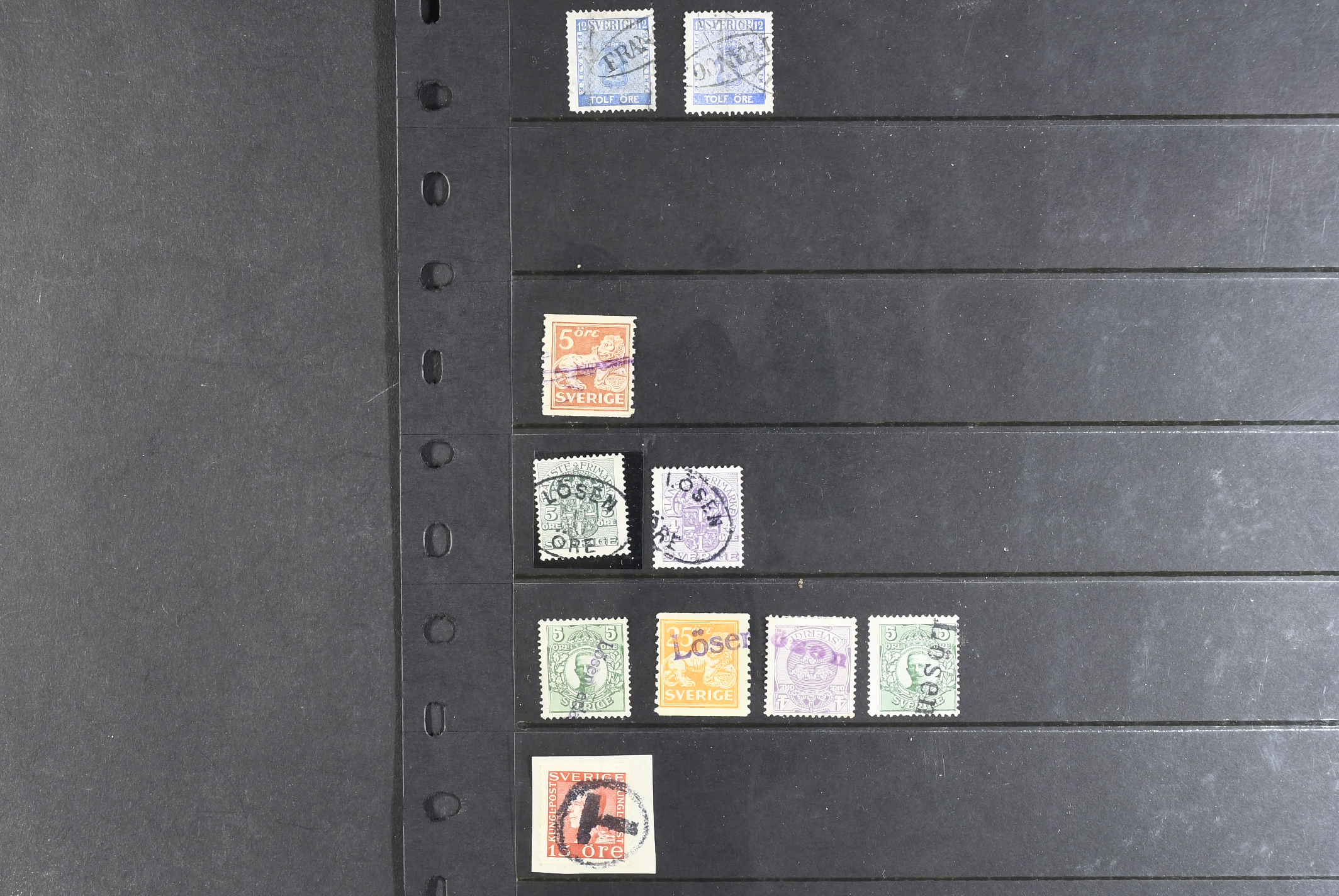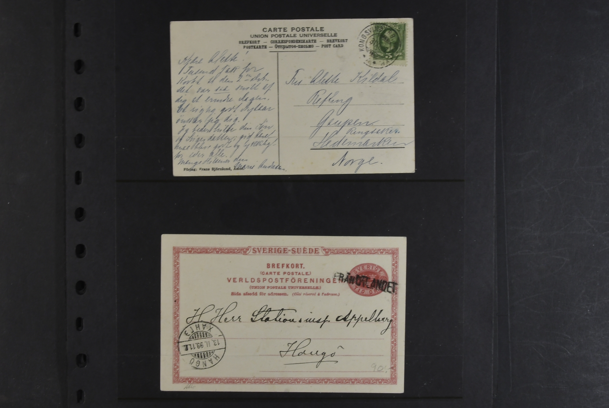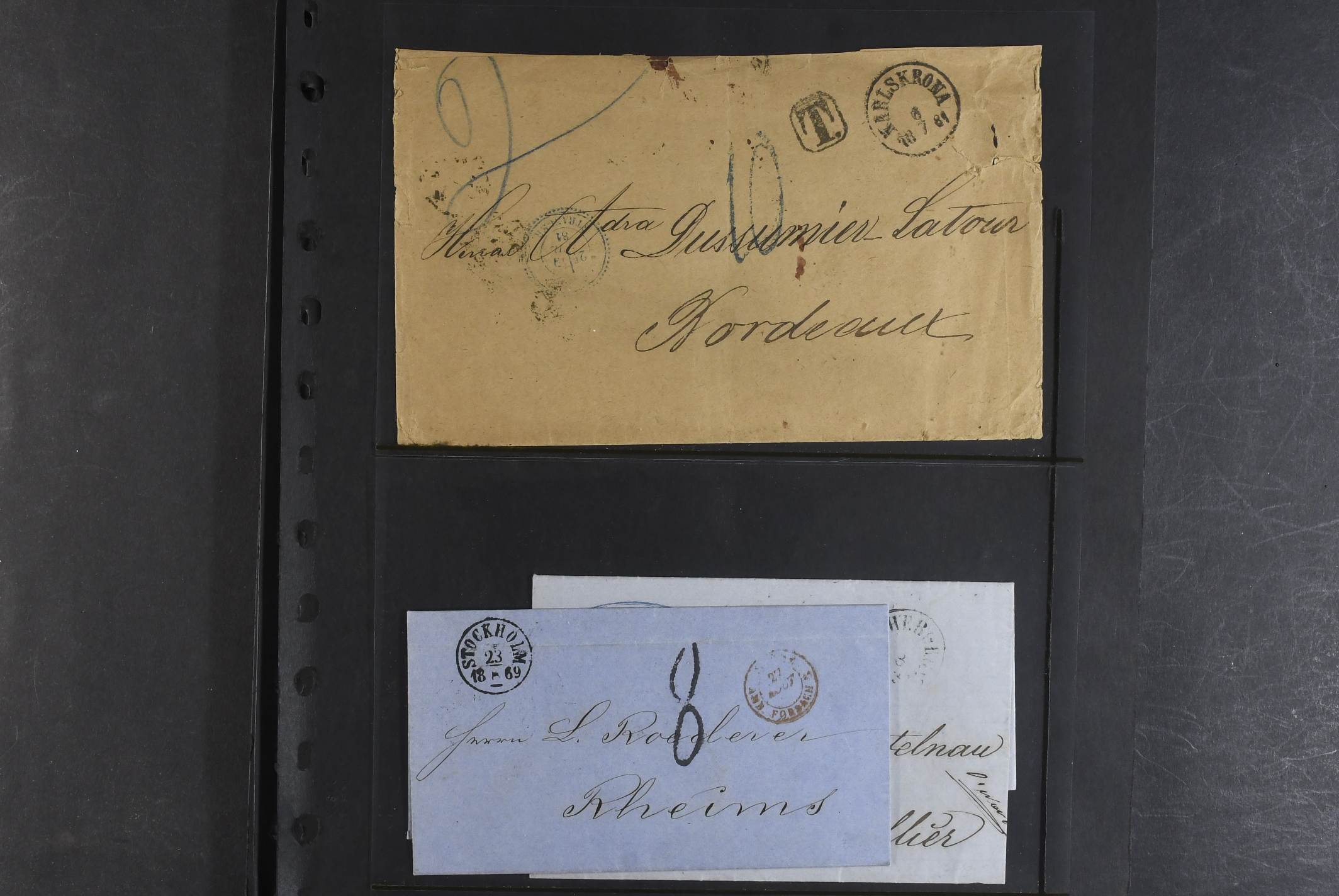Sweden. Collection covers on visir leaves. 88 stamps and 45 covers and cards, mostly foreign cancellations and postage due marks. Also a few foreign material. Somewhat mixed quality.