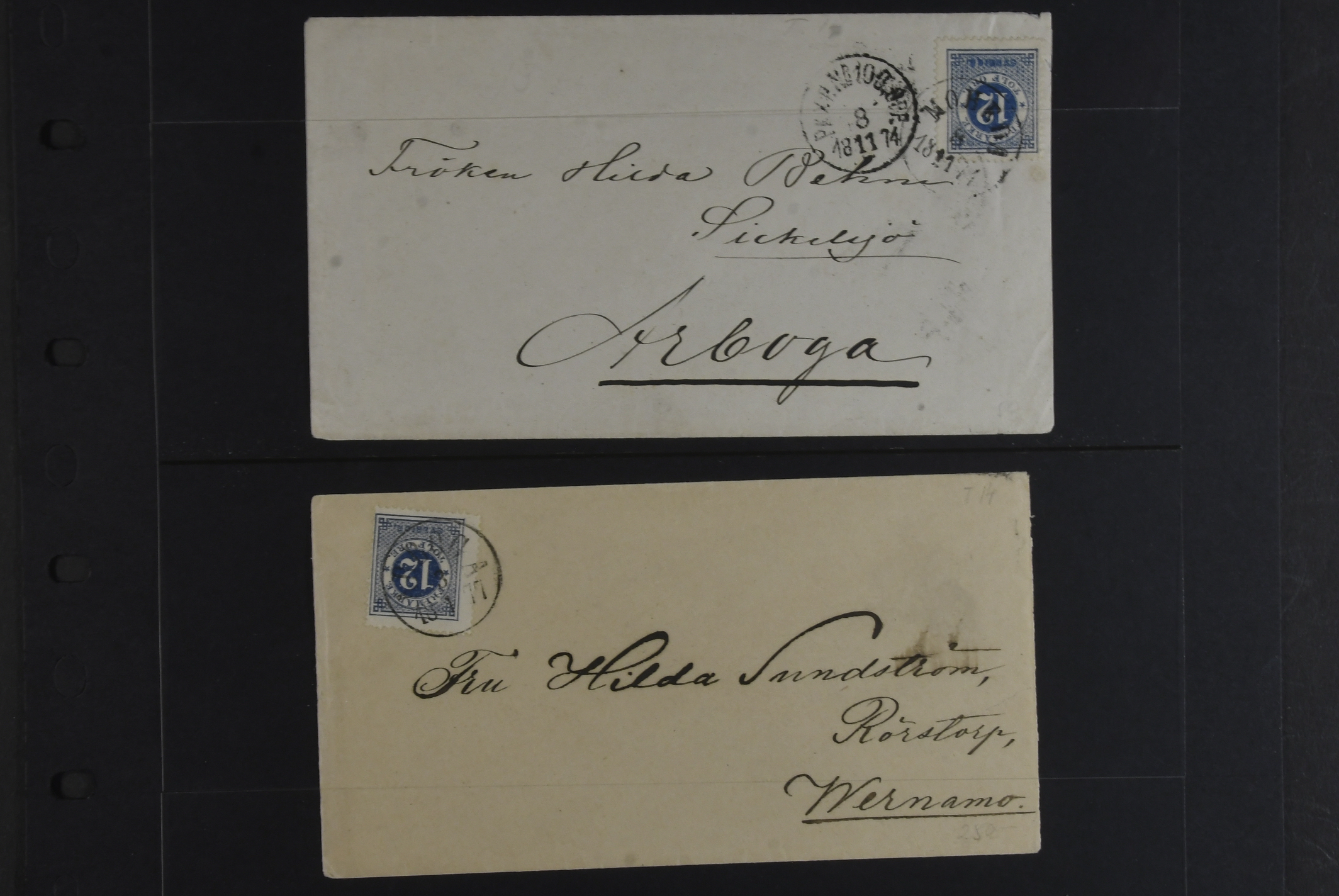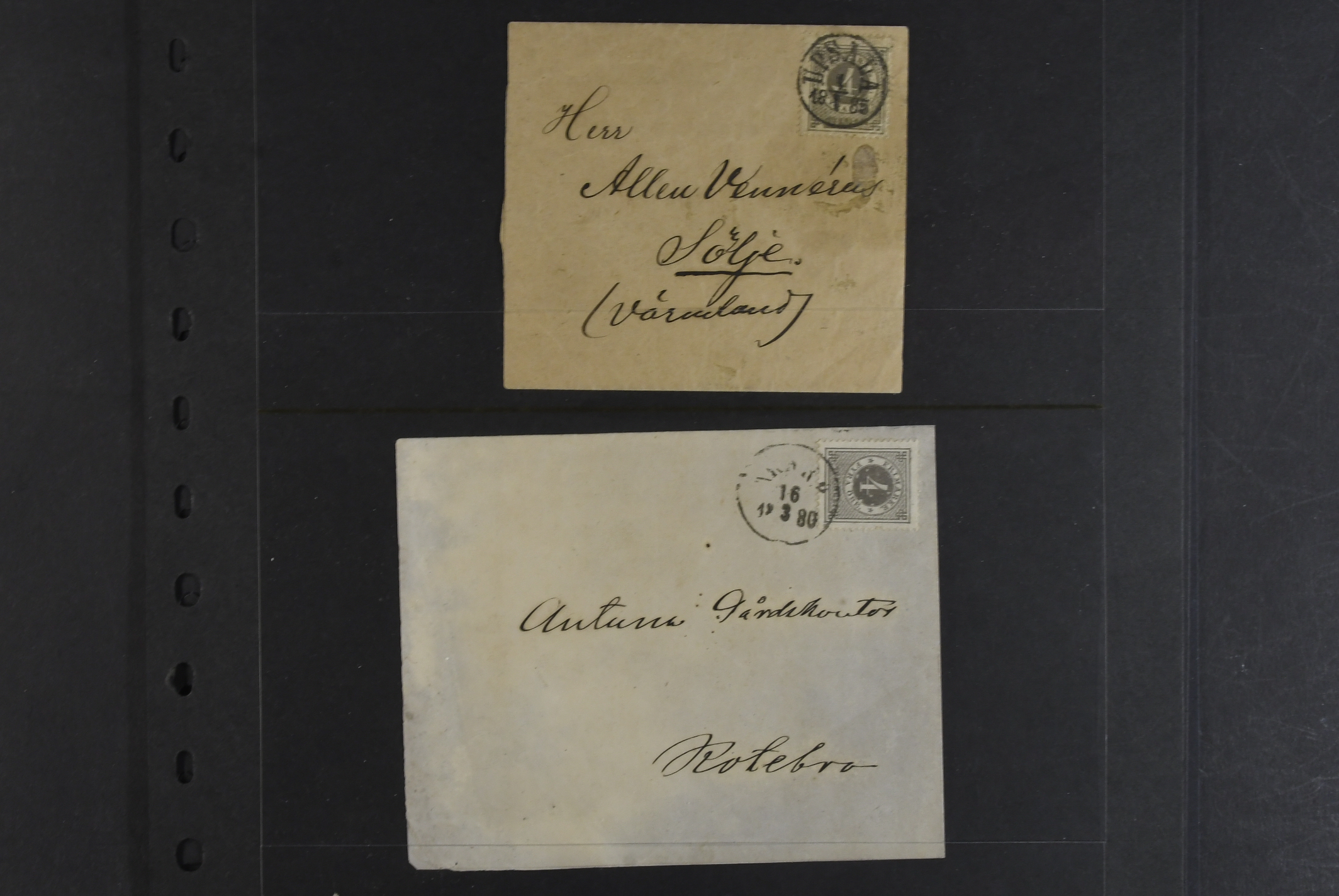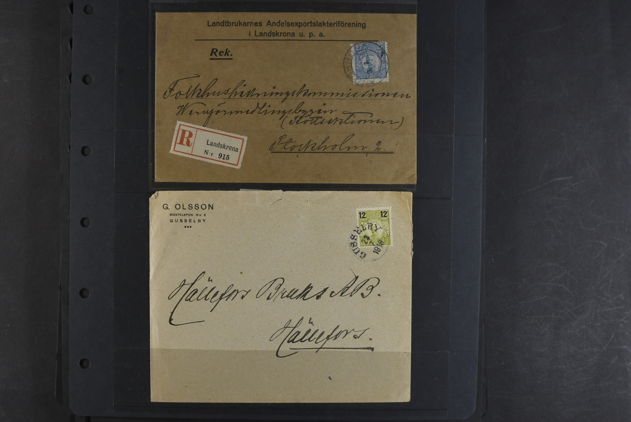 Sweden. Collection/accumulation covers on visir leaves. Much Circle type most 12 öre, plus some Gustav V in Medallion. (88)