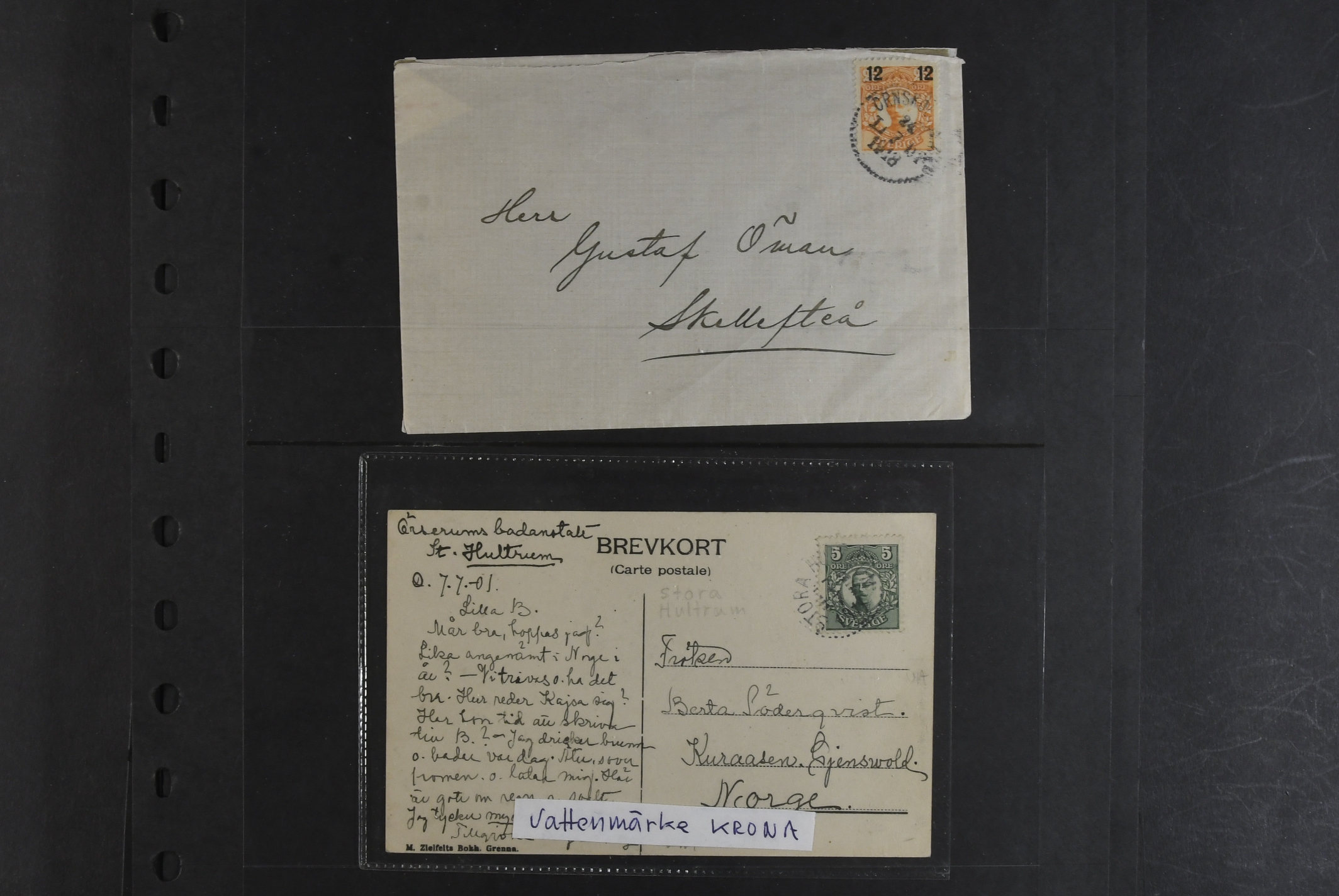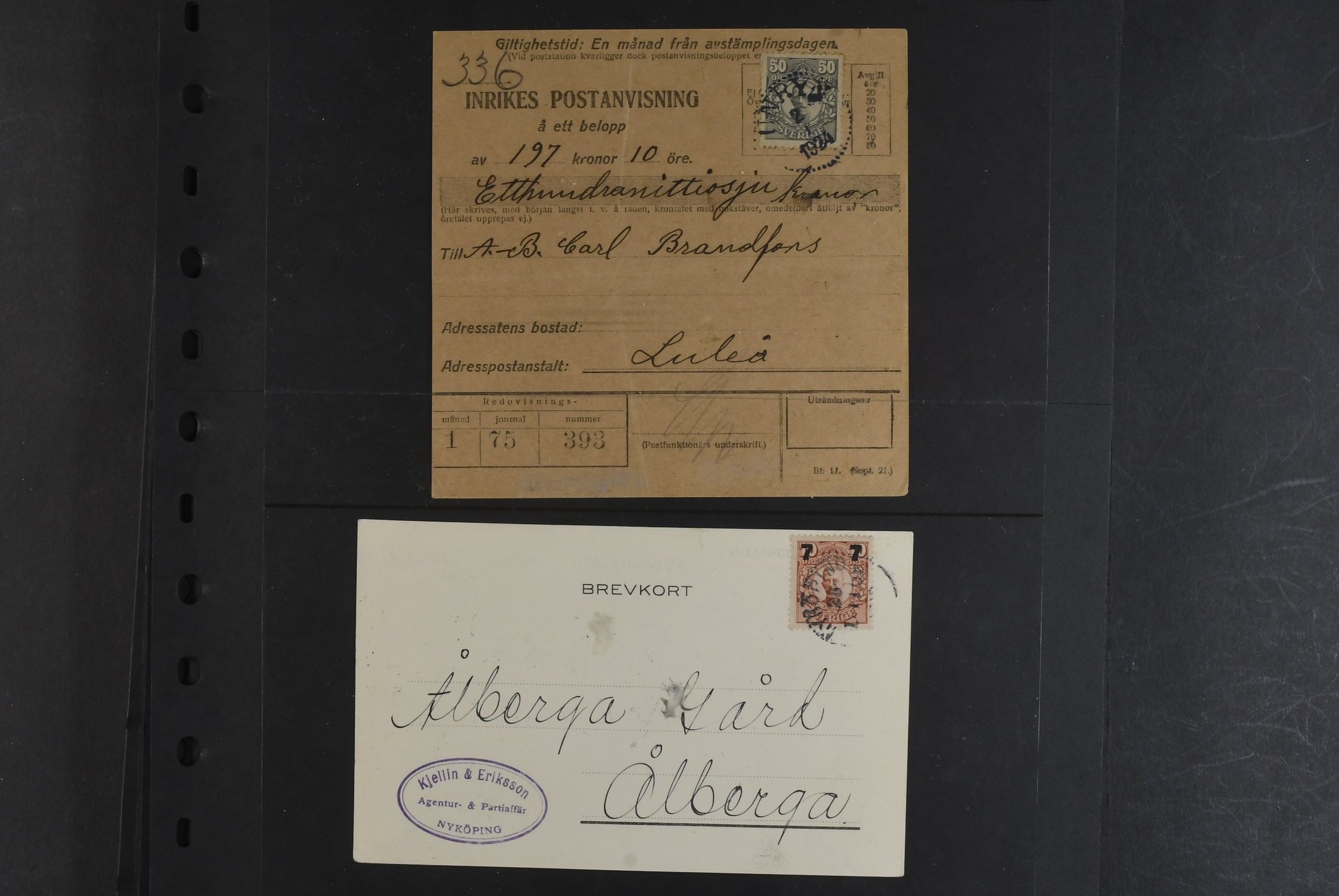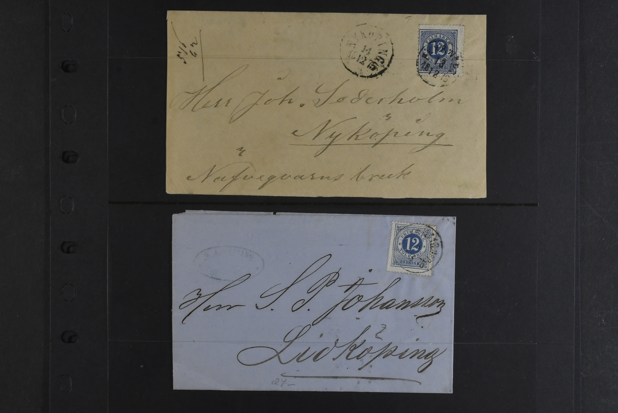 Sweden. Collection/accumulation covers on visir leaves. Much Circle type most 12 öre, plus some Gustav V in Medallion. (88)