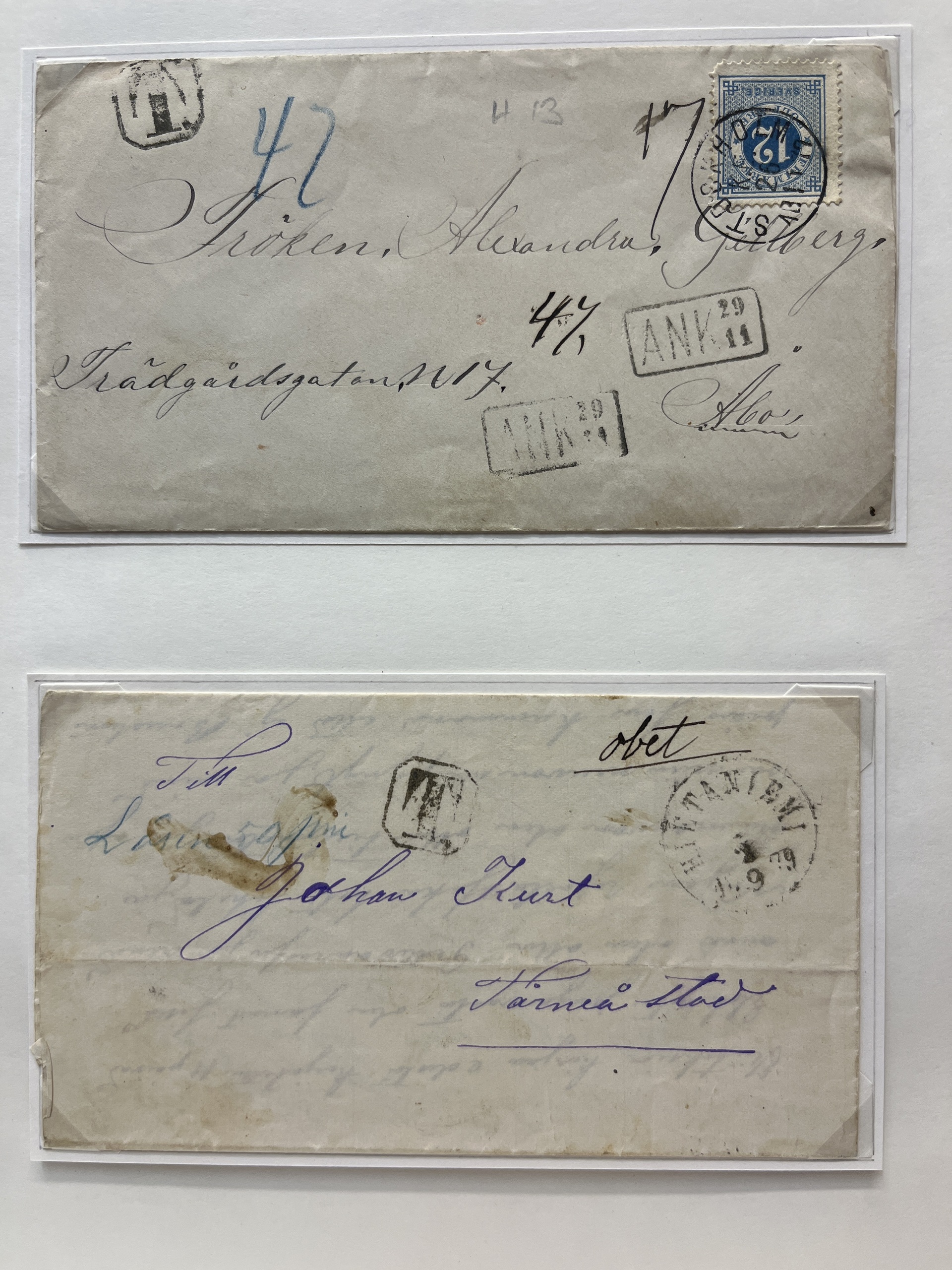 Sweden. Lot covers on leaves with e.g. Circle type incl some stamps and postage due. The entire lot is presented at www.philea.se.
