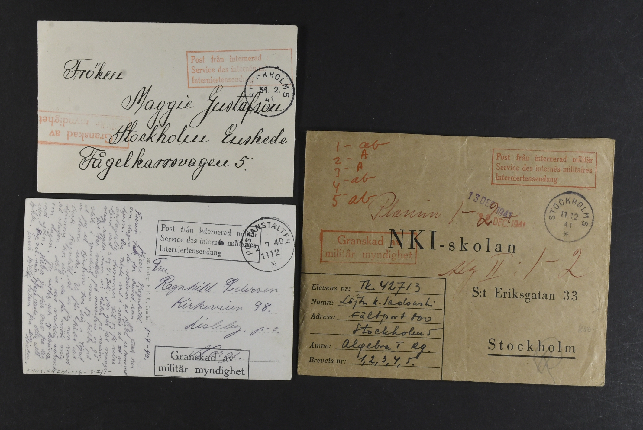 Sweden. Lot covers INTERNMENT MAIL. Five covers and cards with various marks, 1940–1945. The entire lot is presented at www.philea.se. (5)