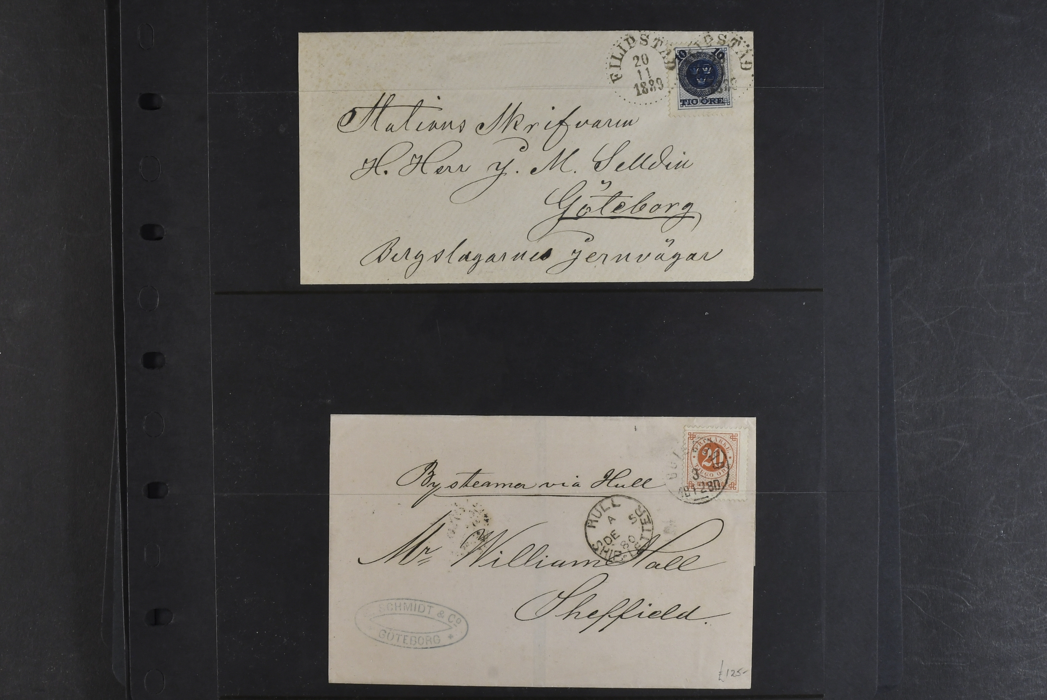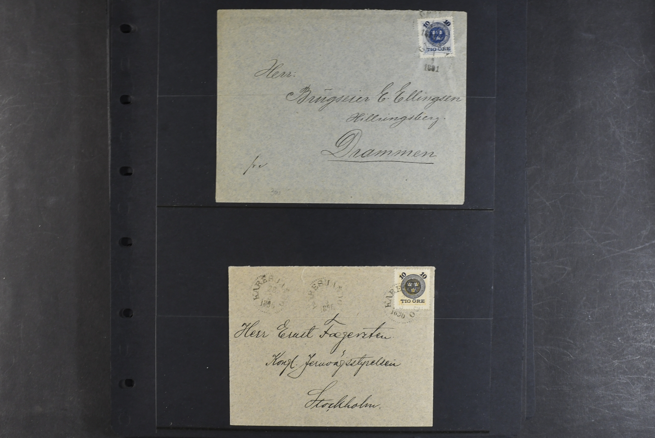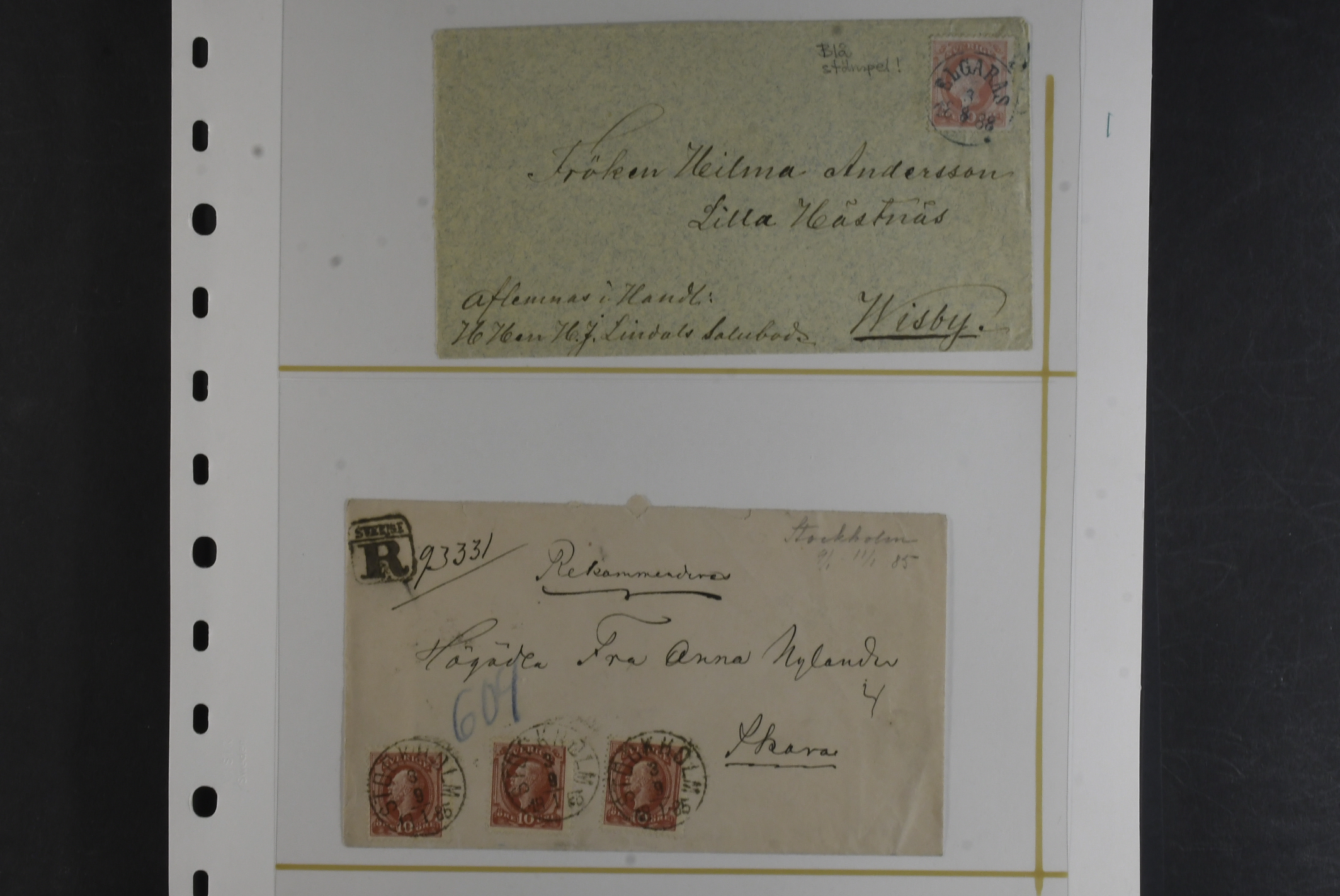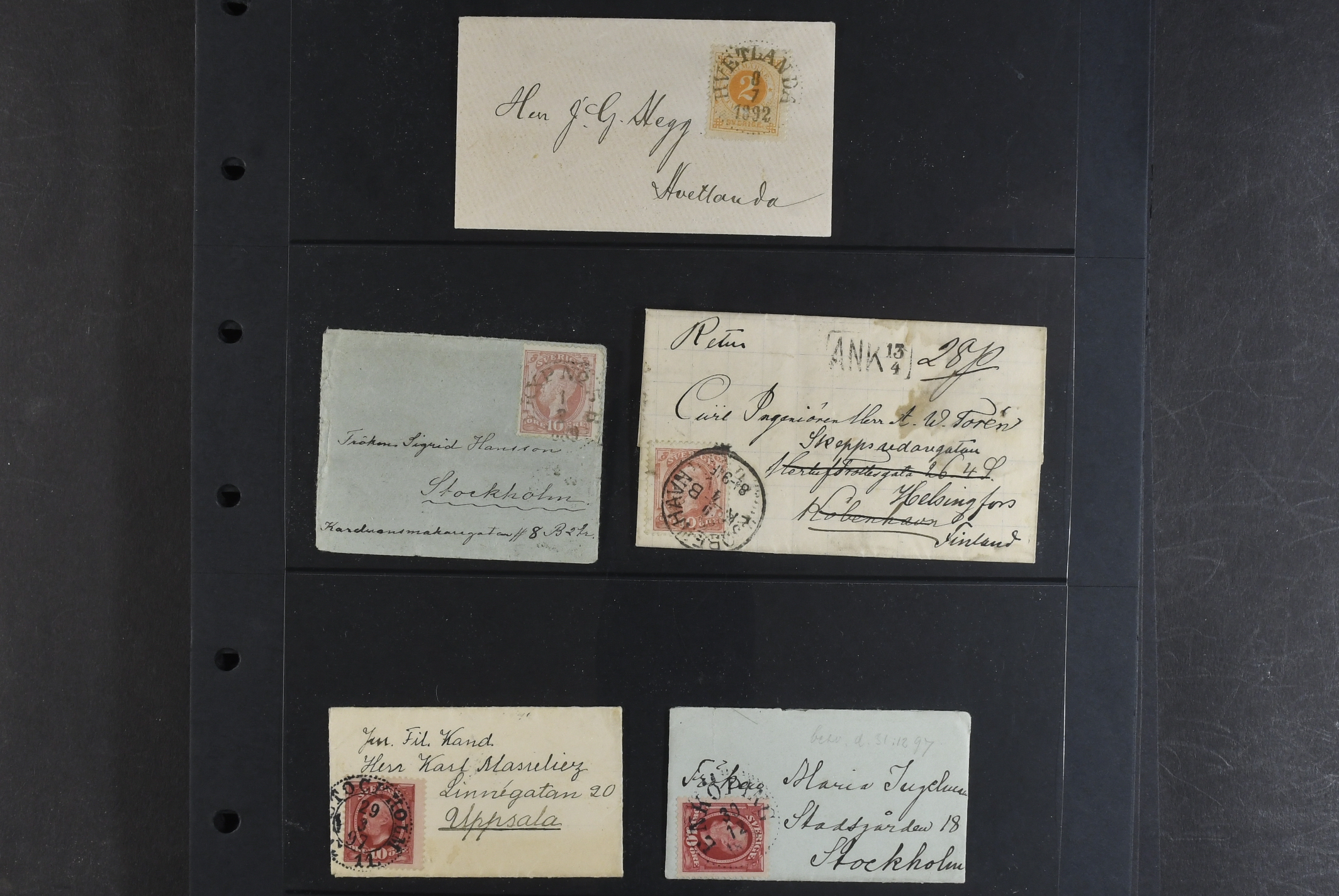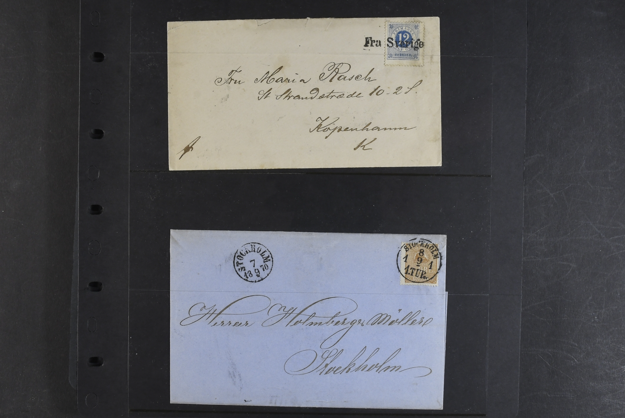 Sweden. Collection covers 1813–1914 on visir leaves. A few prephilatelic incl. two foreign, two Circle type covers with foreign marks, some miniature covers, etc. The entire lot is presented at www.philea.se. Somewhat mixed quality. (26)