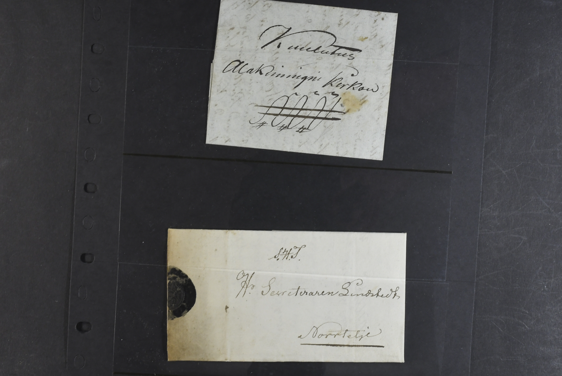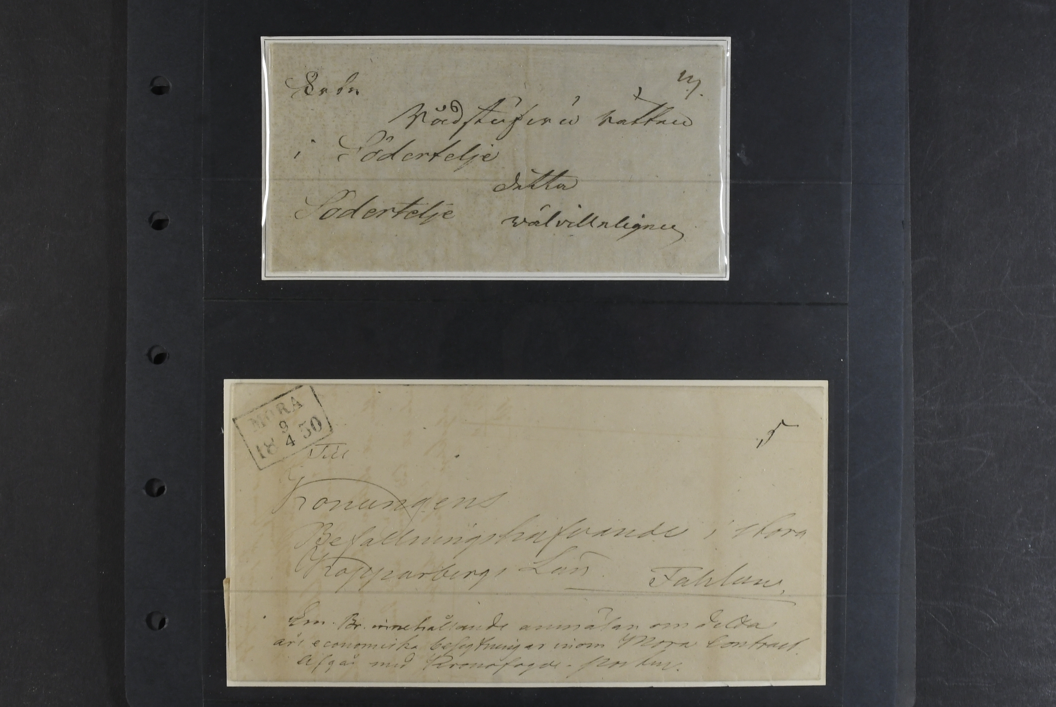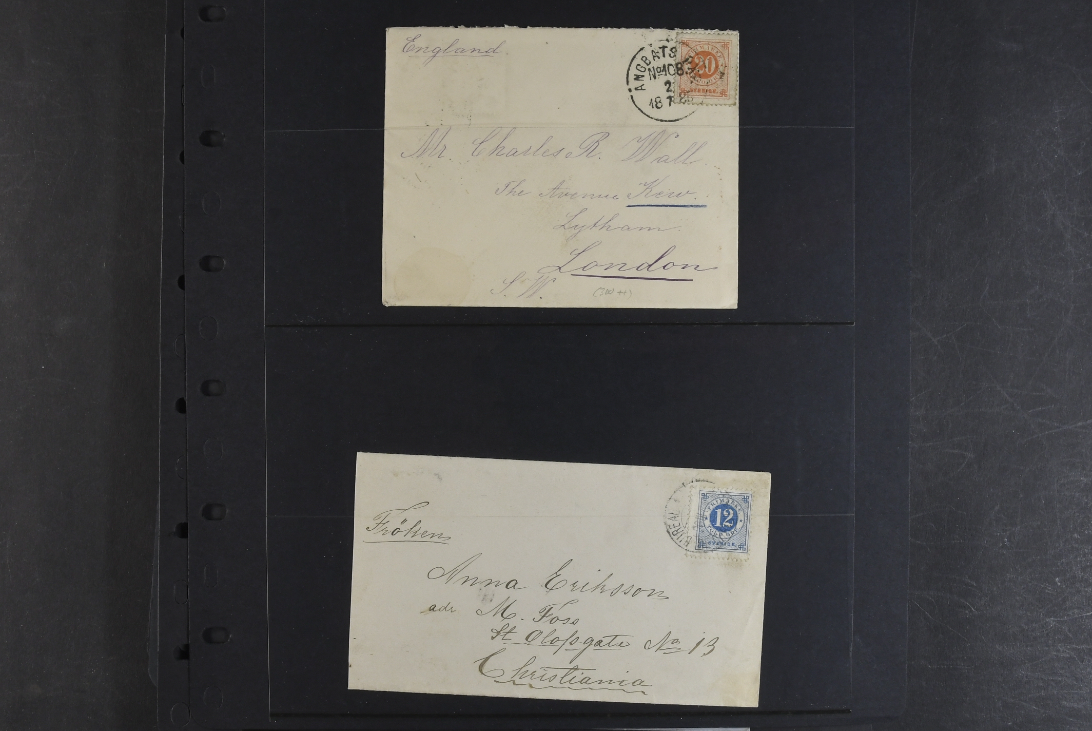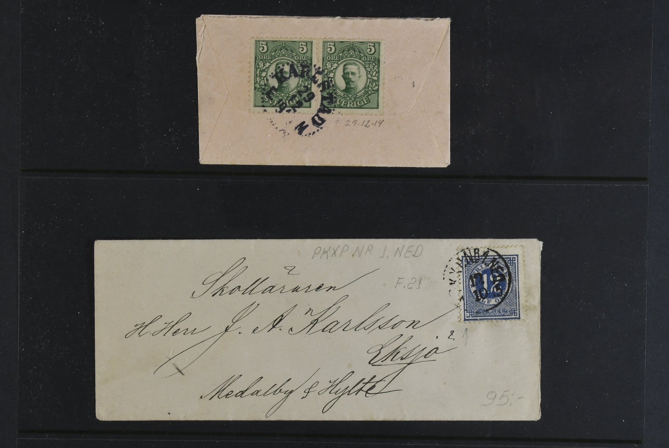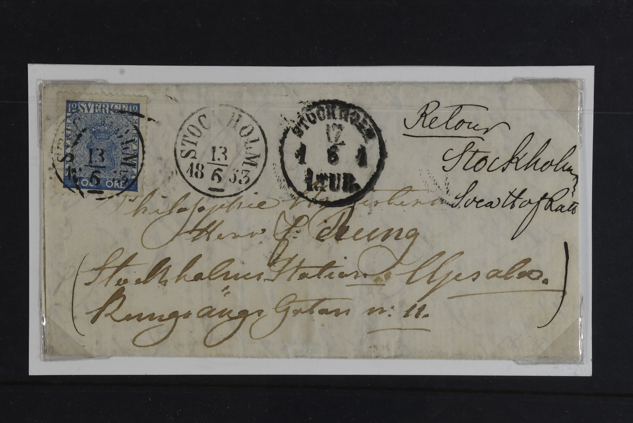 Sweden. Collection covers 1813–1914 on visir leaves. A few prephilatelic incl. two foreign, two Circle type covers with foreign marks, some miniature covers, etc. The entire lot is presented at www.philea.se. Somewhat mixed quality. (26)