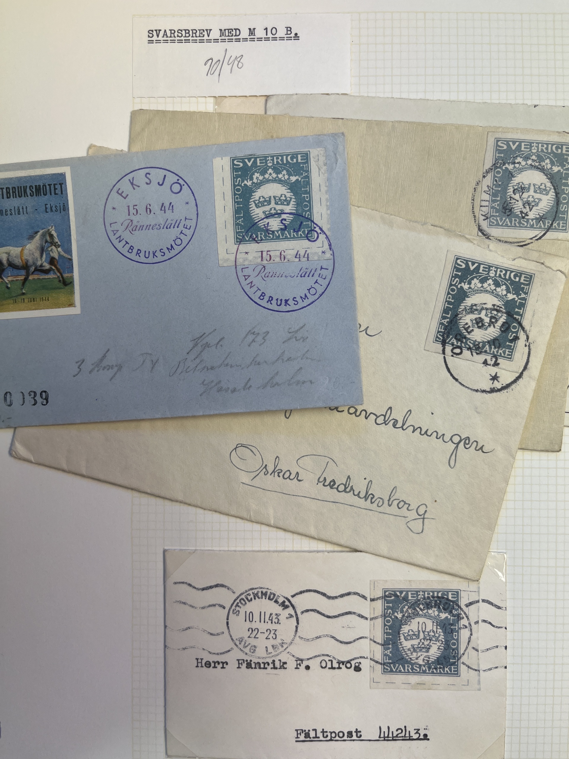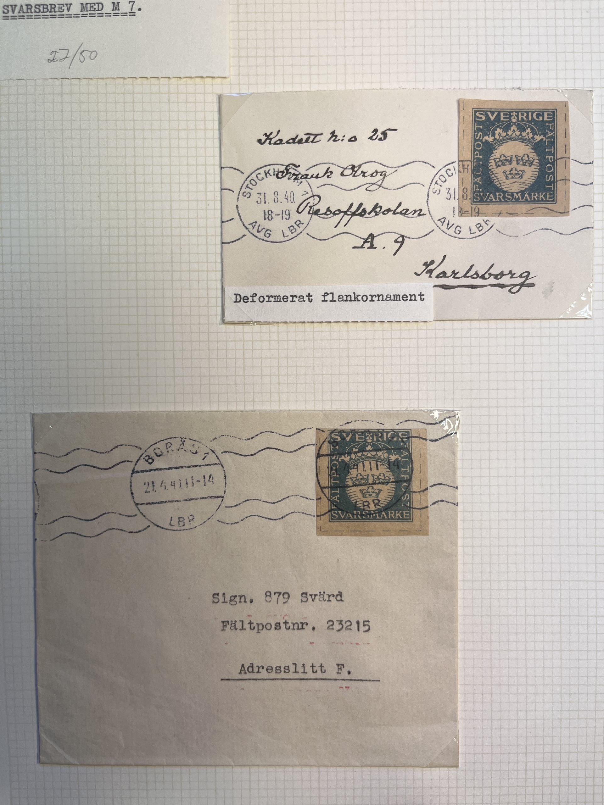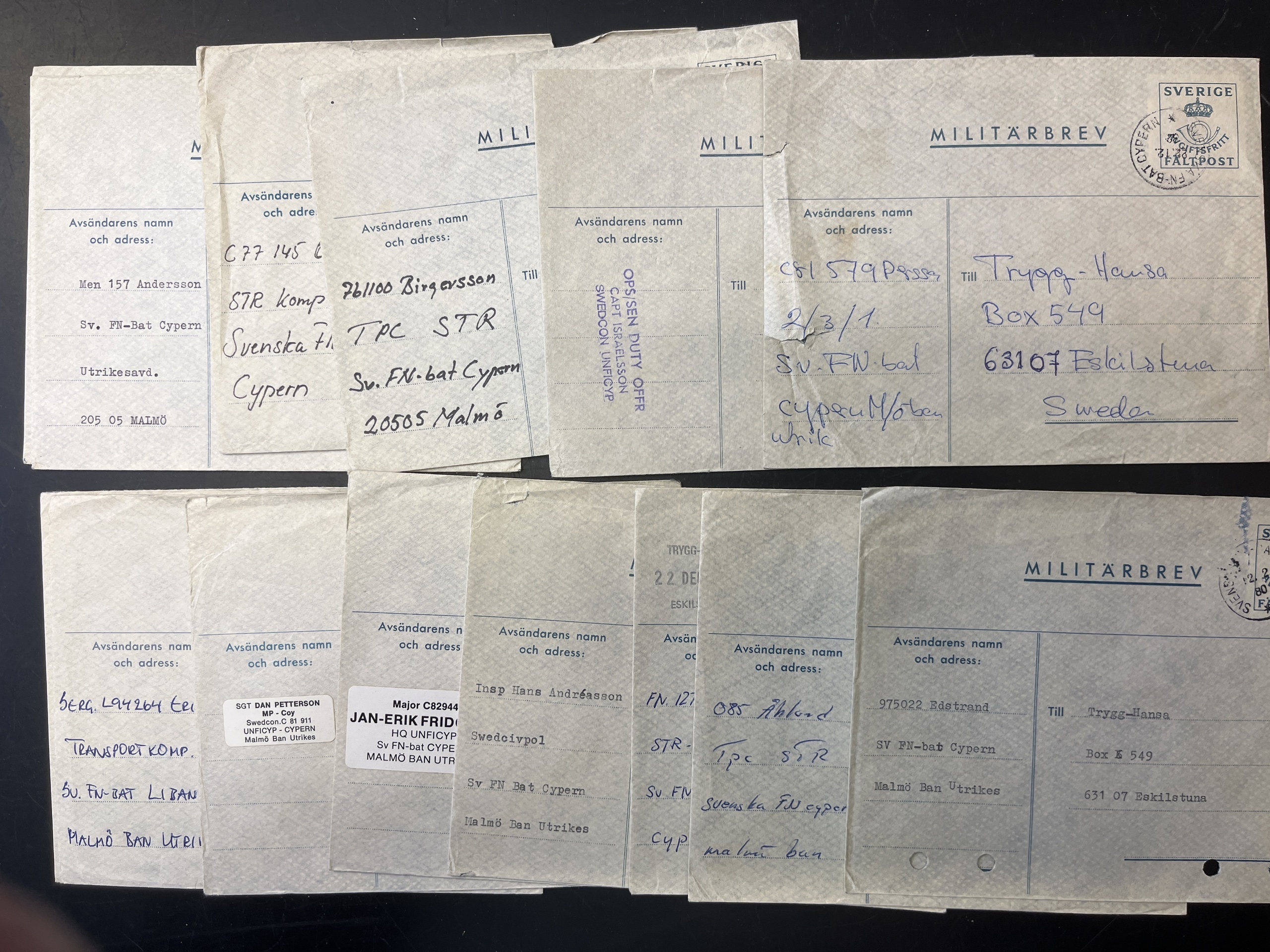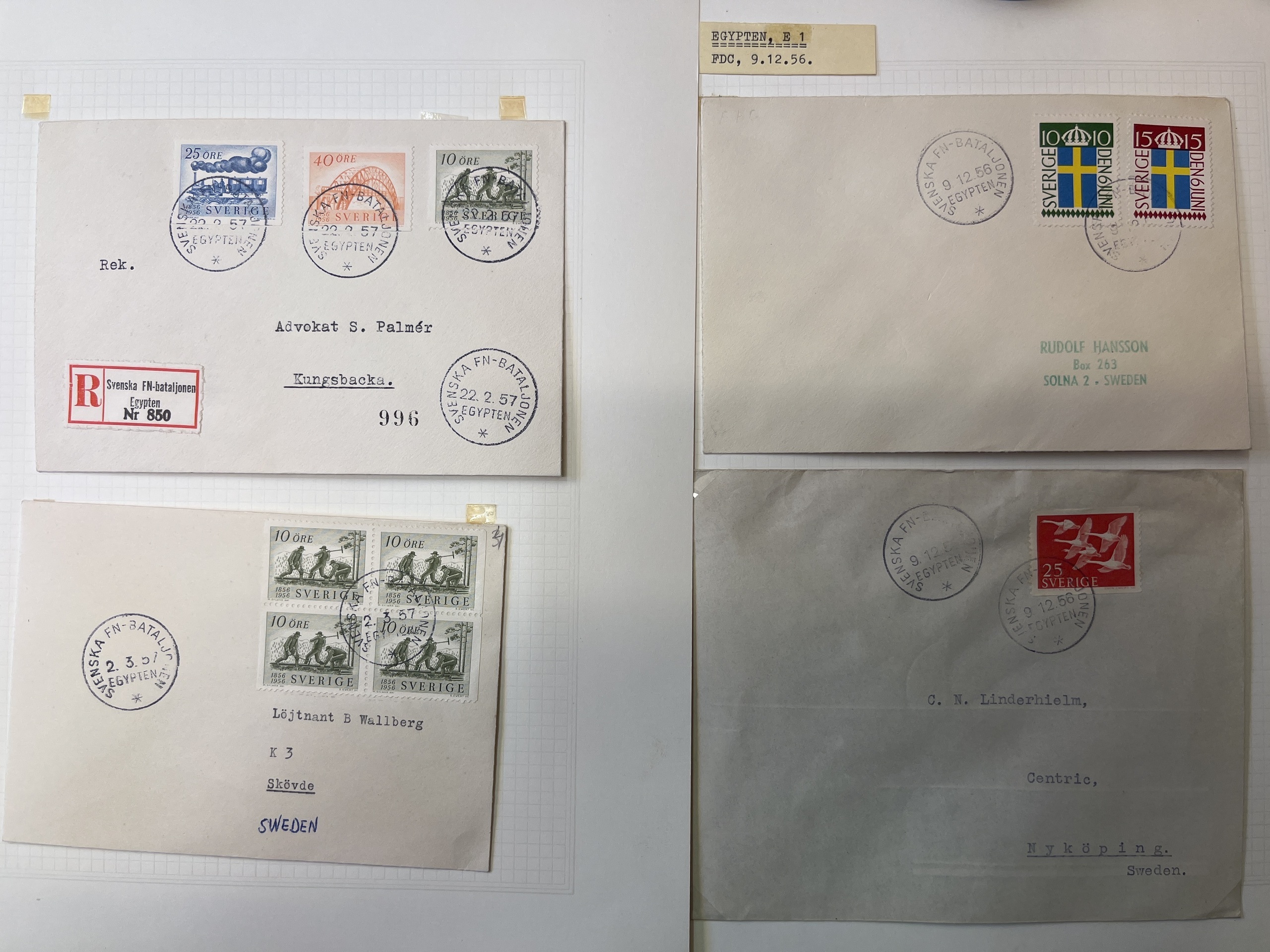 Sweden. Military covers, collection/accumulation most M2–10 in removal box many from/to UN, plus 'Militärpostal Tidskrift' Nos. 20–43, some two of each. Please see a selection of scans at www.philea.se. Approx. 19 kg.