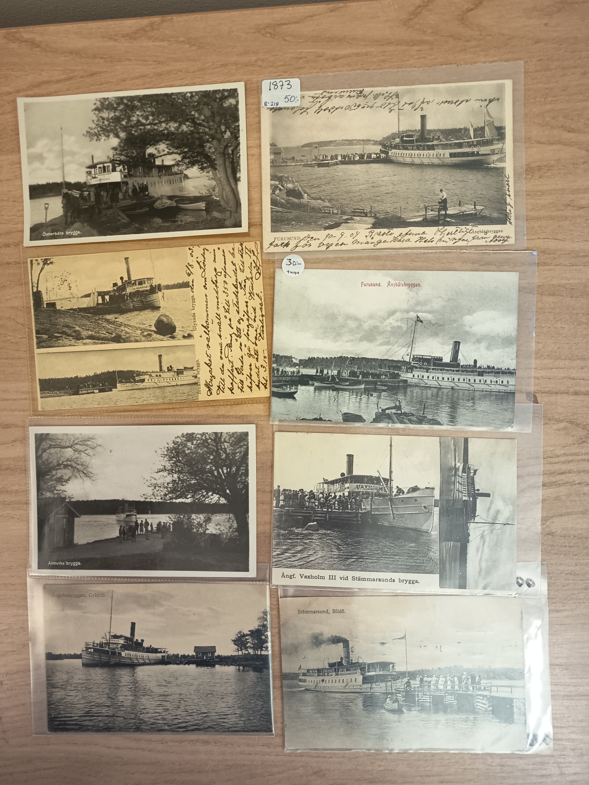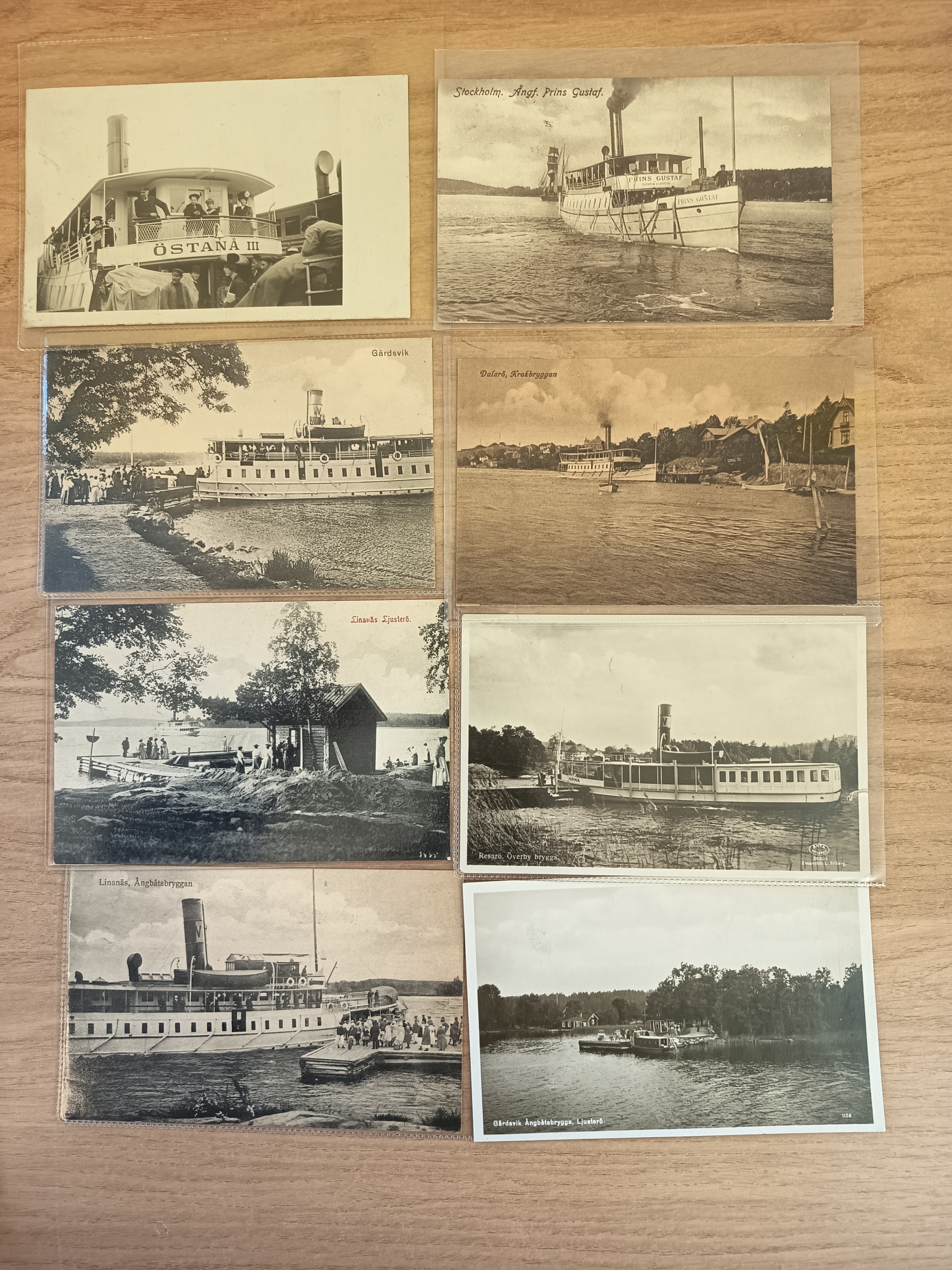 Sweden. Picture postcards. STEAMBOATS and PIERS in Stockholm Archipelago. Incl better cards all in old size. Please see a selection of scans at www.philea.se. Good quality. (52)