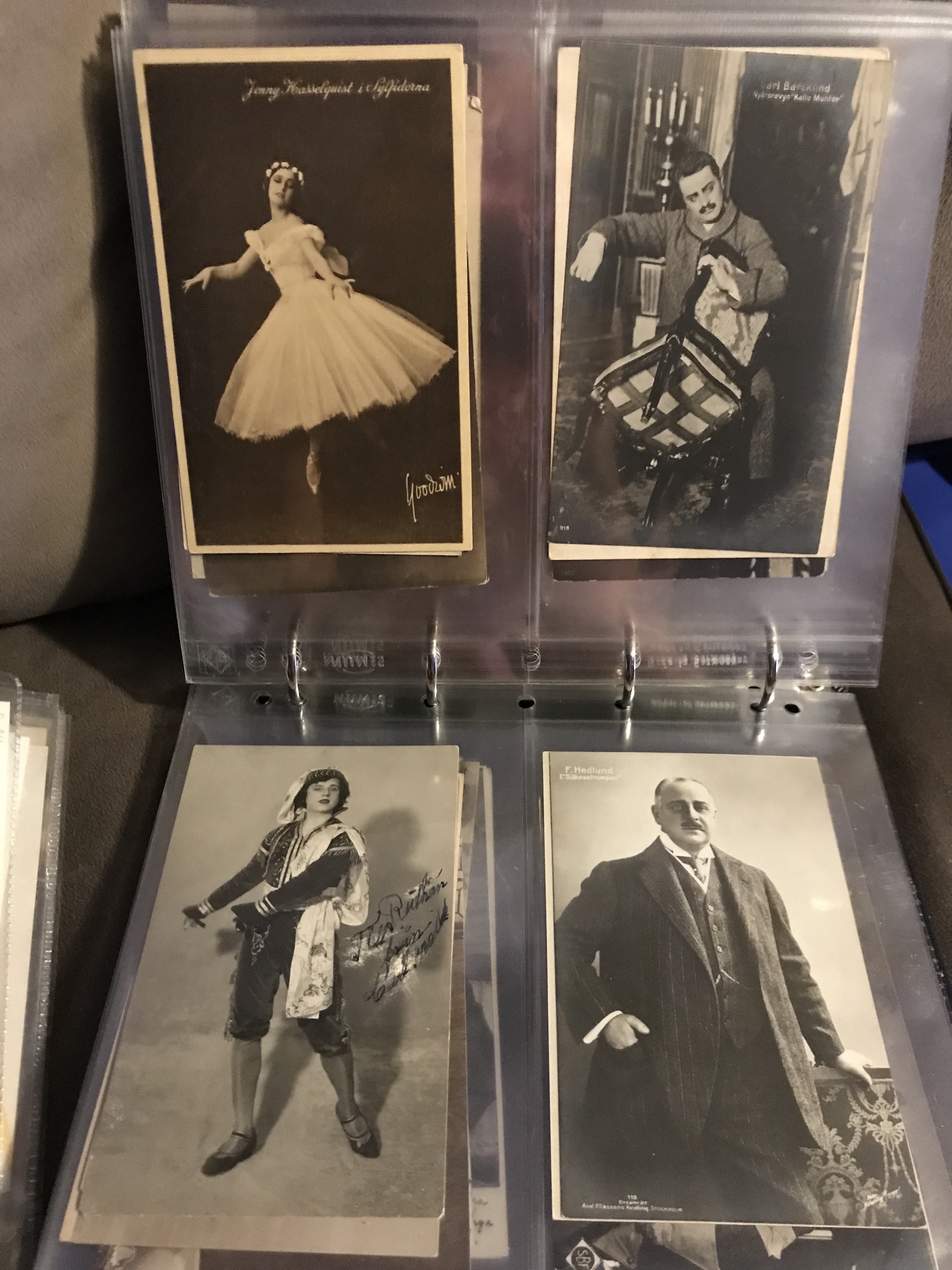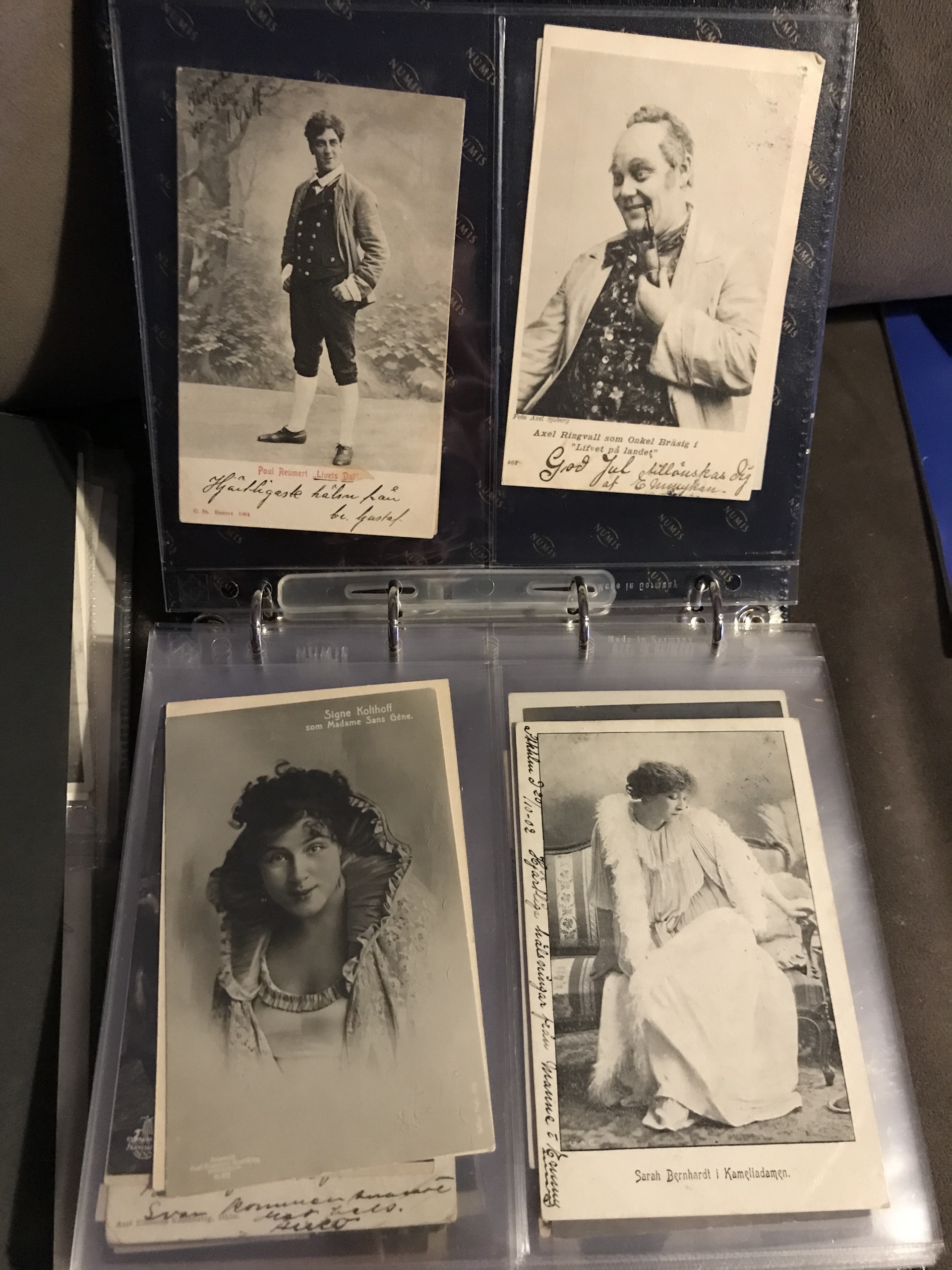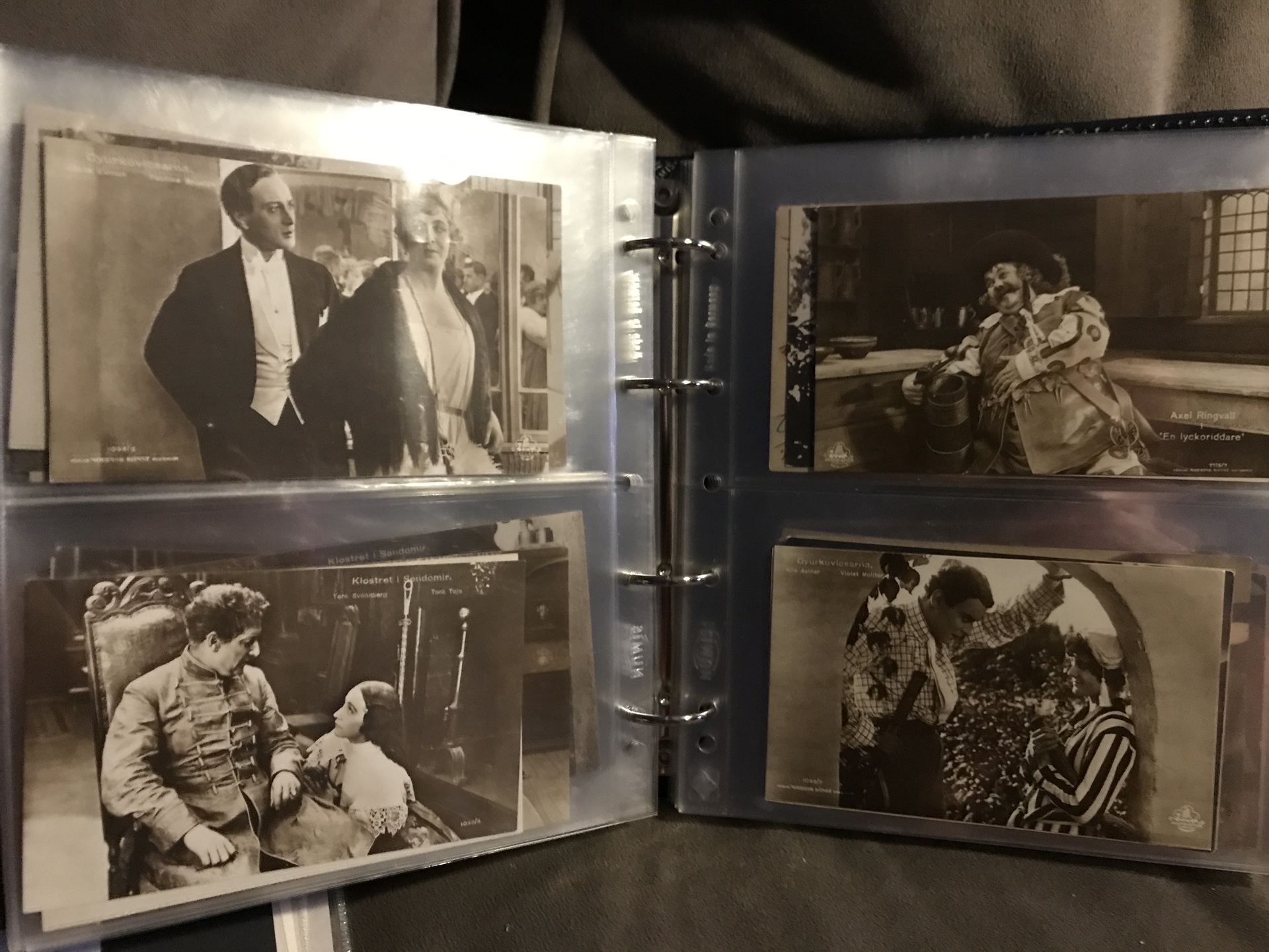 Sweden. Picture postcards. Collection with about 125 Actors and Actresses old small size and binder with ca. 220 Carl Larsson and his works, large part modern. Please see a selection of scans at www.philea.se.