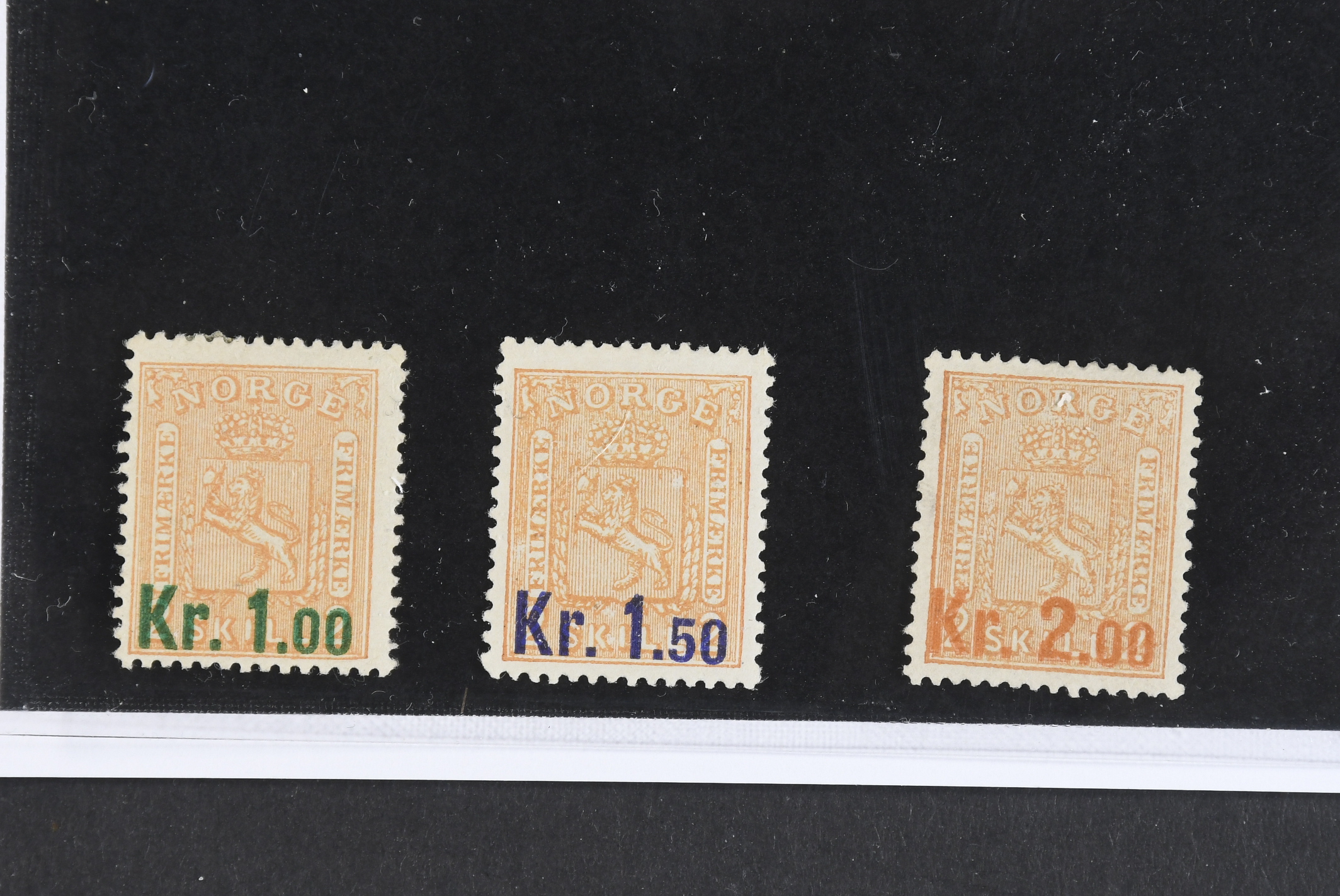 Norway. Facit 87–89 ★, 1906 Surcharge on Coat-of-Arms SET (3). SEK 1750