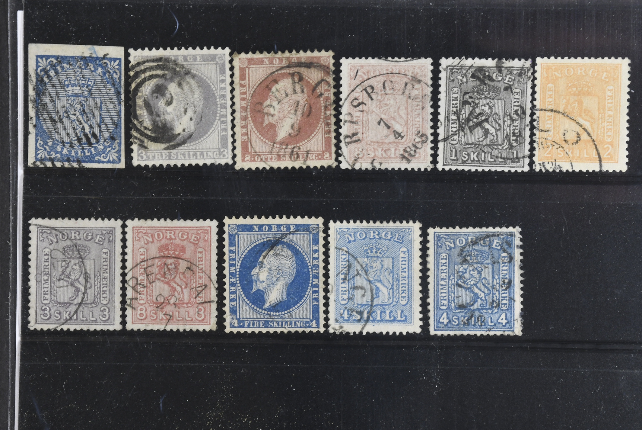 Norway. Used 1855–1868. All different, e.g. F 1, 3, 5, 9, 11–13, 15. Mostly good quality. F SEK 6110 (11)