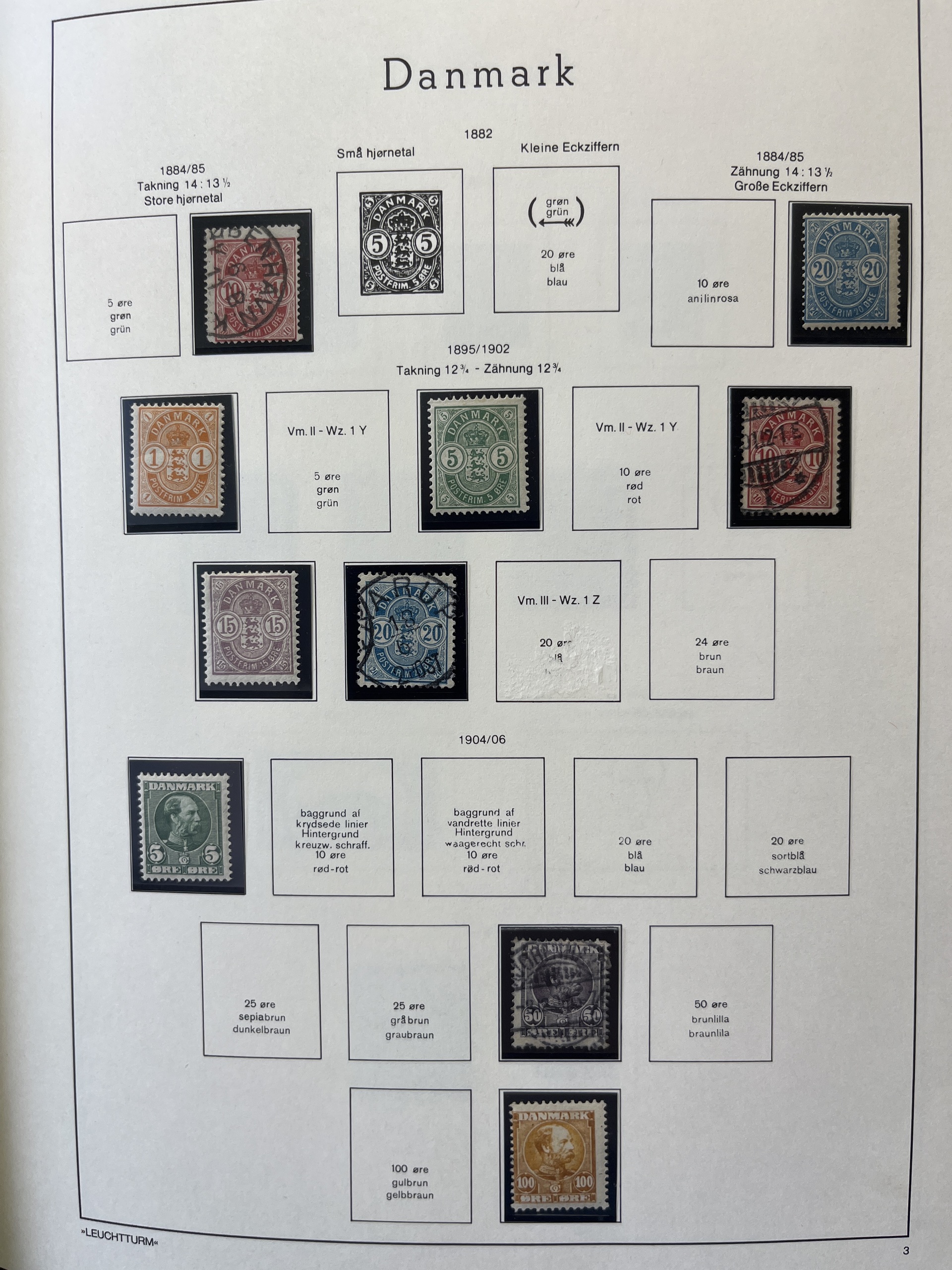 Denmark. Collection ★★/★/⊙ 1851–1984 in Leuchtturm album. with many good stamps and sets. Favourable. Fine quality.