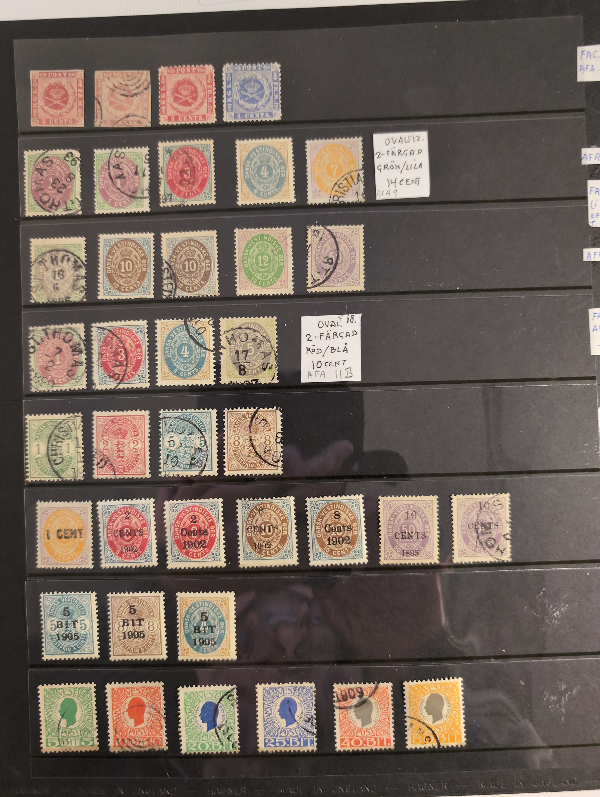 Danish West Indies. Collection ★★/★/⊙ 1866–1915 on two visir leaves. Nice collection with several better stamps, some of the early mint stamps are without gum. The entire lot is presented at www.philea.se. Somewhat mixed quality. (65)