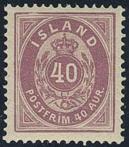Iceland. Facit 17 ★★, 1882 Aur values 40 aur violet-lilac, perf 14 × 13½. Good centering. SEK 2000