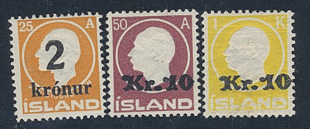 Iceland. Facit 121–23 ★, 1924 Surcharge SET (3). SEK 7200