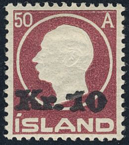Iceland. Facit 122 ★, 1925 Surcharge 10 Kr / 50 aur brown-lilac. SEK 2500