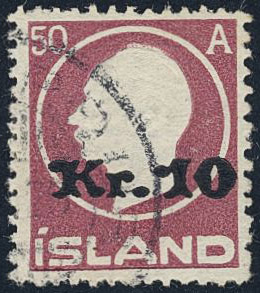 Iceland. Facit 122 used, 1925 Surcharge 10 Kr / 50 aur brown-lilac. SEK 4000