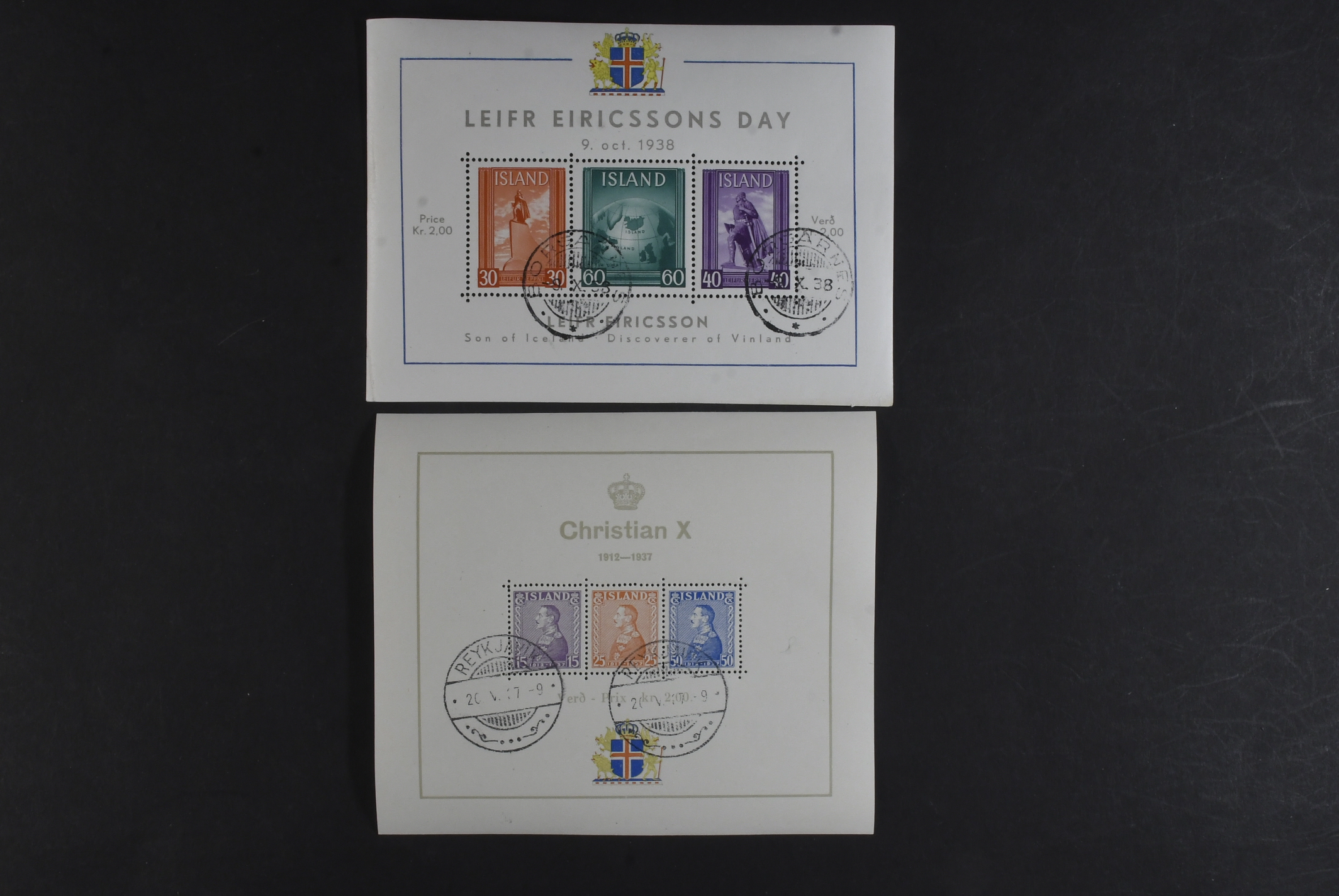 Iceland. Facit 221–26 used, 1937 Christian X, 25th anniversary as regent souvenir sheet 1 (1) + Block 2. SEK 2750