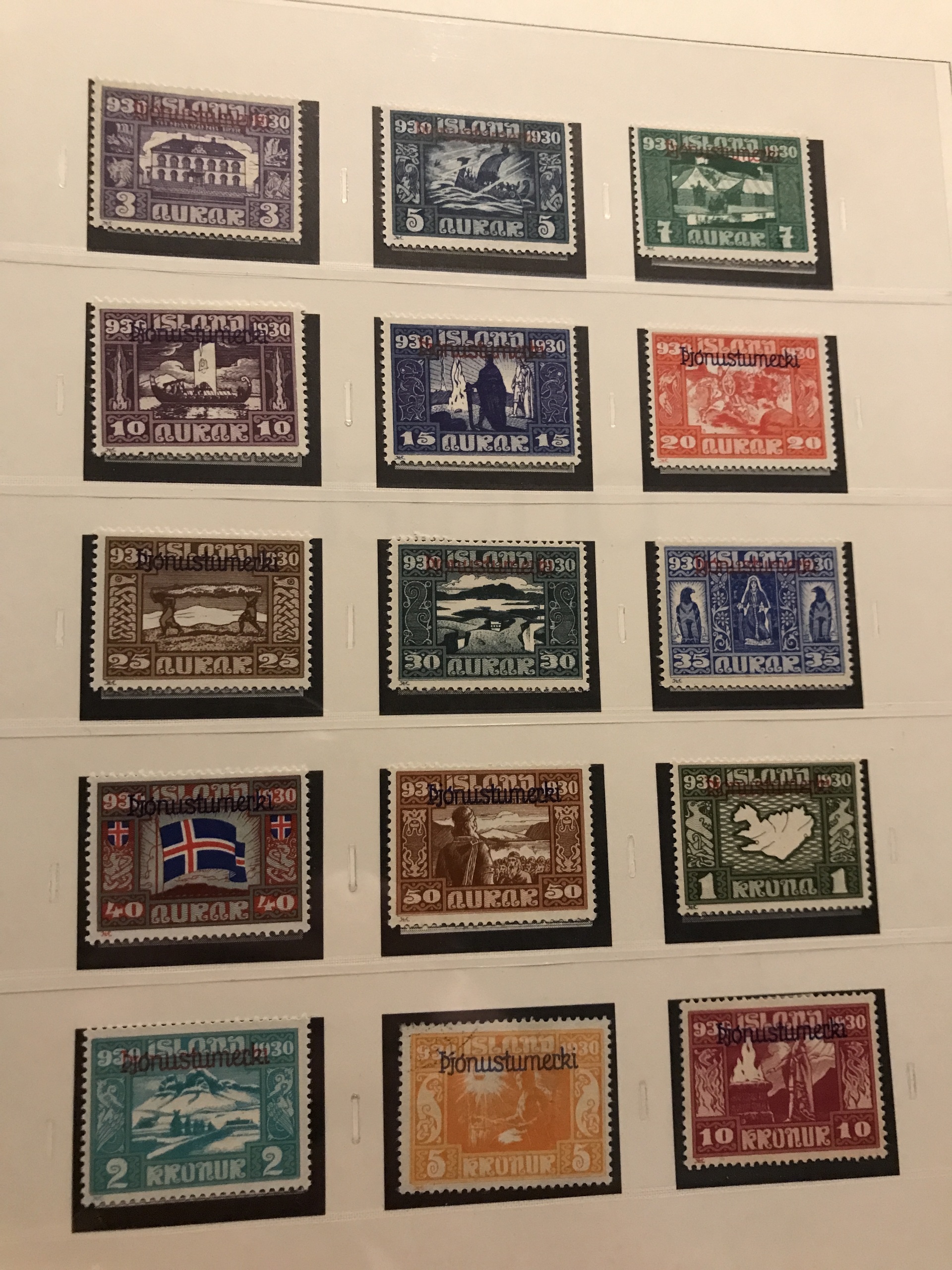 Iceland. ★★/★. Collection 1873–2000 in two SAFE Dual albums with slip cases. Complete F1–29 mainly * and some mixed qual. incl. F5 (*), etc, some I GILDI, cpl. F63–74 mostly *. Apparently cpl. in main numbers from 1934–82 incl. F210–11 **, etc. Please see a selection of scans at www.philea.se. Approx. 7 kg.