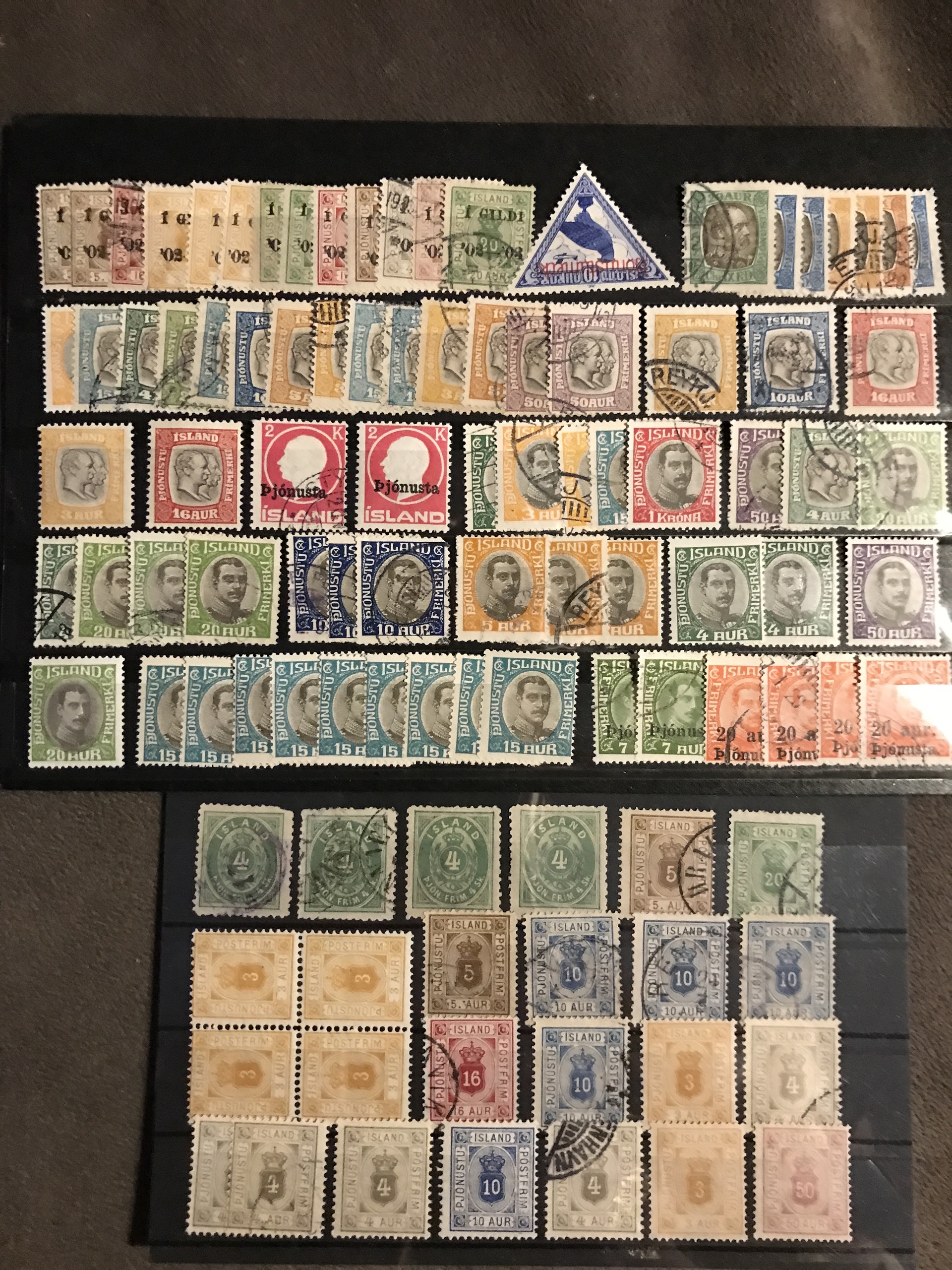 Iceland. ★★/★/⊙. About 100 official stamps 1873–1932. Containing e.g. for copies Tj3 (short perfs) otherwise mostly fine quality. High value.