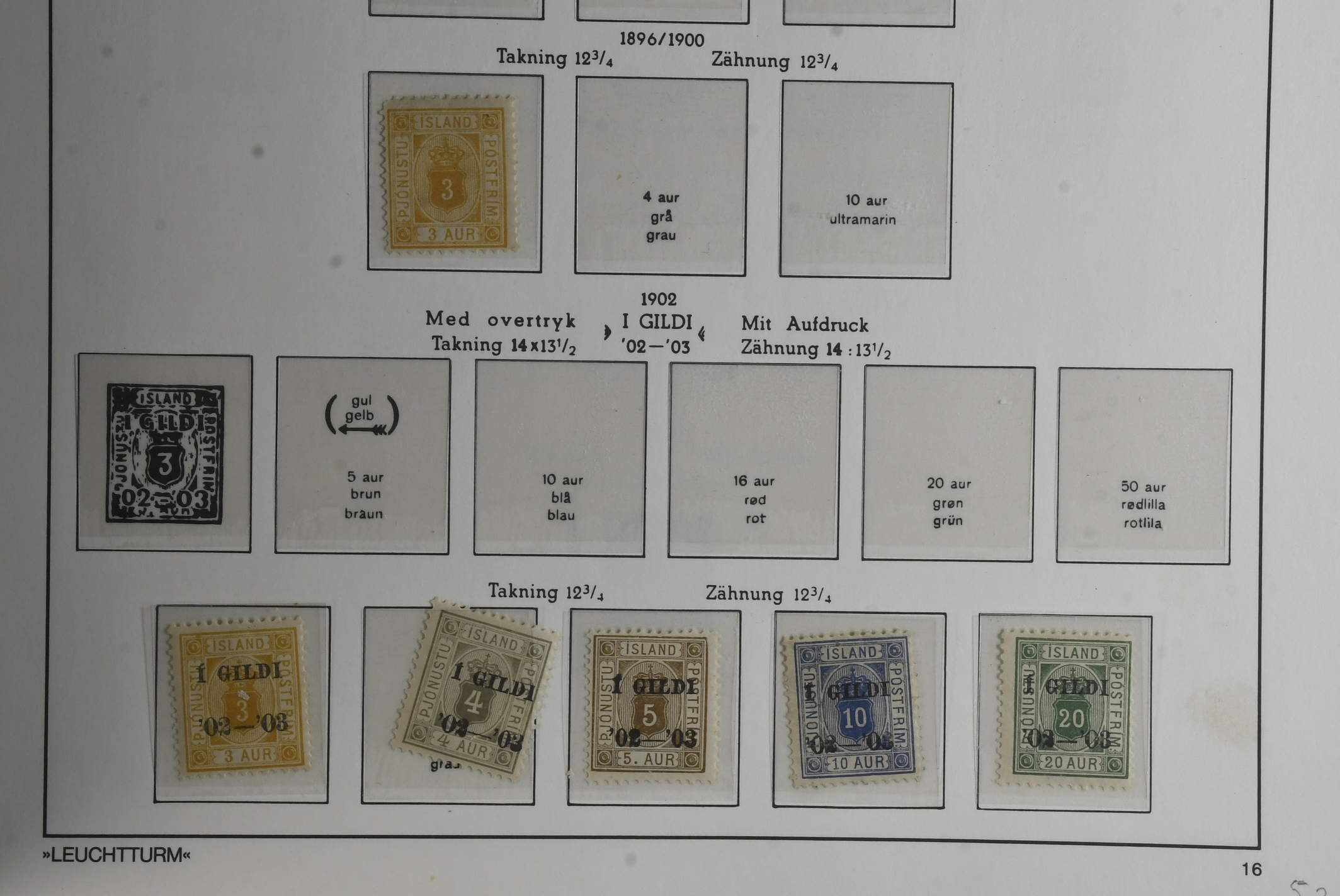 Iceland. ★★/★ 1902–94 in Leuchtturm album with stamp mounts. Green album in good quality covering 1873–1998. Good quality. (400)