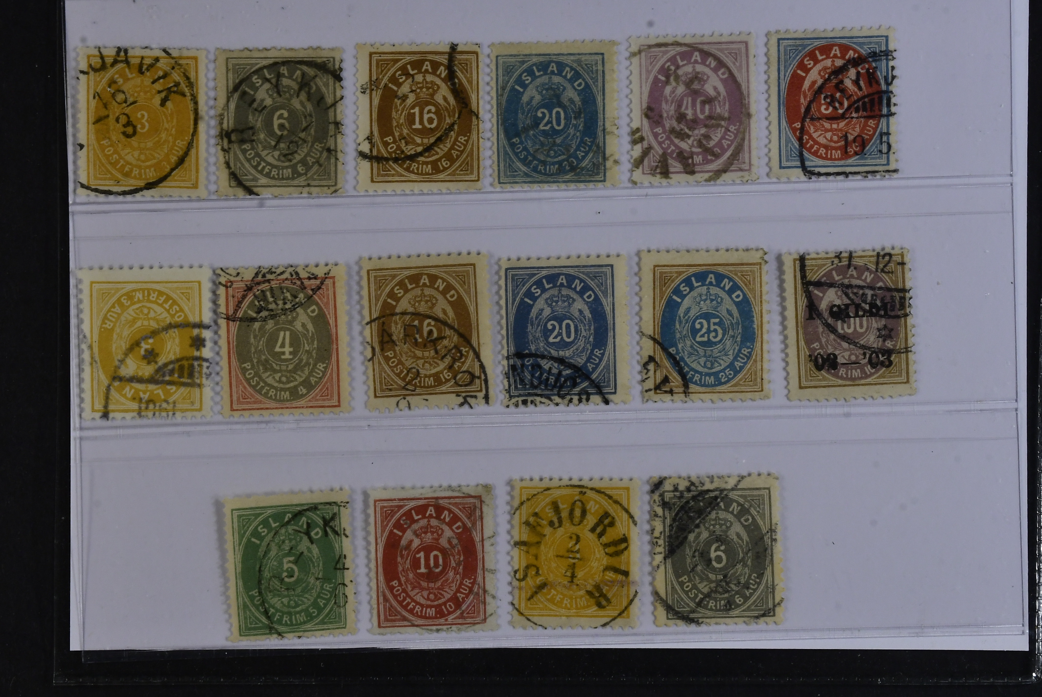 Iceland. Used 1876–1902. All different, e.g. F 8, 11, 13, 15, 17–18, 21–22, 27–29, 44. Mostly good quality. F SEK 6900 (16)
