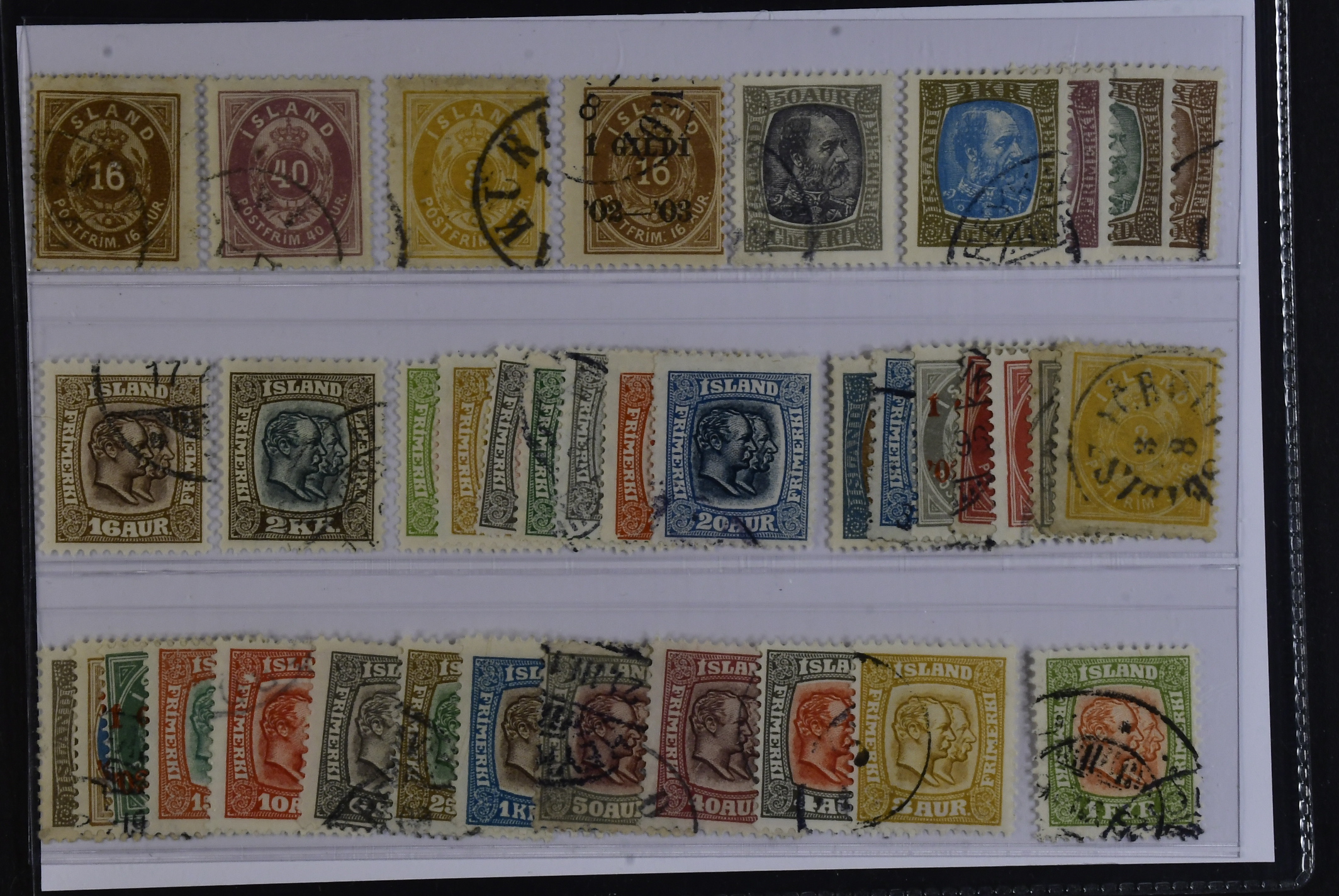 Iceland. Used 1876–1918. All different, e.g. F 13, 17, 21, 54, 72, 74, 83, 89, 91–97. Mostly good quality. F SEK 6925 (38)