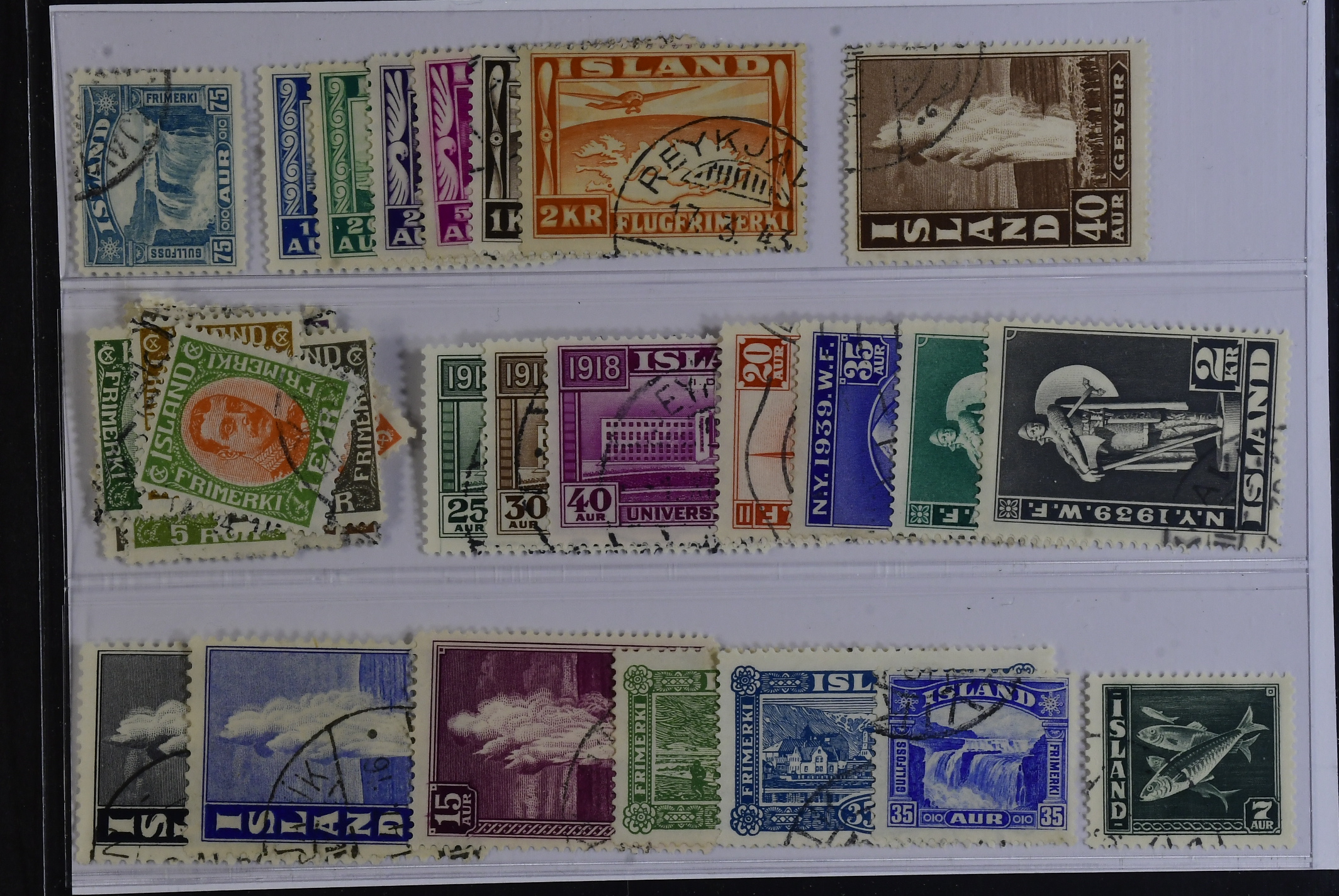 Iceland. Used 1902–1939. All different, e.g. F 124–44, 199, 204–09, 230, 237–39, 252–55. Mostly good quality. F SEK 5340 (43)