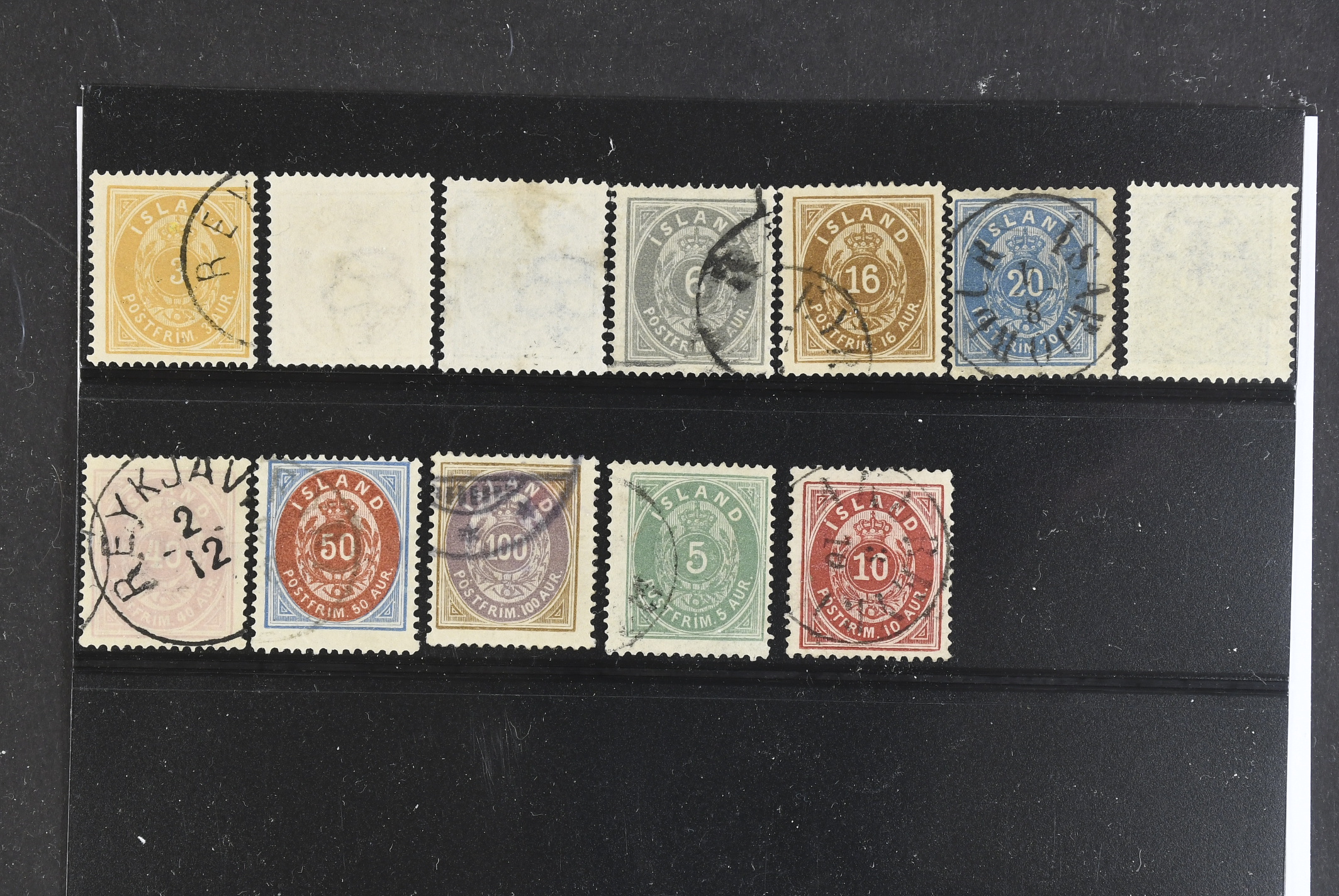 Iceland. Used 1876–1901. All different, e.g. F 8, 8v2, 10v1, 11, 13, 15, 15v, 17–19. Mostly good quality. F SEK 6310 (12)