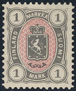Finland. Facit 19L ★, 1882 Coat of Arms m/75, Stamp Office Printing 1 Mk lilac, perf 12½. SEK 3500