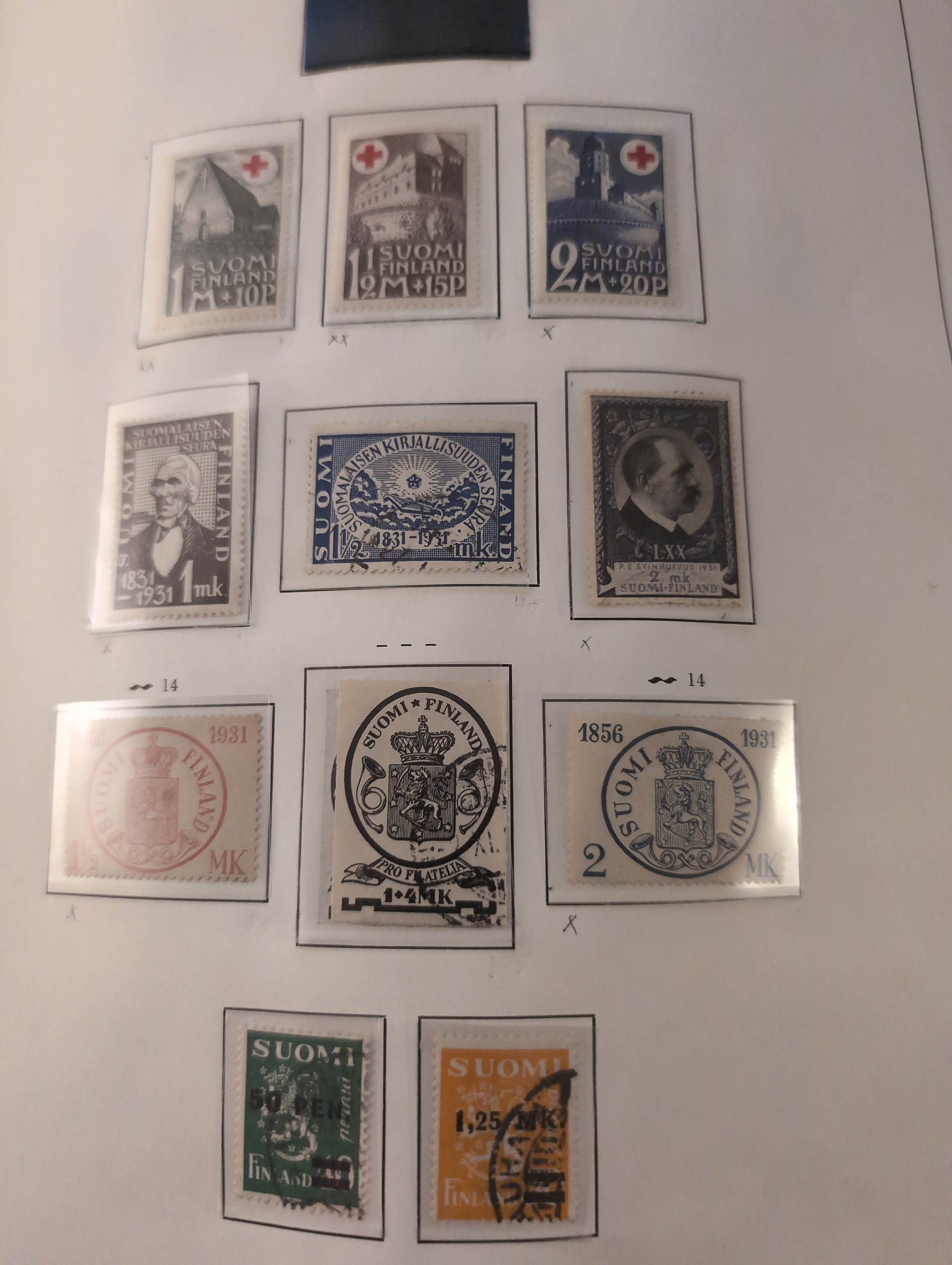 Finland. Collection ★★/★/⊙ 1856–1999 in large Stender album. With high completion. Oval stamps with faults and thin. Serpentines in mixed quality. Almost complete mint or used from 1931 and with some fixed value stamps at the end. Please see a selection of scans at www.philea.se. Mostly good quality. (1300–1400)