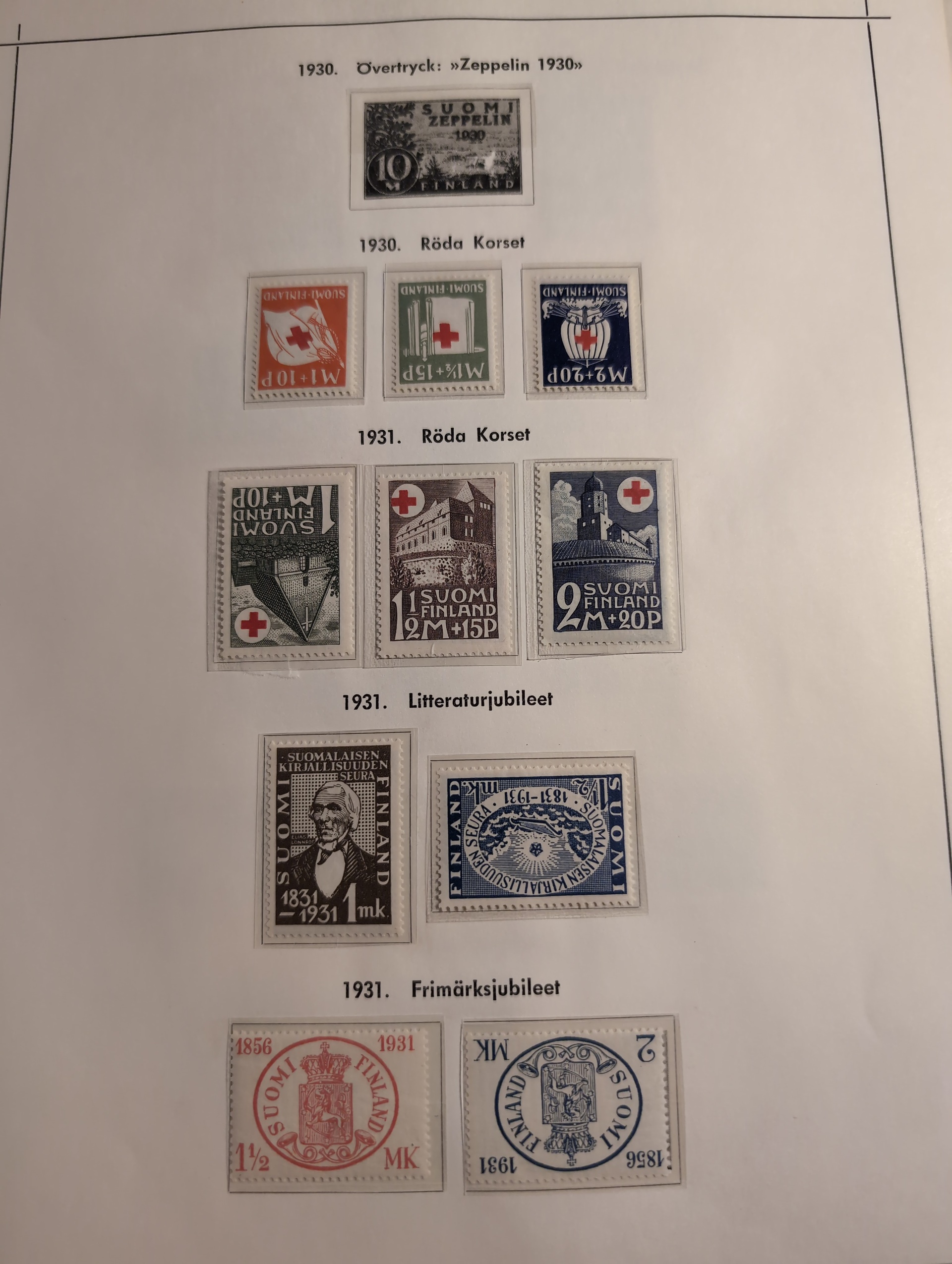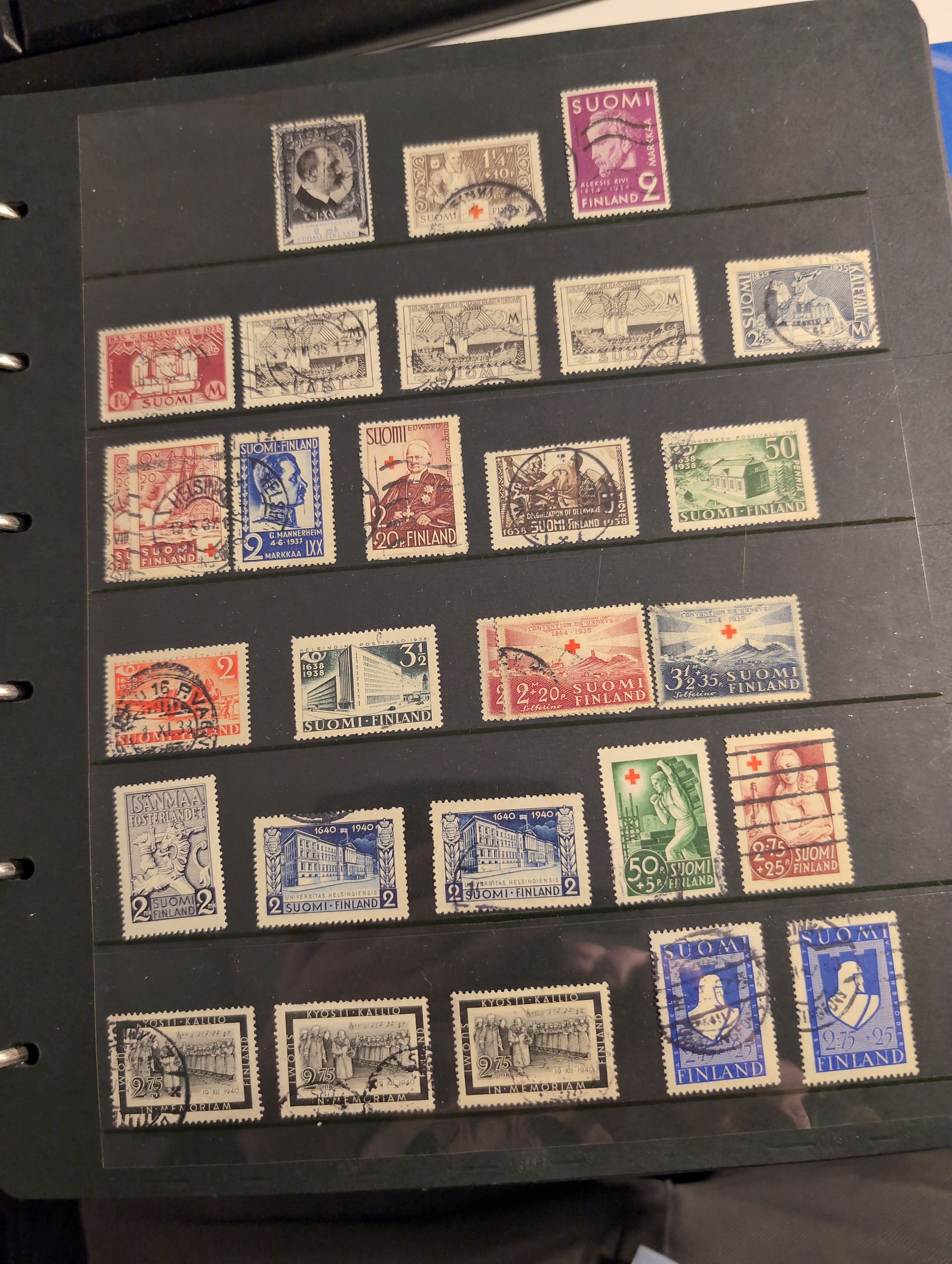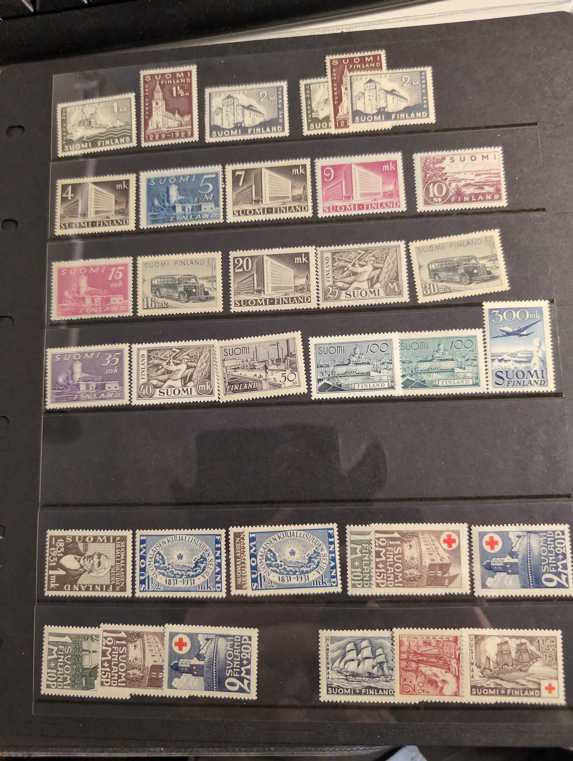 Finland. Collection/accumulation ★★/★/⊙ 1866–1970s in box. Four albums a stockbook and some loose leaves. incl. better stamps and many sets. Somewhat mixed quality. Approx. 7 kg. (1000+)