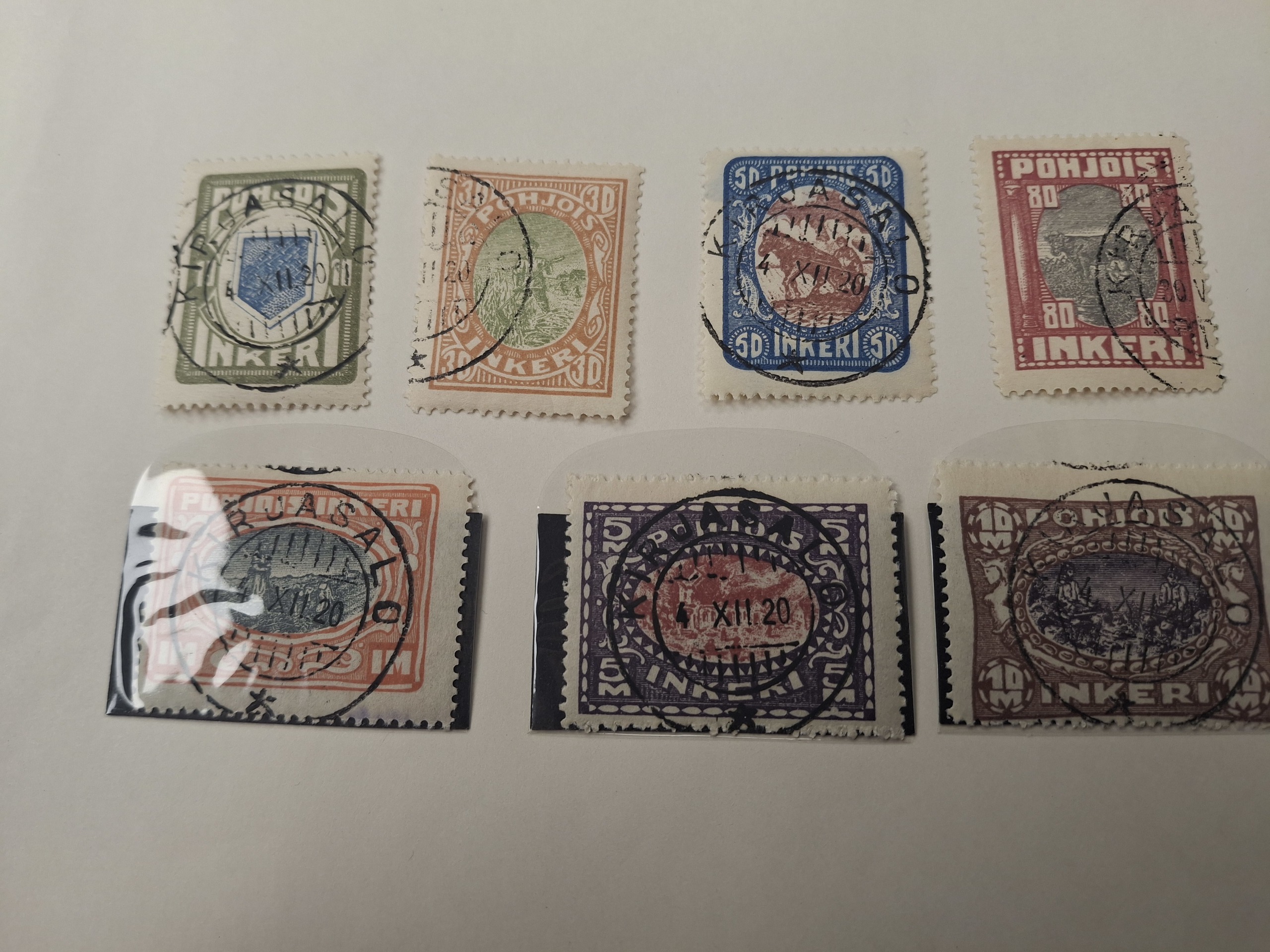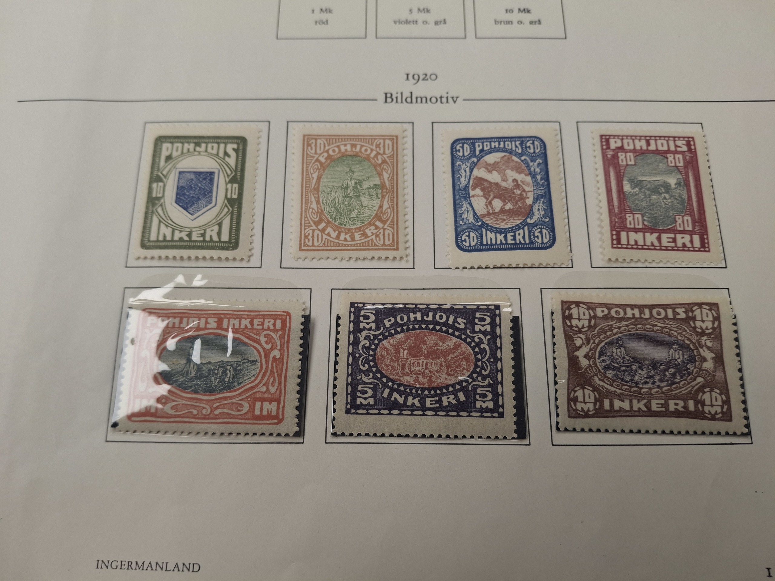 Finland, Karelia. Collection ★/⊙ 1920–1922 on visir leaves. Facit 1–15 and North Ingria 8–14 * and cancelled. (29)