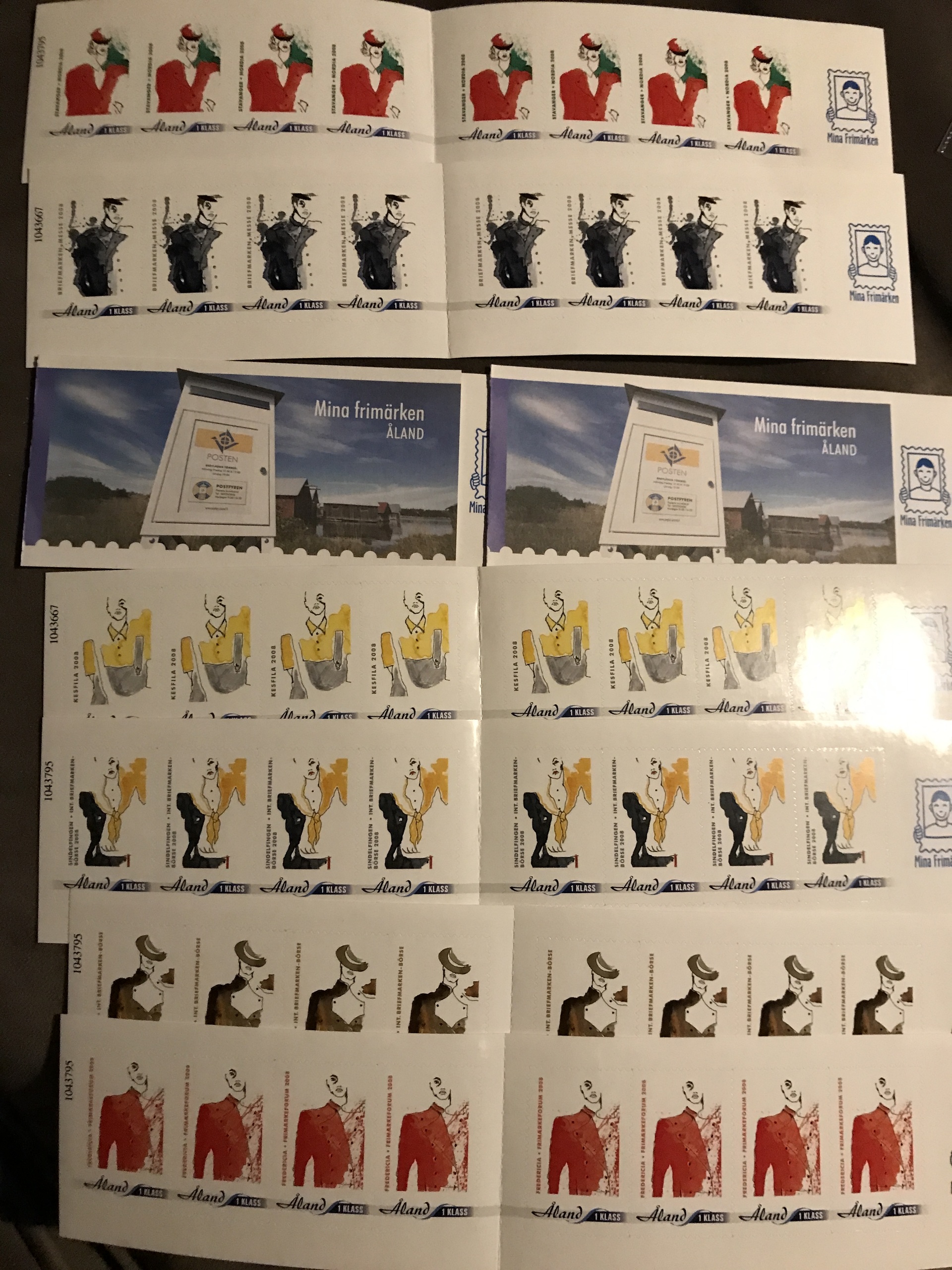Åland. ★★. Unused material with the scarse exhibition stamps incl. 12 different blocks 2011, 23 booklets 2008 incl. dupl. + 81 stamps. Face value 1140 Euro. Also 50 used stamps. Excellent quality.