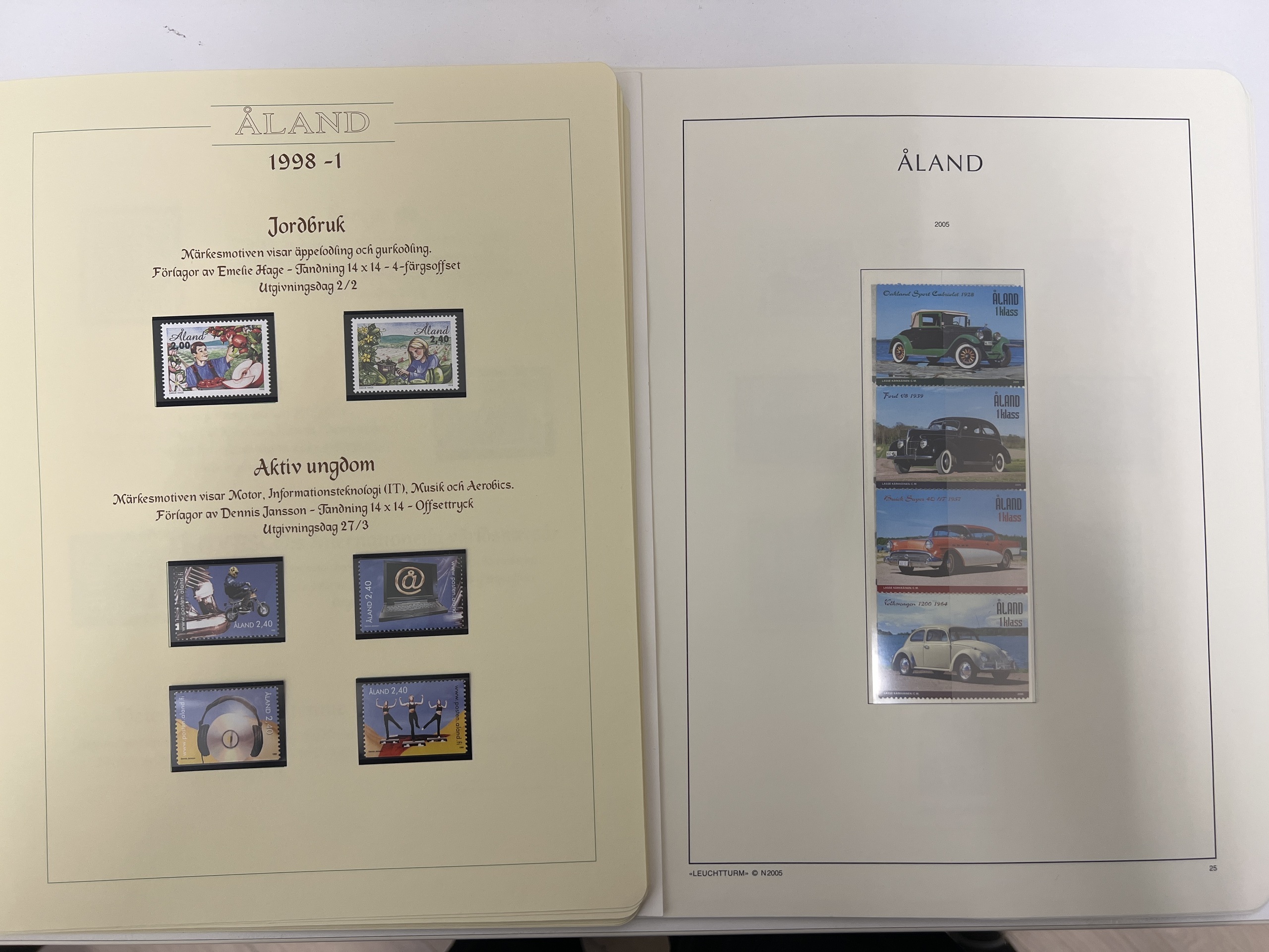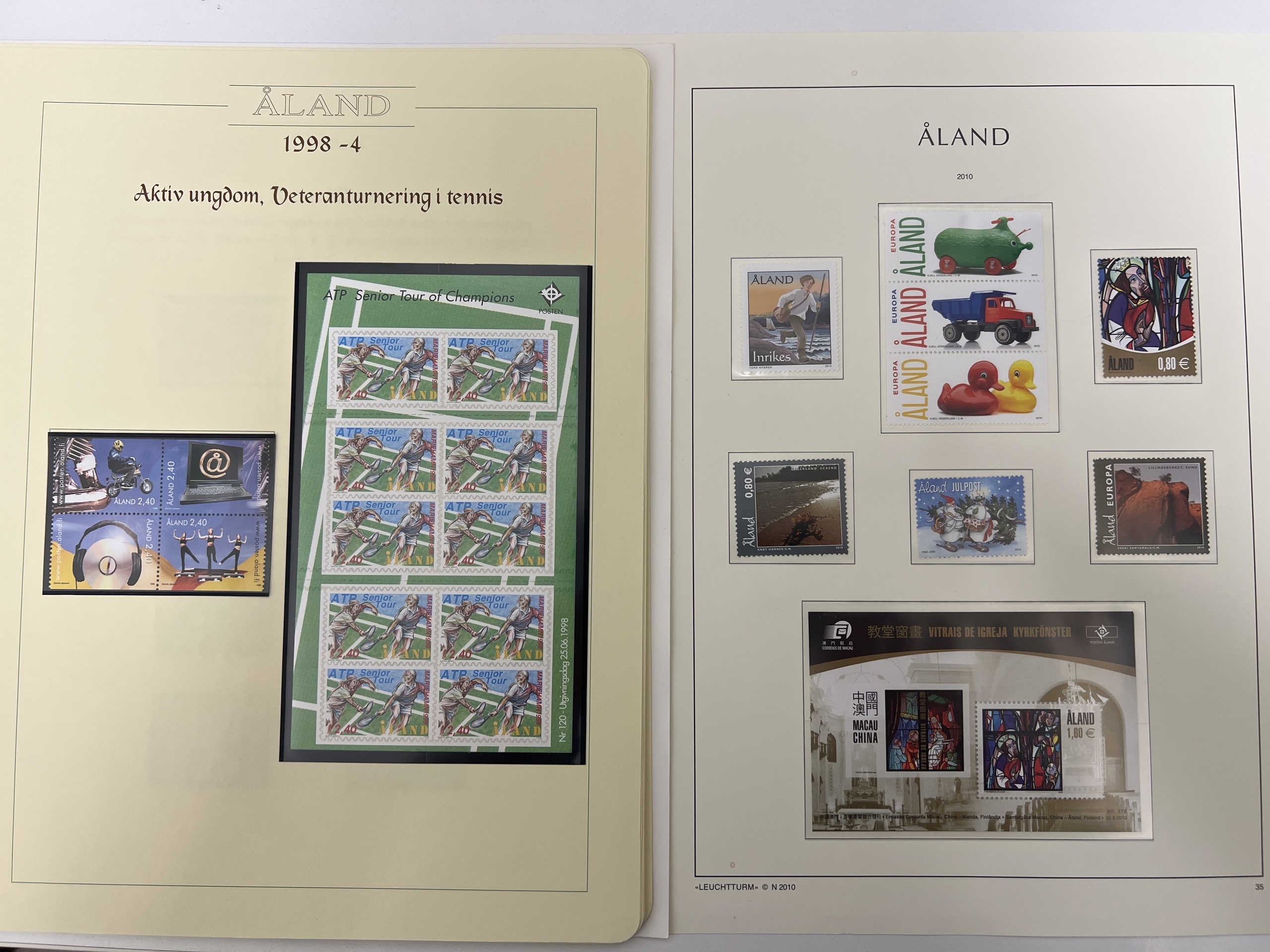 Åland. Åland ** collection/accumulation 1984–2010 in album and on leaves stamp mounts. One Leuchtturm 1984–2010, and one Estette 1984–2000.One album with duplicates. Excellent quality (100s)