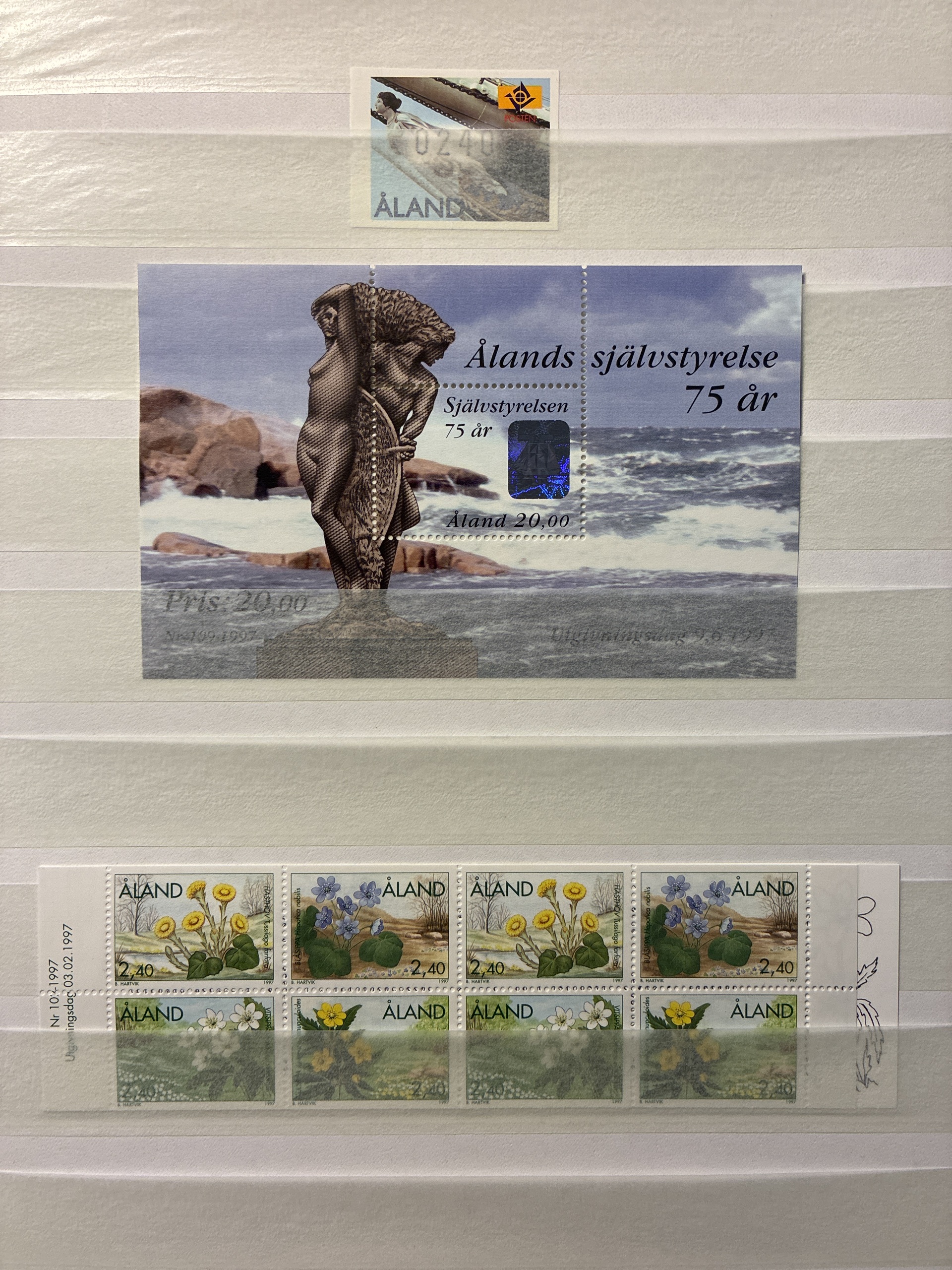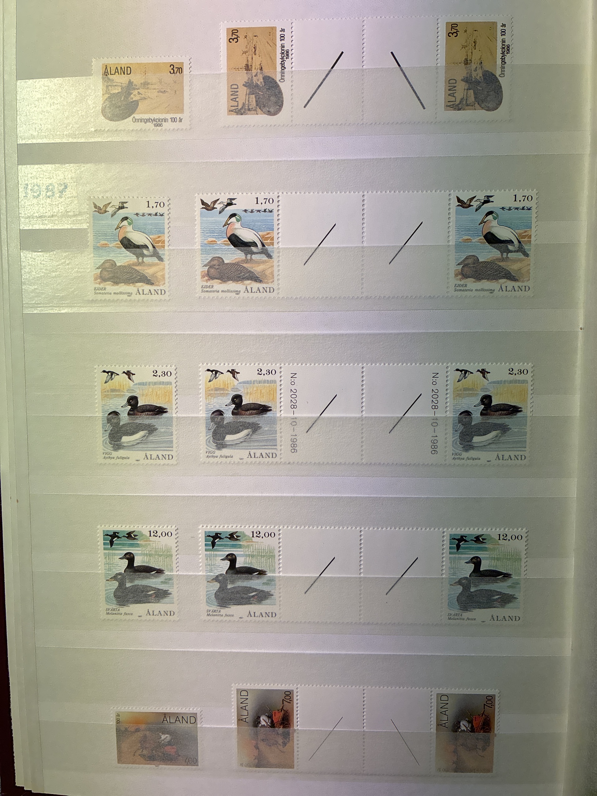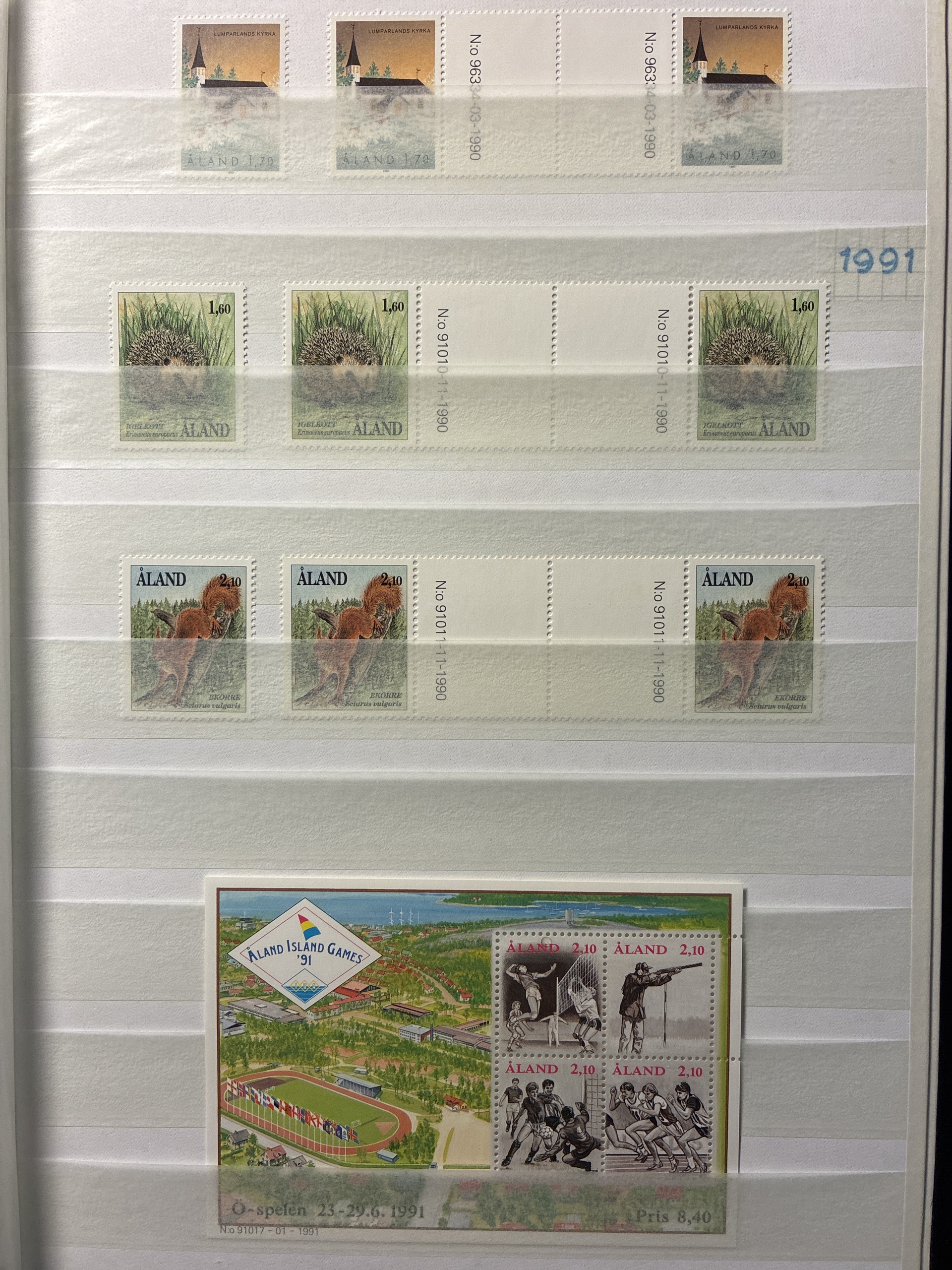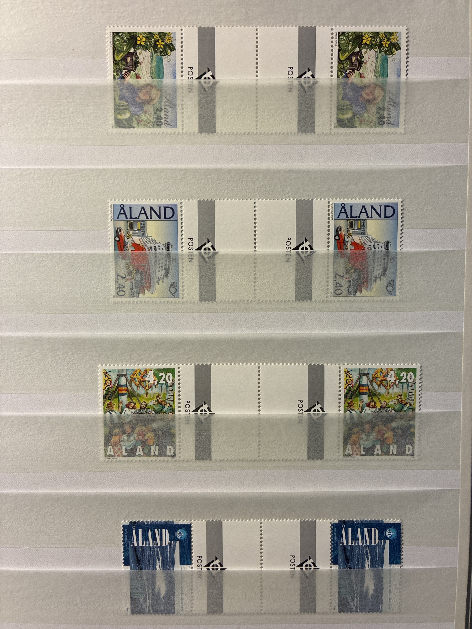 Åland. Collection ★★ 1984–1998 in large stockbook. Singel and gutterpairs and 5 blocks of christmas stamps 1993-1997. Please see a selection of scans at www.philea.se. Excellent quality. (c.320)