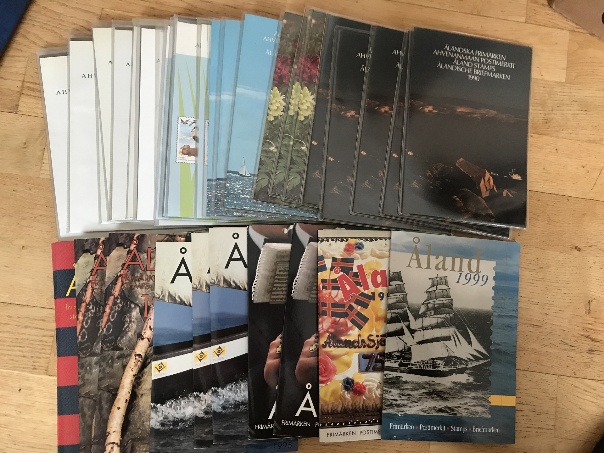 NORDIC COUNTRIES. ★★/★/⊙. Box with 14 albums/binders incl. two with booklets. Containing some collections incl. good Sweden and Iceland, modern **, some covers and 39 year sets Åland, etc. Please see a selection of scans at www.philea.se. Approx. 23 kg.